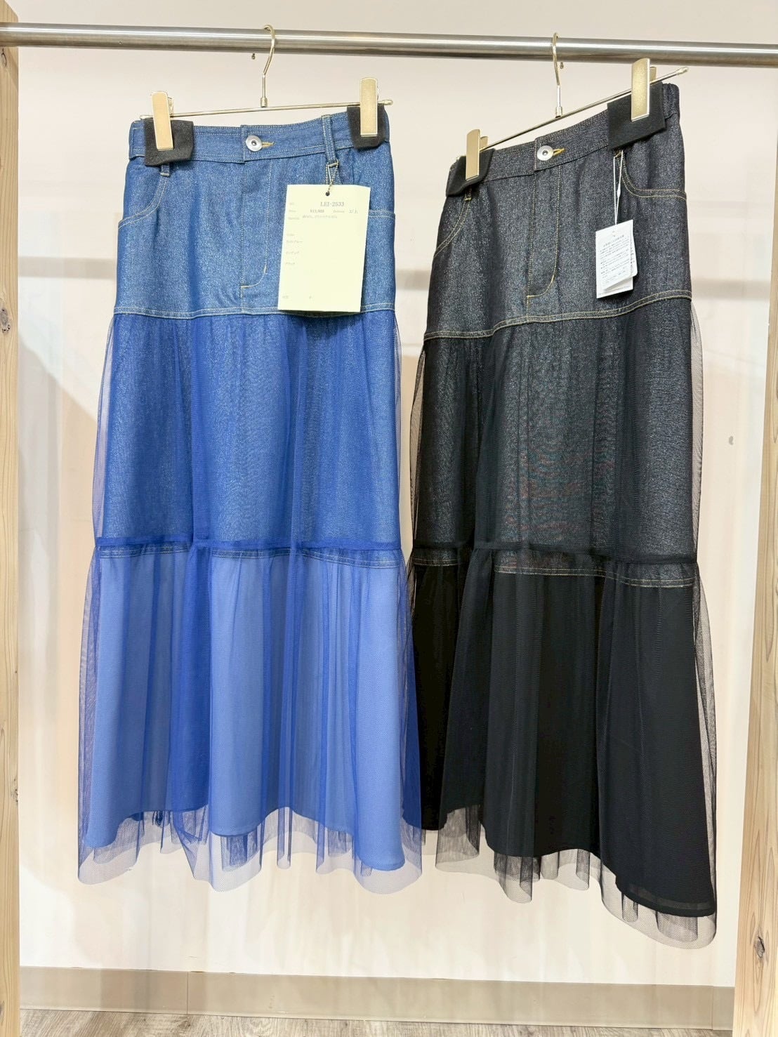 チュールレイヤードラメデニムスカート