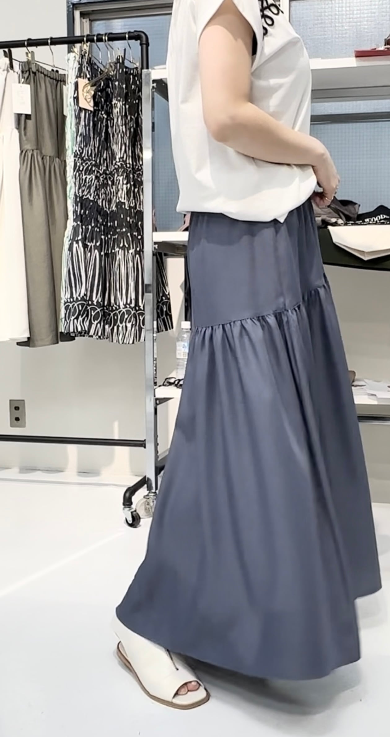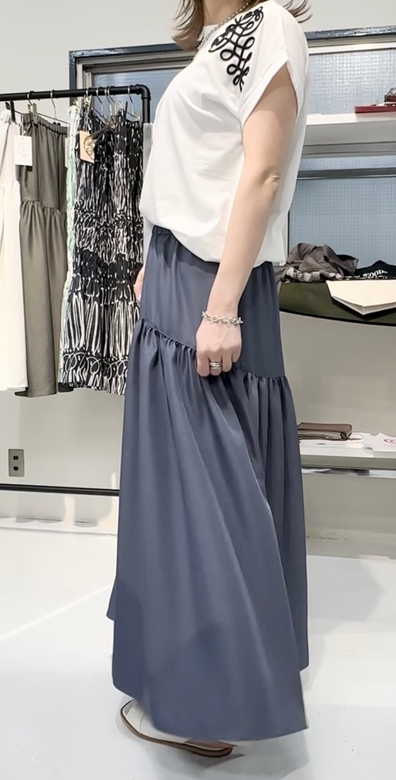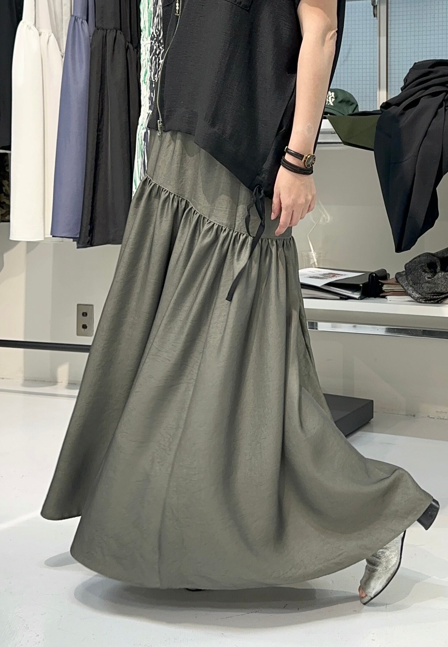 ● 華やかなギャザー切替が魅力のスカートです✨ 柔らかな素材感と動きのあるデザインが、女性らしさを引き立てます。ウエストはゴム仕様で内側にヒモ調整も付いていてストレスフリーな着心地がポイント!シーズンレスで活躍できる一着で、カジュアルからきれいめまで幅広いスタイルにマッチします♪ お出かけやイベントにもおすすめで、コーディネートの主役にもなってくれるスカートです!