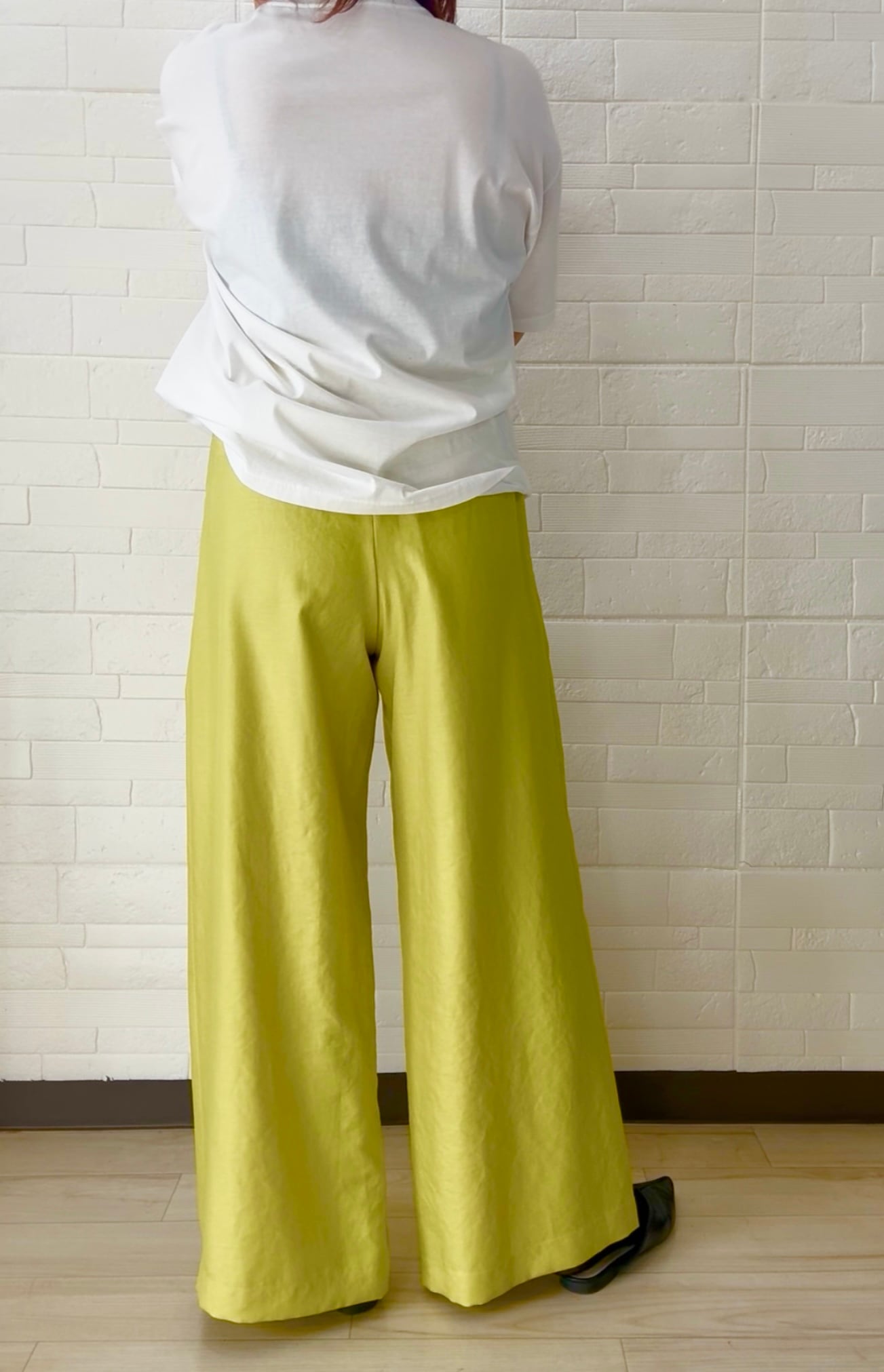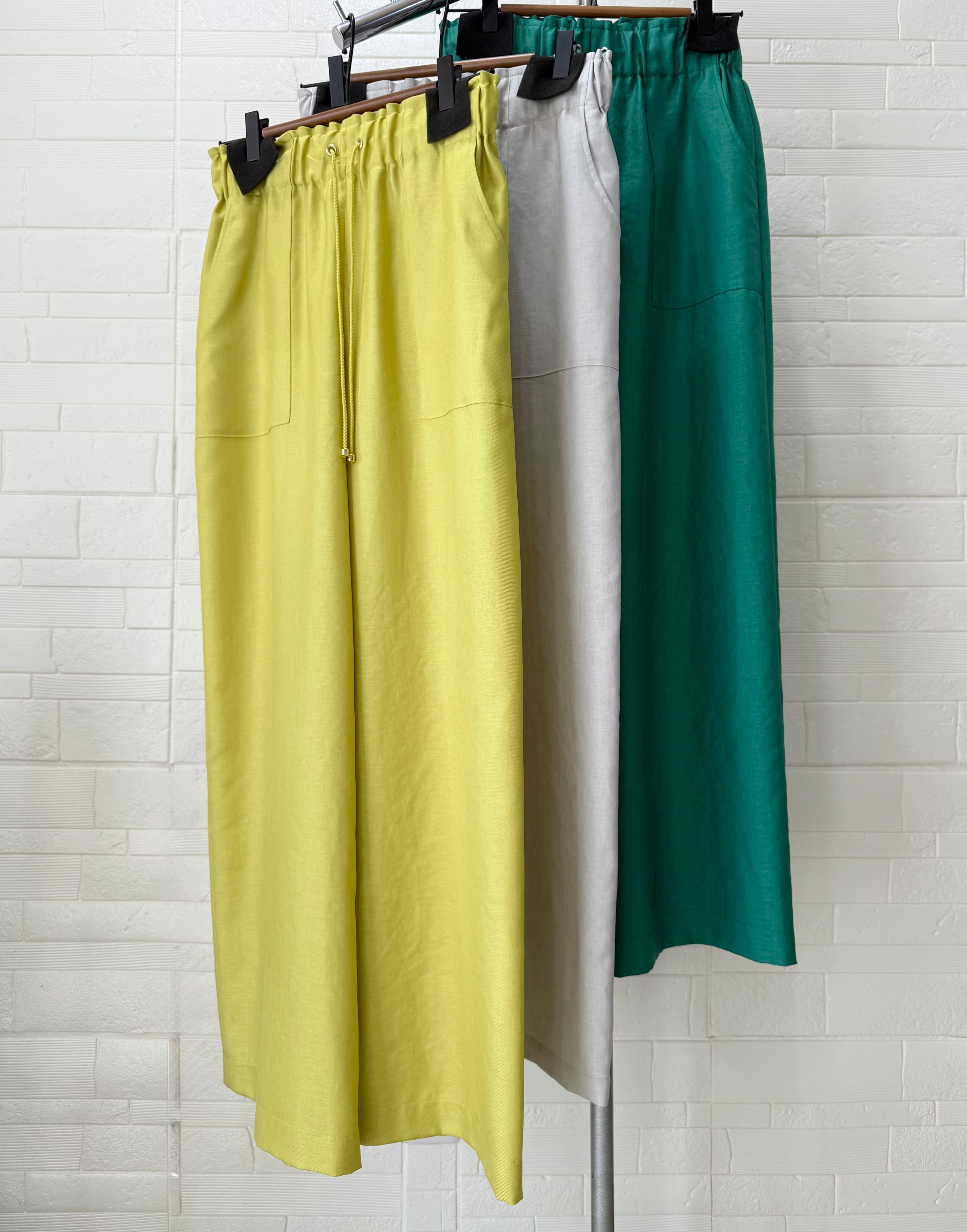 ● 微光沢のあるカラーワイドパンツが今年カラーで再登場です✨ 上品な光沢感とカラーバリエーションが魅力で、スタイリングの幅を広げてくれる一着です。サラサラした生地は裏地無しでも透けずに涼しく快適な履き心地を毎年提供し、デイリーコーデからちょっとしたお出かけまで幅広く活躍します!これからの季節に嬉しいサラサラとした良い素材も嬉しいポイントです♪ ROBEさんの定番人気な形です!