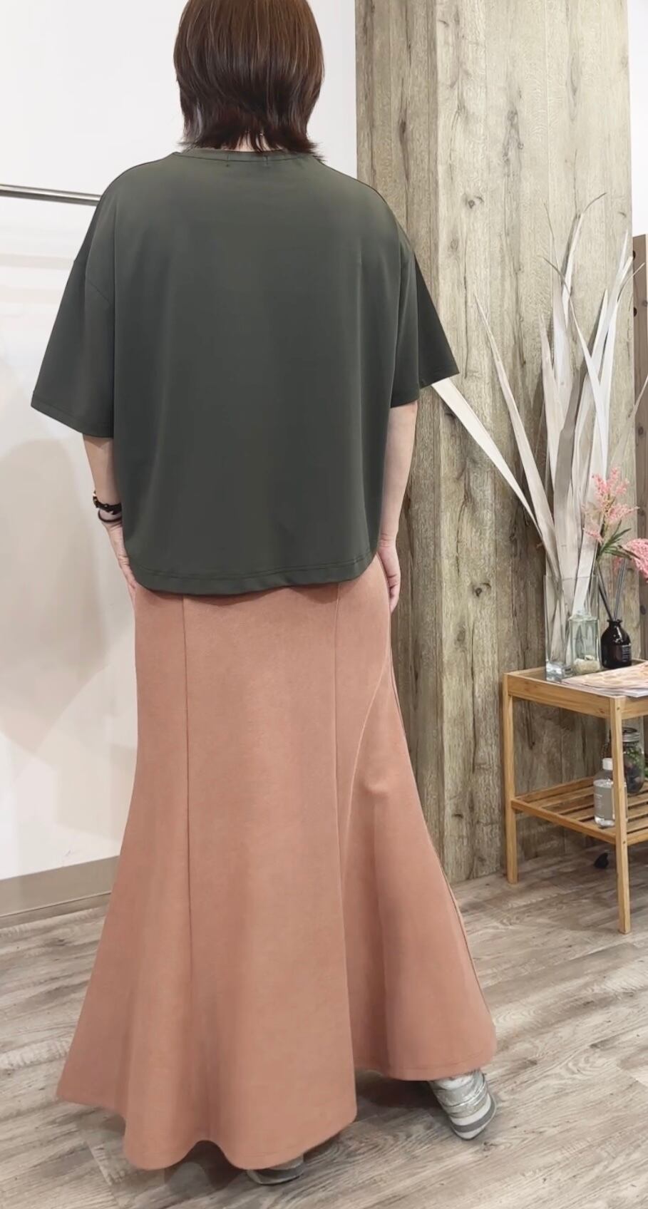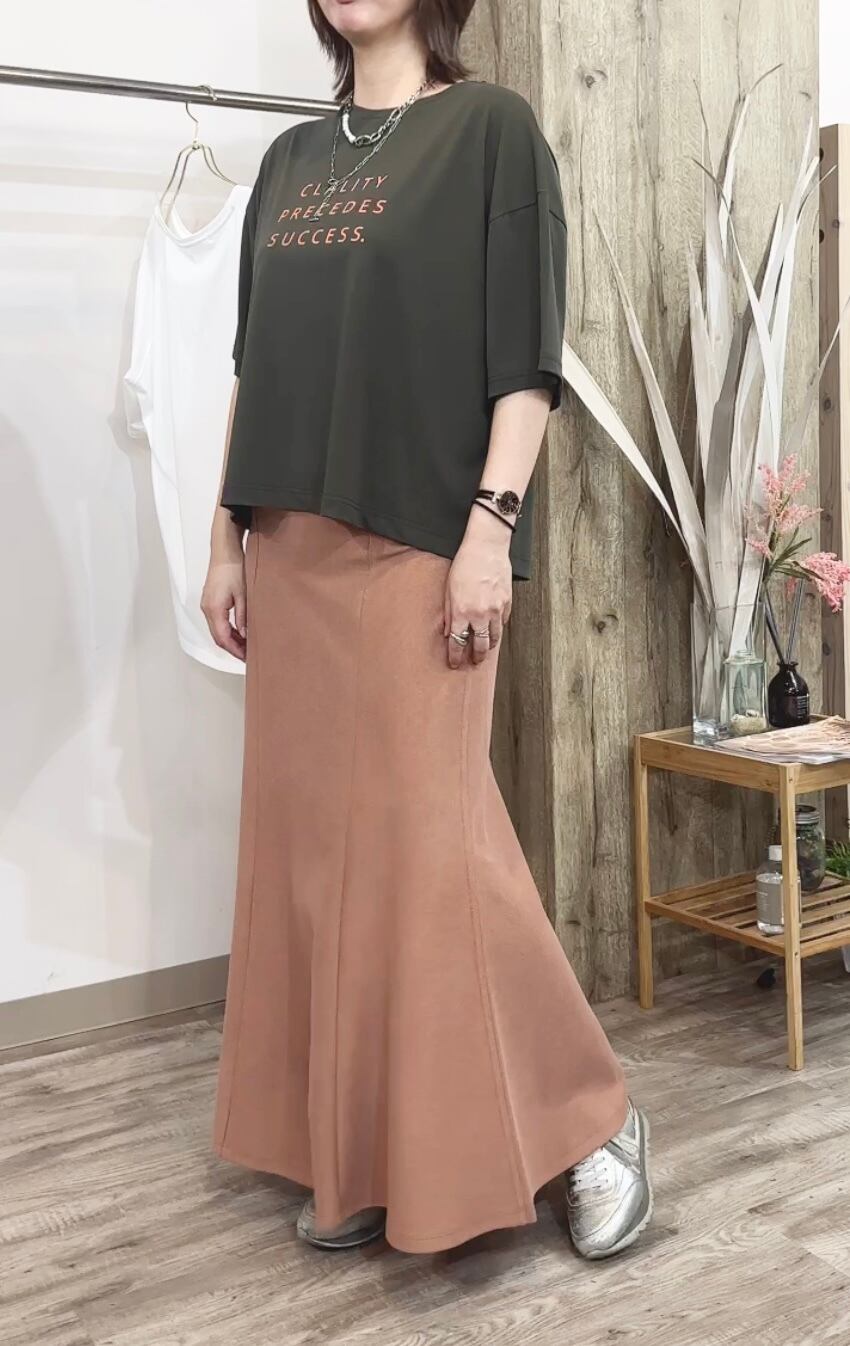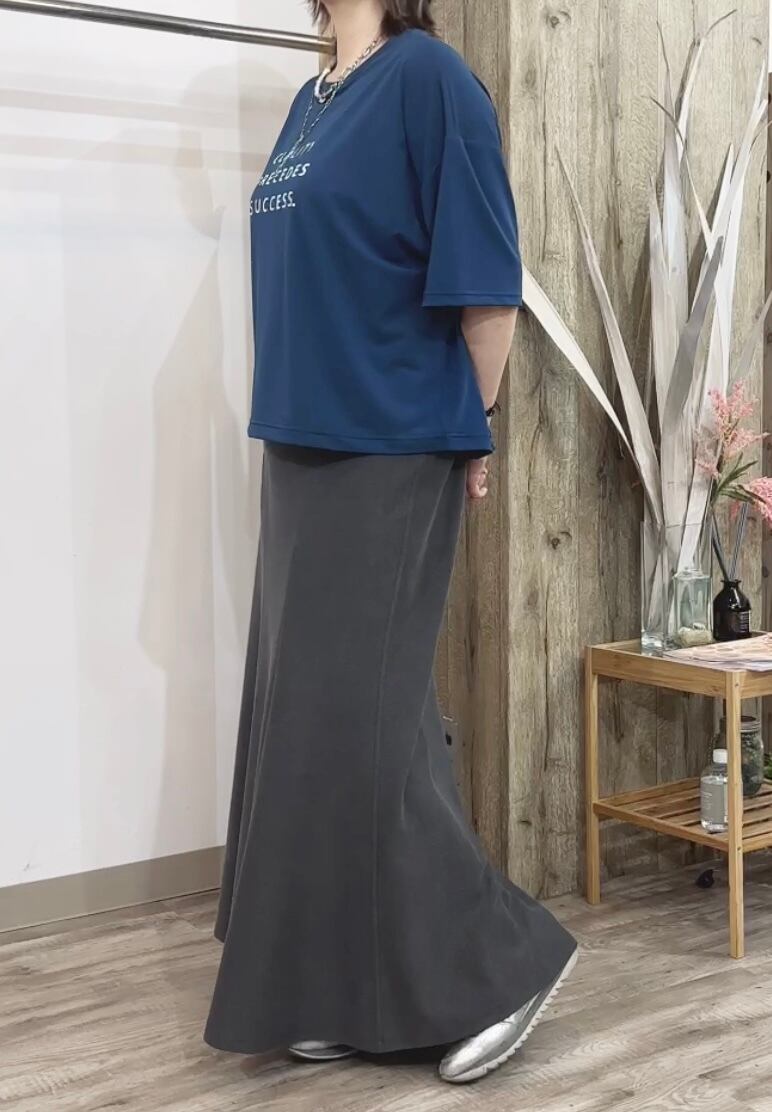 柔らかな肌触りが心地よいミニワッフル素材に、奥行きのある製品染めを施すことで、こなれたカジュアル感を演出します。ウエストは後ろゴム仕様なので、楽ちんなのにトップスインもきれいに決まり、ストレスフリーな穿き心地。裾に向かって優雅に広がるマーメイドシルエットは、