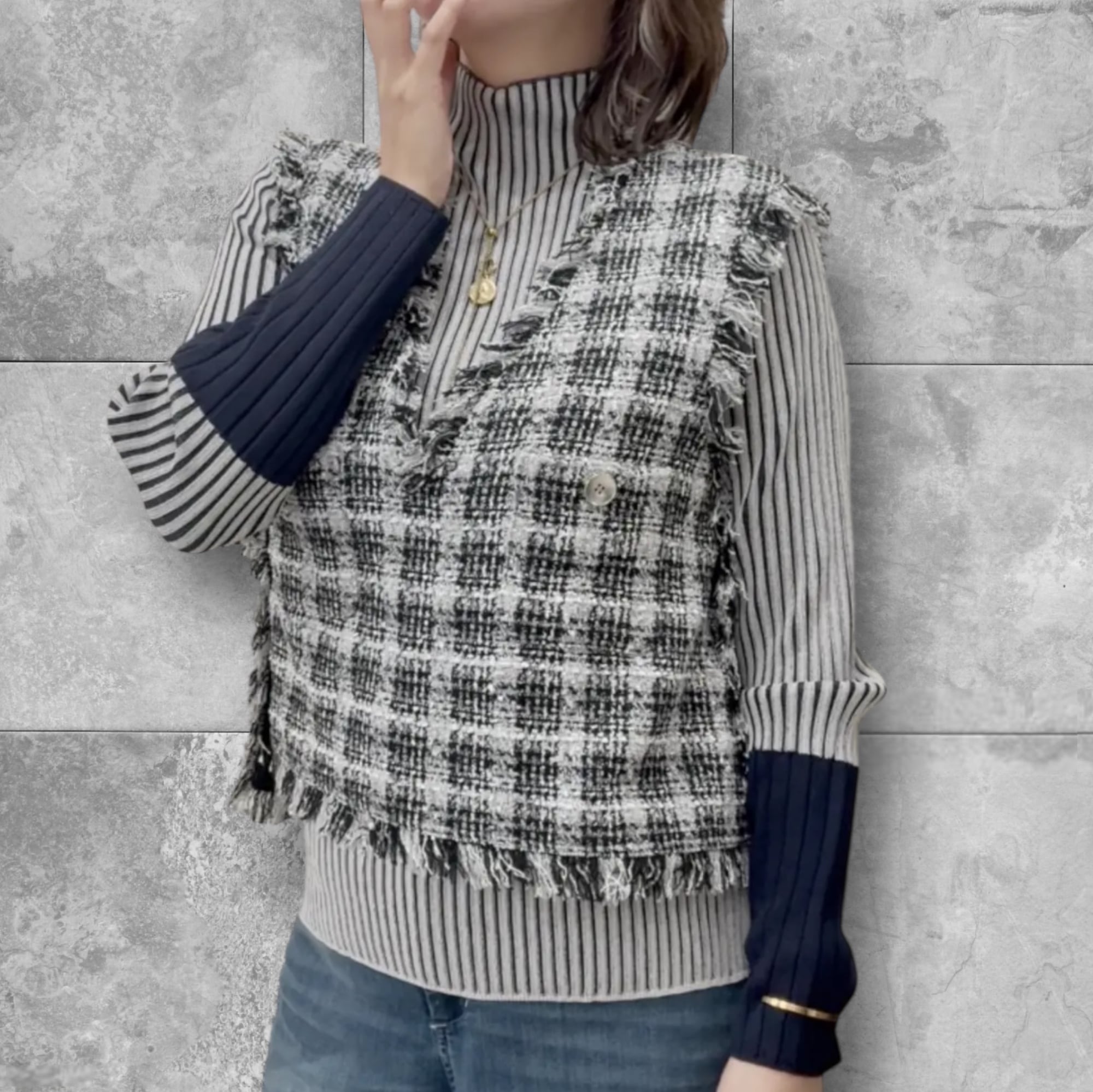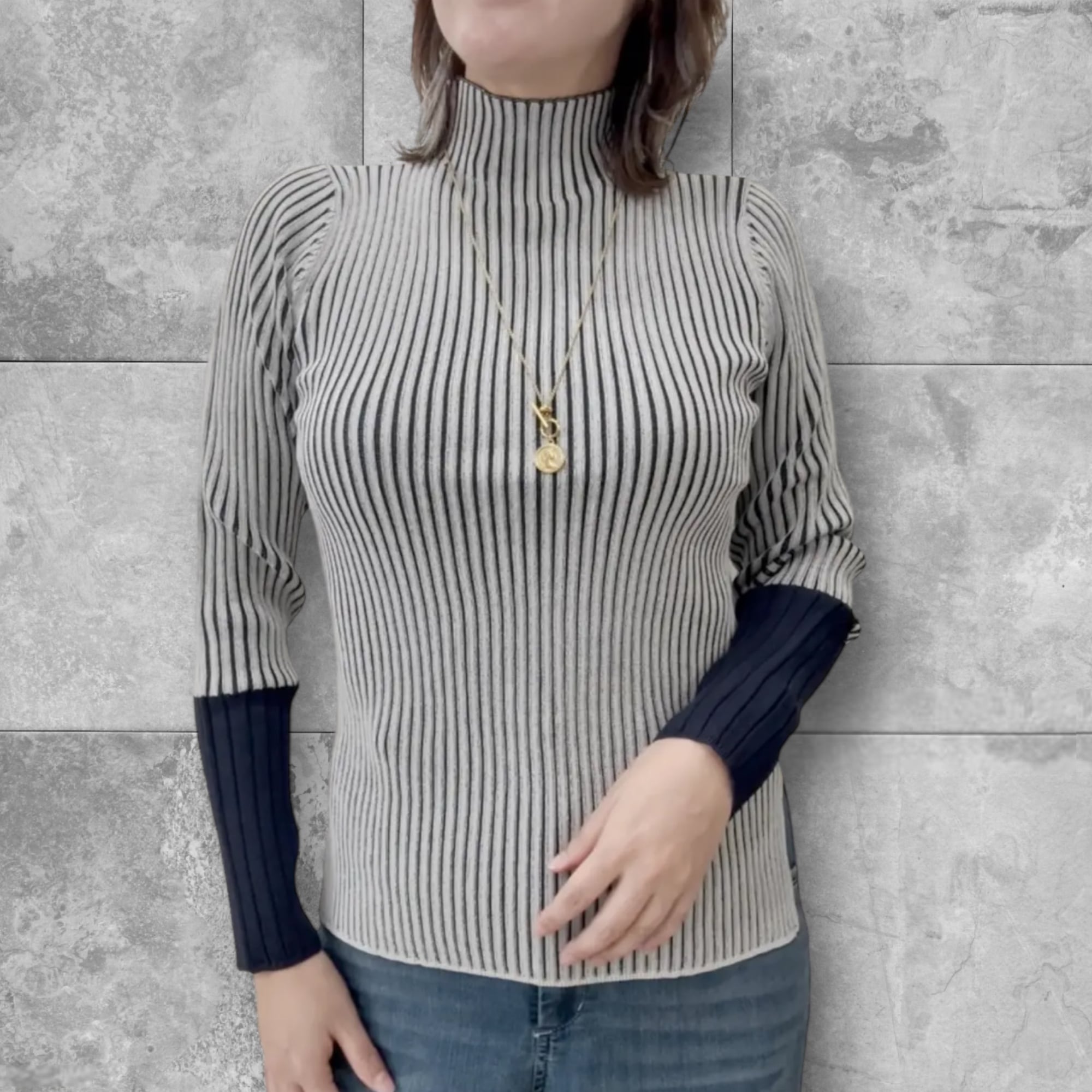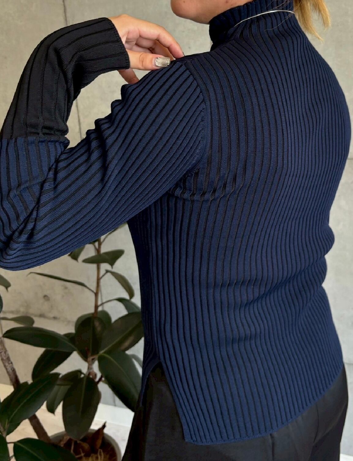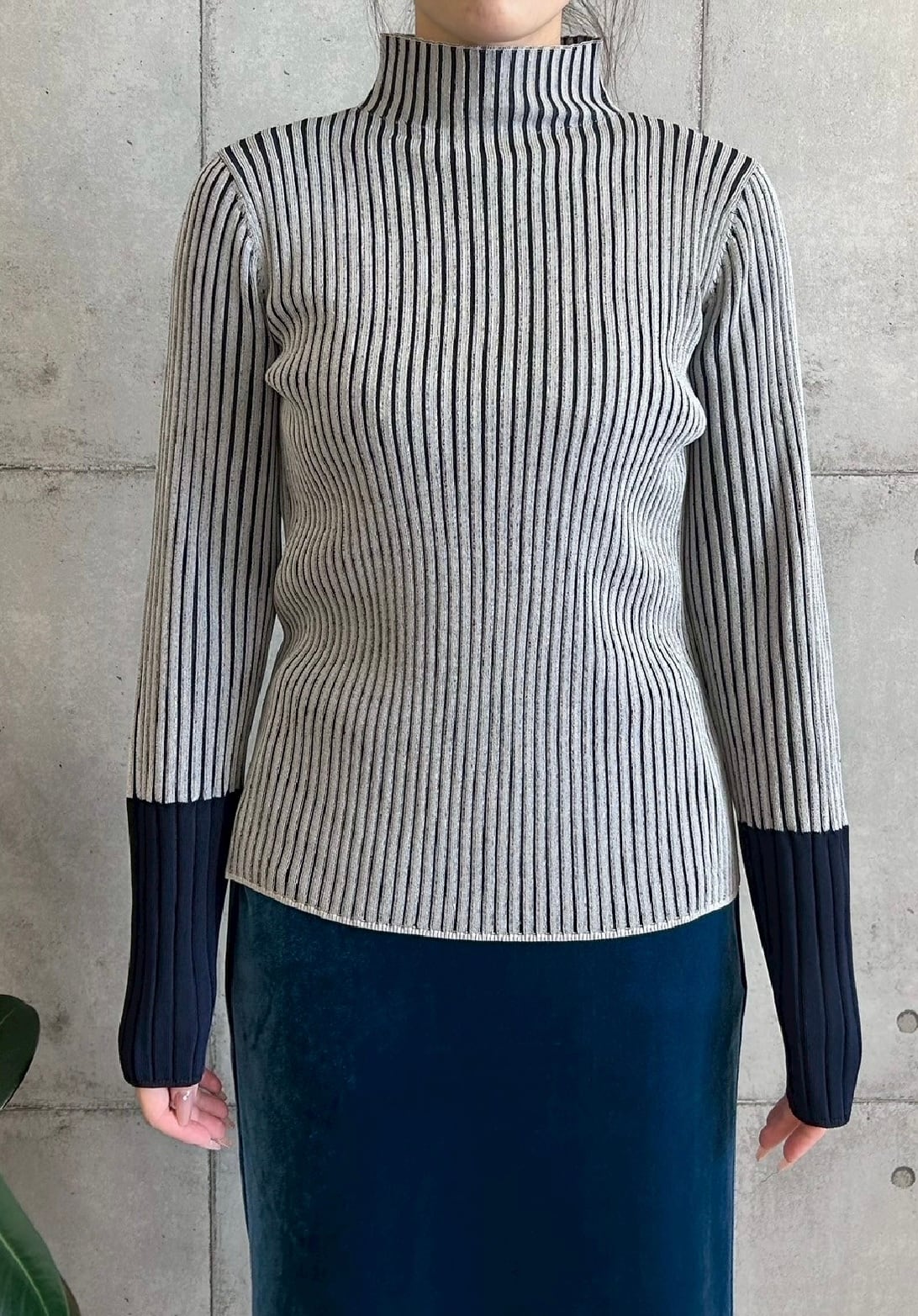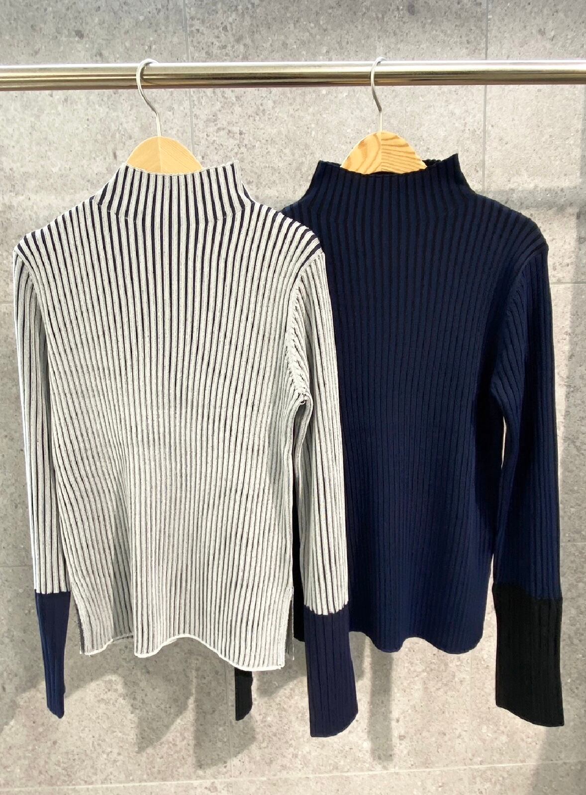 配色ハイネックリブニット