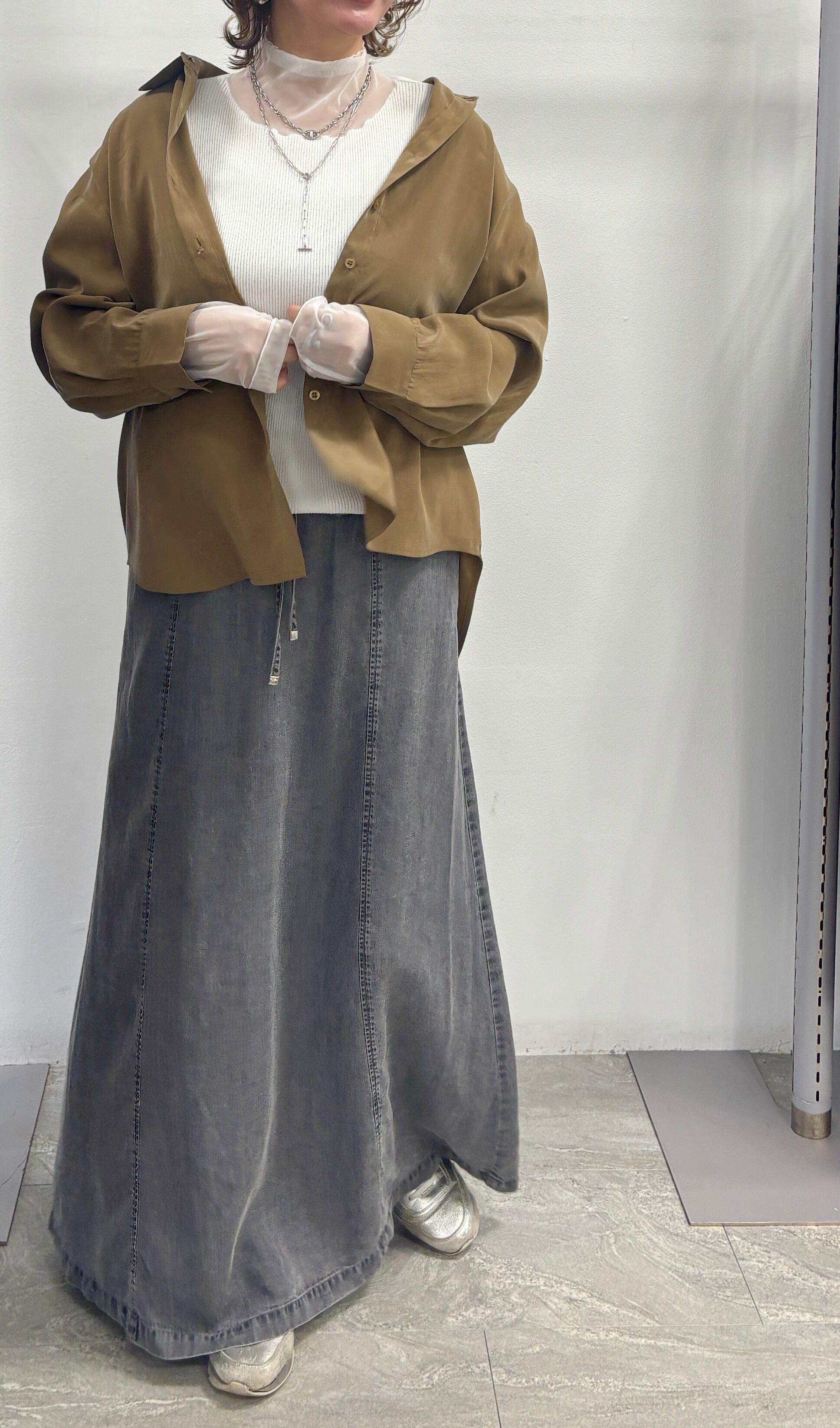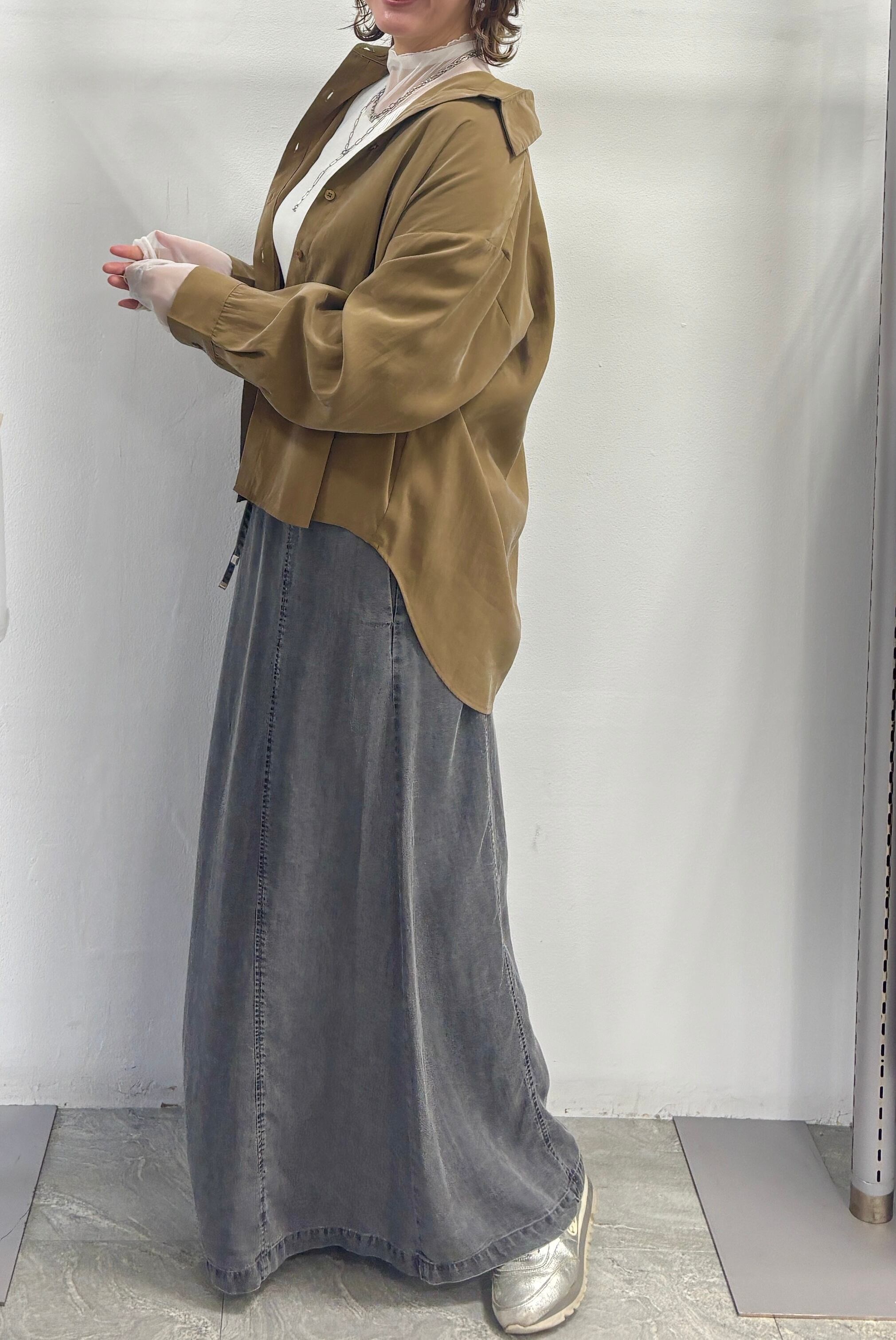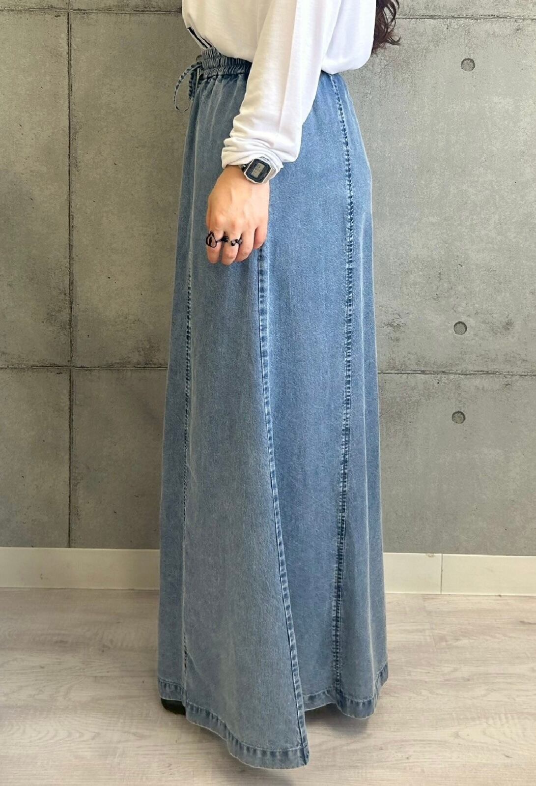 ● 注目のテンセルデニム素材で仕立てた、軽やかなフレアースカート。落ち感のあるしなやかな生地が、美しいシルエットを描きながらもリラックス感のある穿き心地を叶えてくれます。スカート部分には3面の切り替えラインを入れることで、立体感と動きのあるデザインに仕上がってます。ウエストは総ゴム仕様でストレスフリー。さらにウエスト紐付きでサイズ調整も簡単にでき、自分にぴったりのフィット感で楽しめます。こなれ感のある大人カジュアルが完成する1枚。