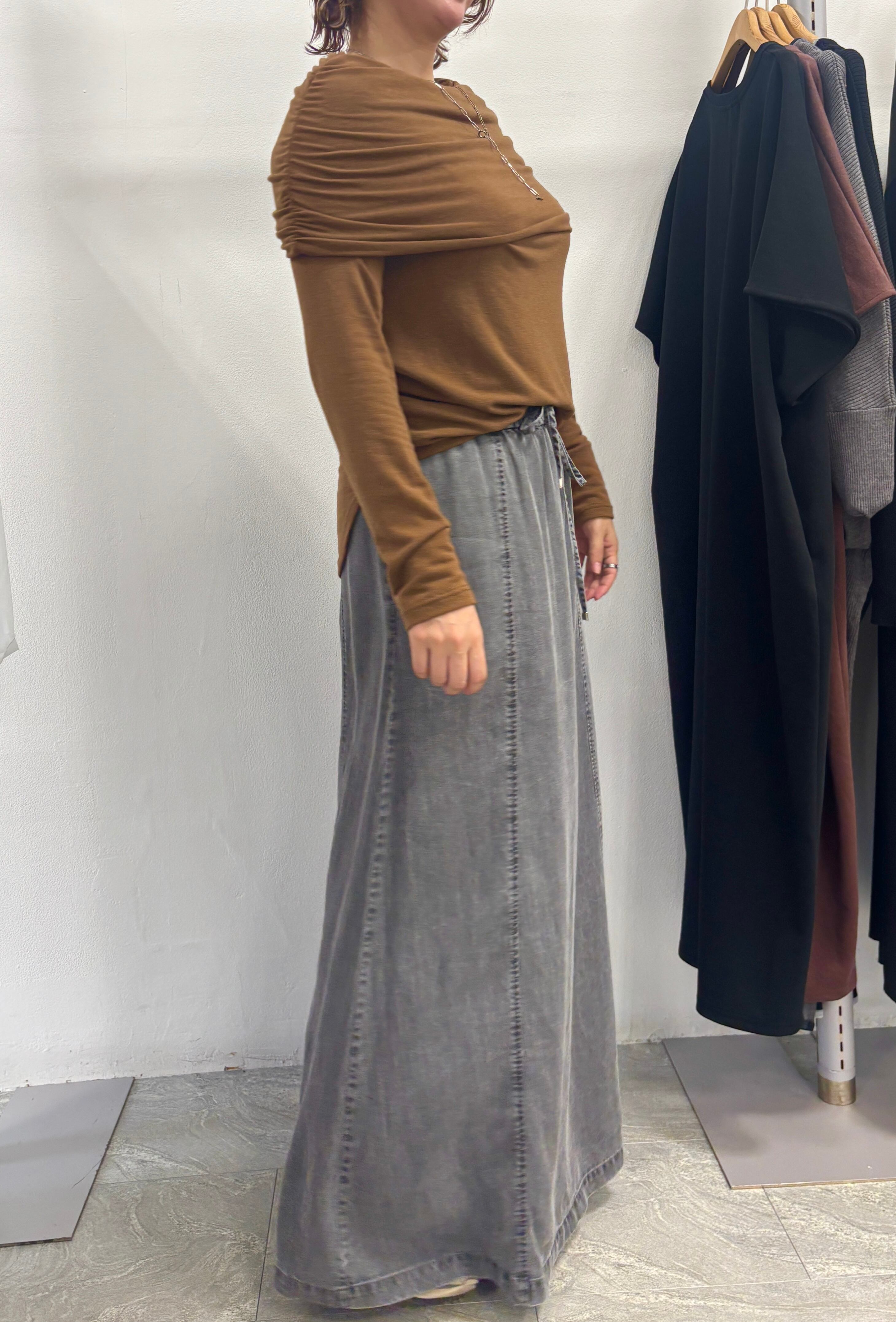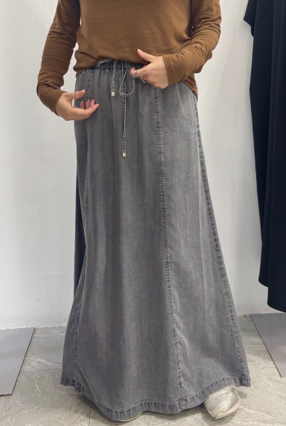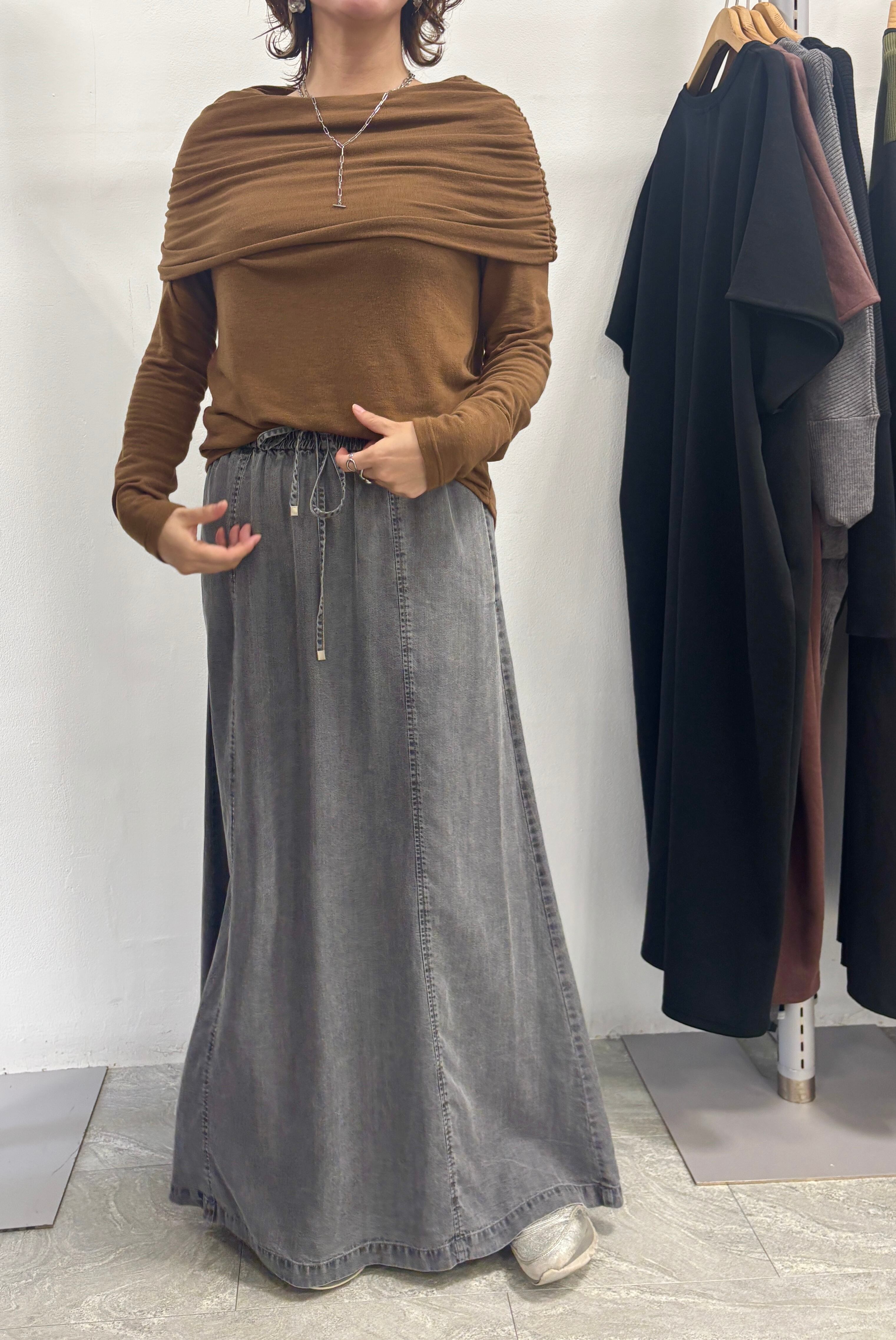 ● 注目のテンセルデニム素材で仕立てた、軽やかなフレアースカート。落ち感のあるしなやかな生地が、美しいシルエットを描きながらもリラックス感のある穿き心地を叶えてくれます。スカート部分には3面の切り替えラインを入れることで、立体感と動きのあるデザインに仕上がってます。ウエストは総ゴム仕様でストレスフリー。さらにウエスト紐付きでサイズ調整も簡単にでき、自分にぴったりのフィット感で楽しめます。こなれ感のある大人カジュアルが完成する1枚。