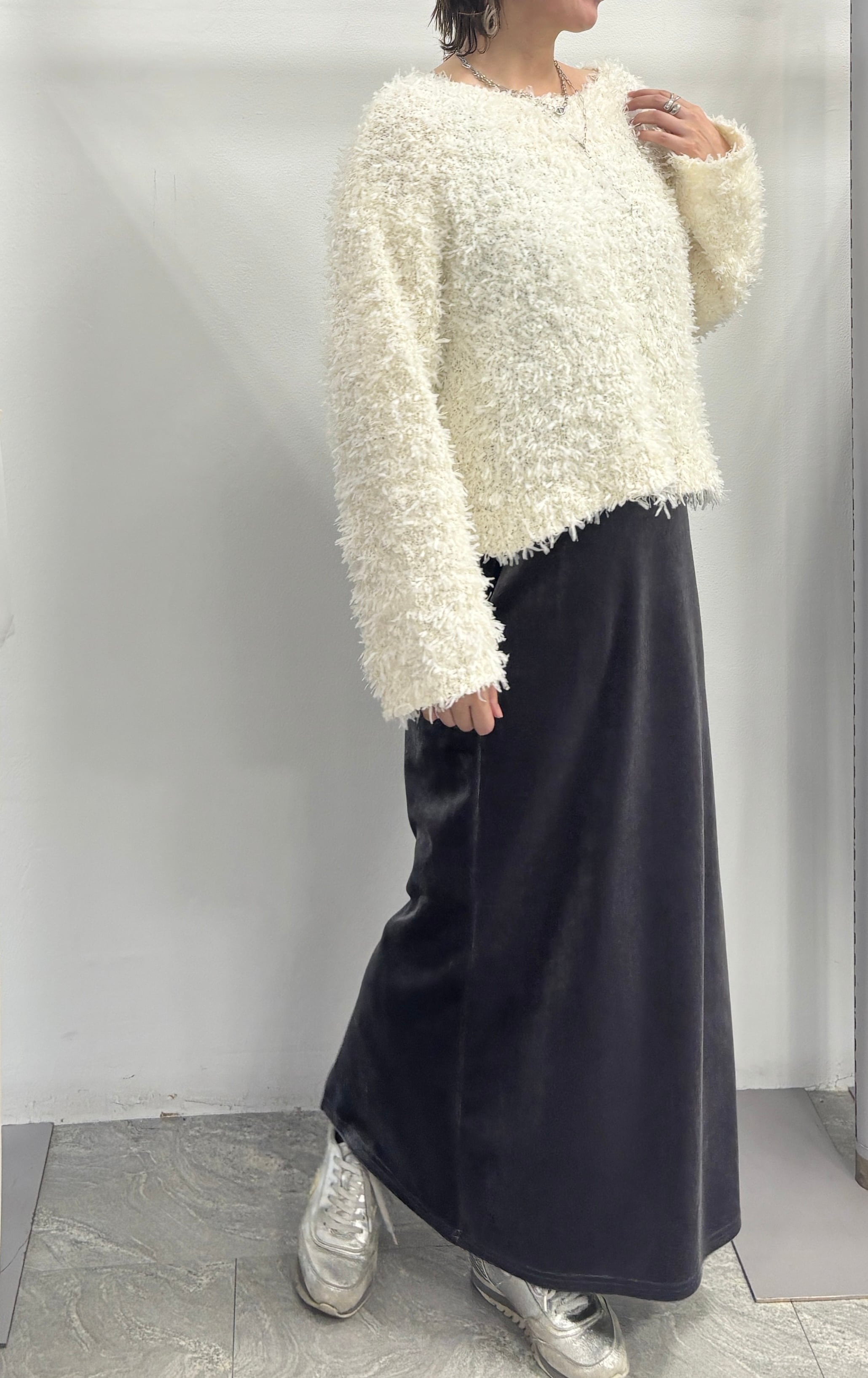 ● シンプルなのに主役級。テープヤーンの存在感ニット
