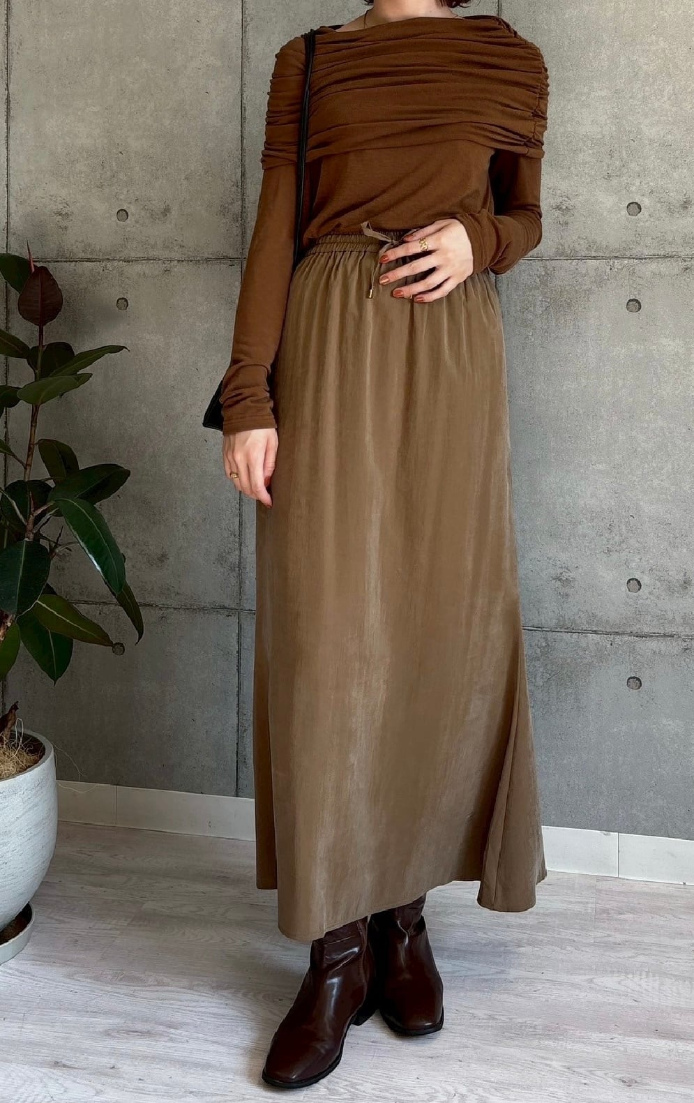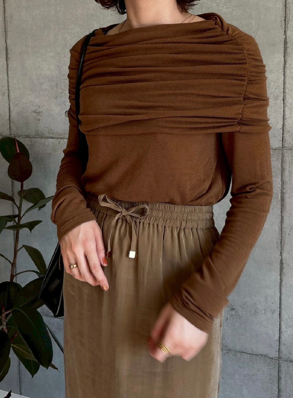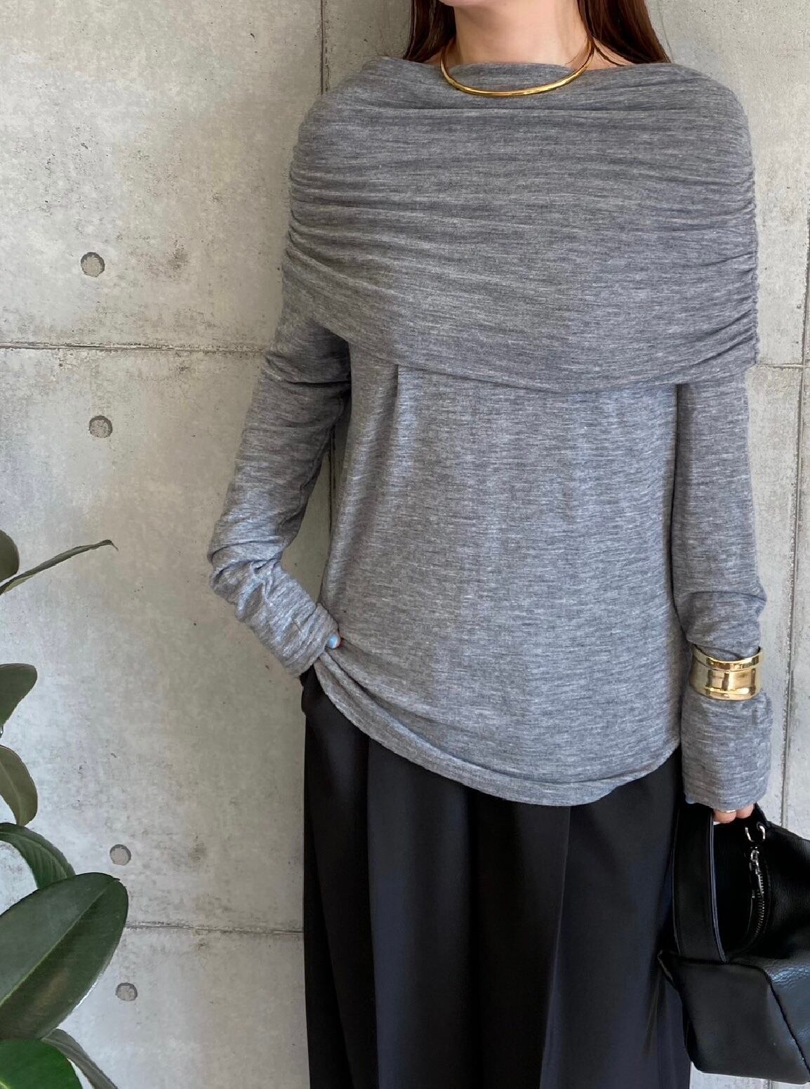 ● ほどよい肩見せデザインが、大人の抜け感を演出するニットソートップス。肩部分にはシャーリングギャザーを施し、顔まわりをすっきり華やかに見せてくれる美シルエットに仕上げました。やや長めの袖丈と、細見えするすっきりとしたラインが、腕まわりをきれいに演出。身体にややフィットするシルエットが、女性らしいラインを上品に引き立てます。軽やかなニットソー素材で着心地もよく、デイリーにもお出かけにも活躍する万能トップスです。