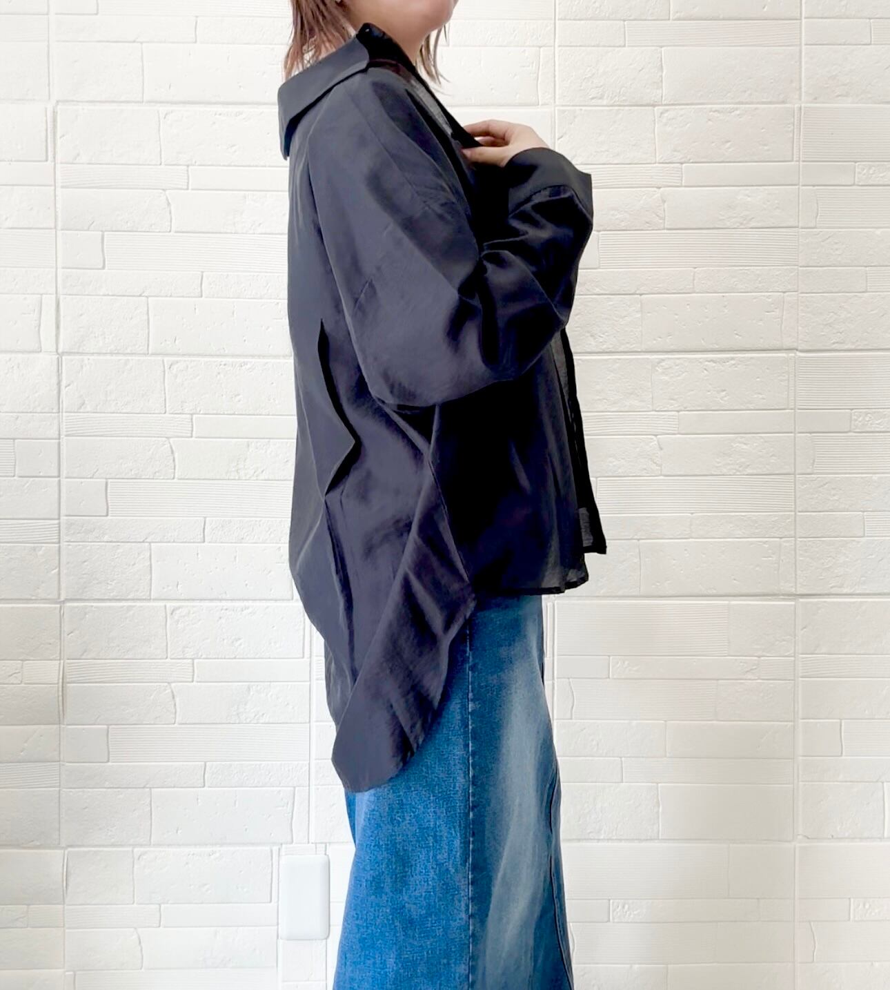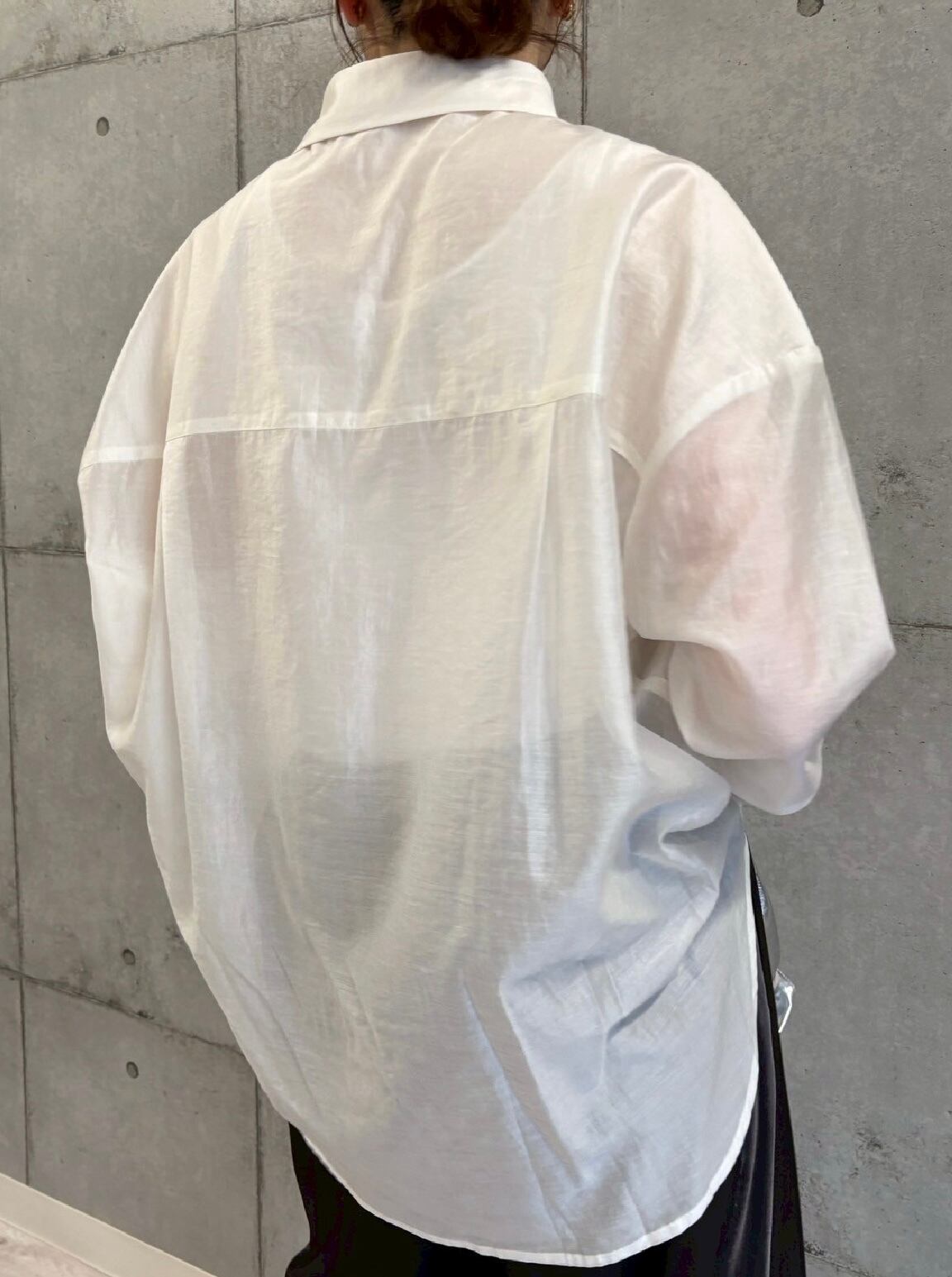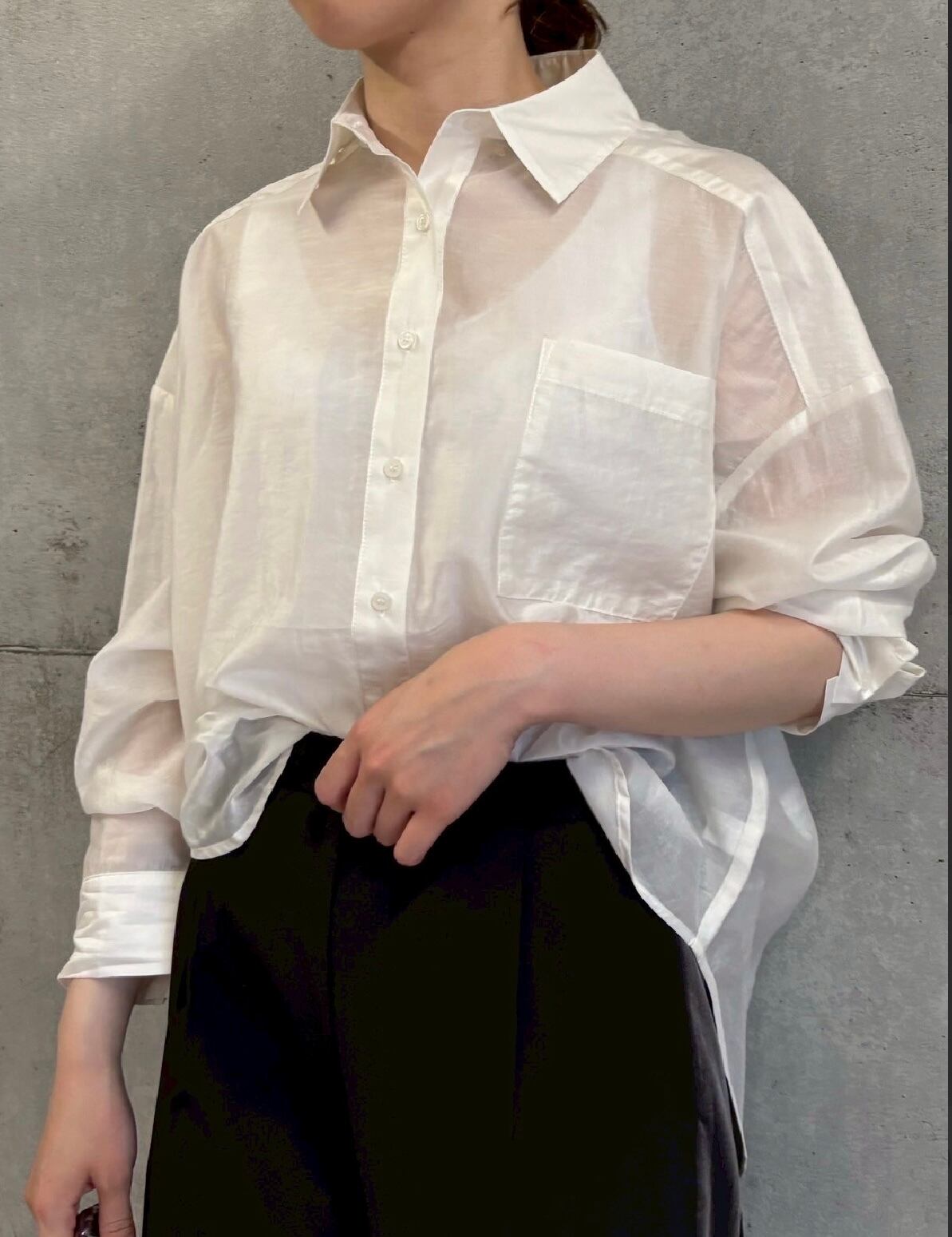 ●人気シャツが新色混じえて再登場‼︎大人抜け感を演出するシアーシャツは、軽やかな素材感と程よい透け感が魅力の一着です。さらっとした肌触りで、オールシーズン着回し可能。ボトムスを選ばず、カジュアルにもキレイめにも合わせやすいデザインがポイントです!両サイドのスリットが程よい抜け感を与え、抜群のスタイルバランスを実現します✨