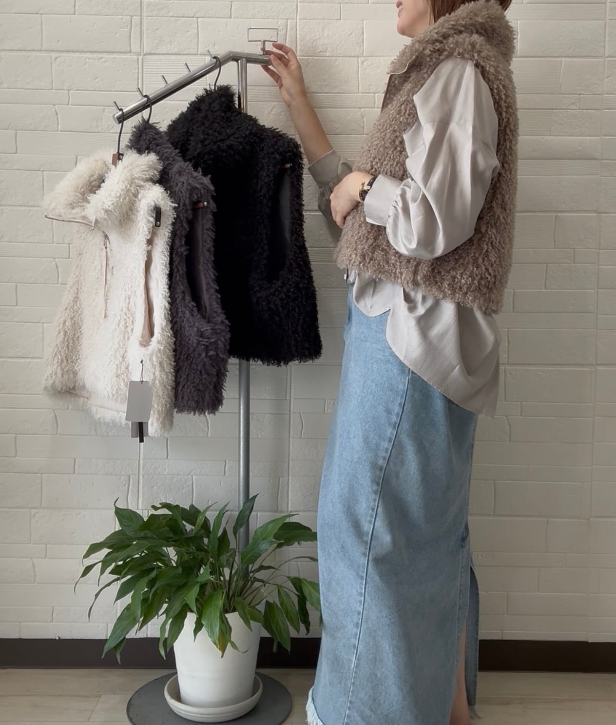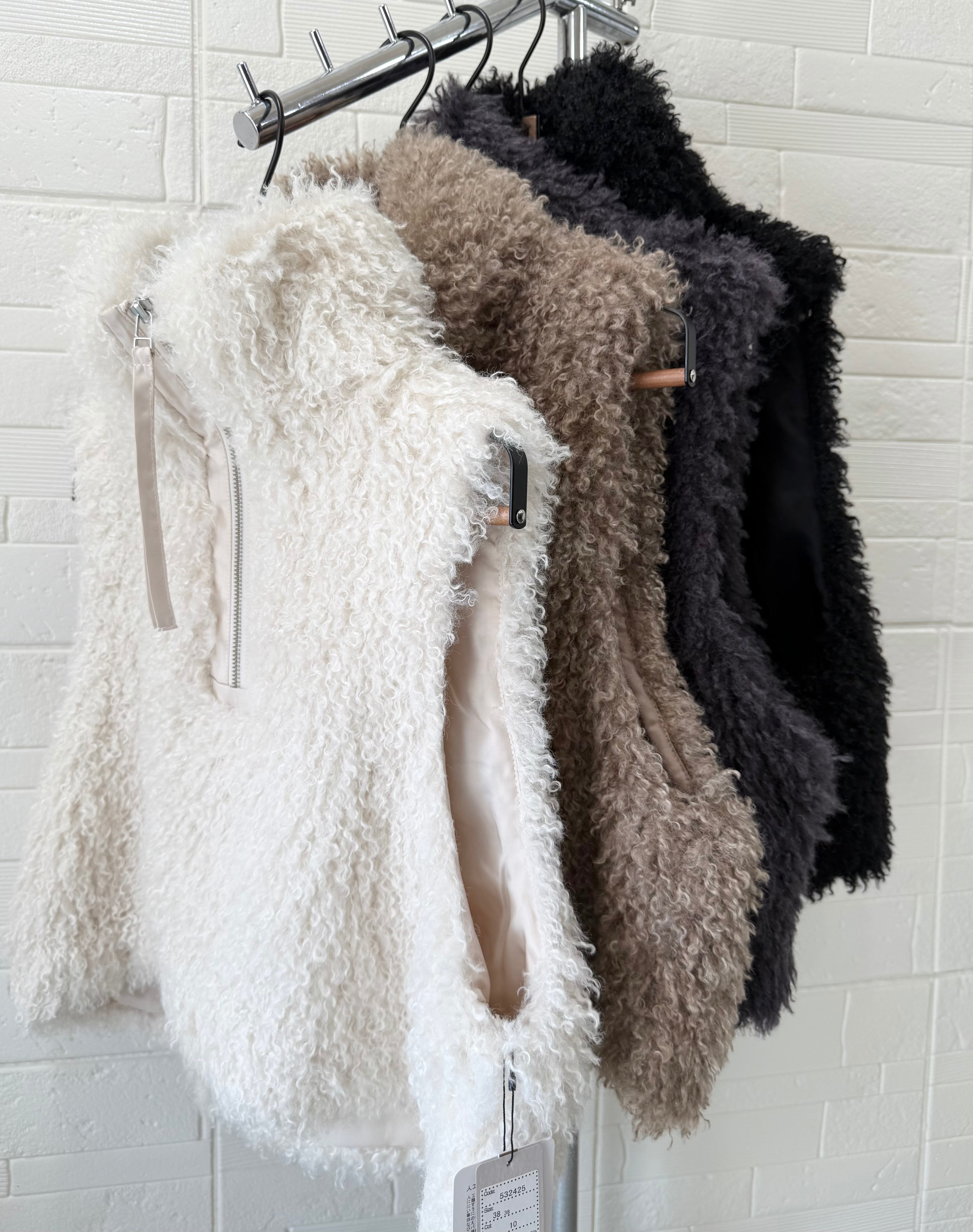 ● ふんわりとしたプードルファーを使用した短丈のベストが、カジュアルからエレガントまで幅広くマッチする一着として登場!柔らかい質感が心地良く、着るだけでリラックスした雰囲気を演出します。短丈のデザインがスタイルアップを図り、ボトムスとのコーディネートも楽々。さっと羽織るだけで、コーディネートが一気に華やかになるアイテムです✨