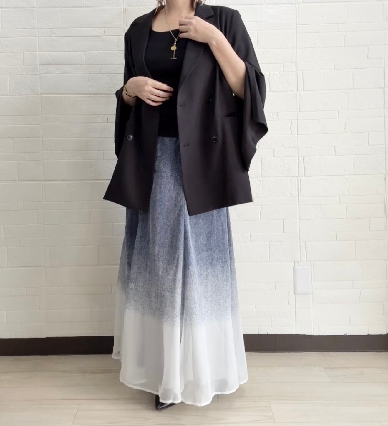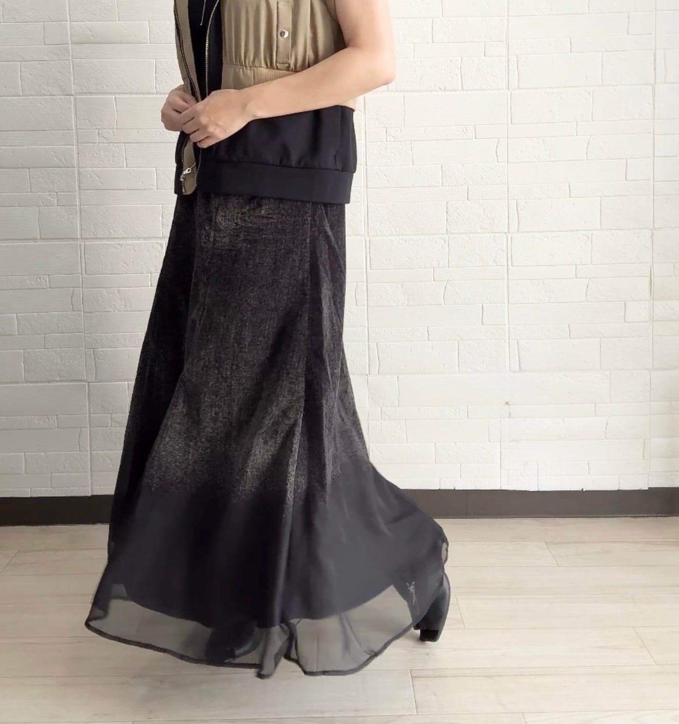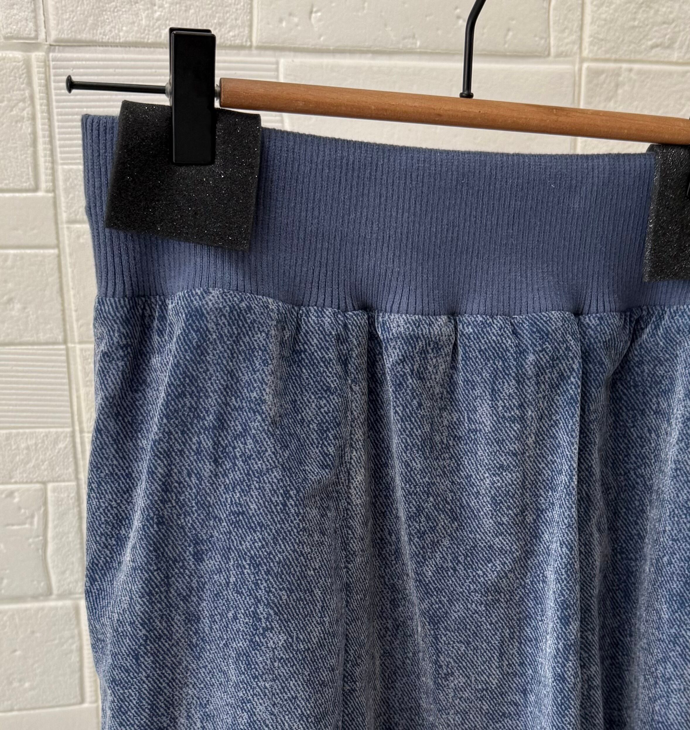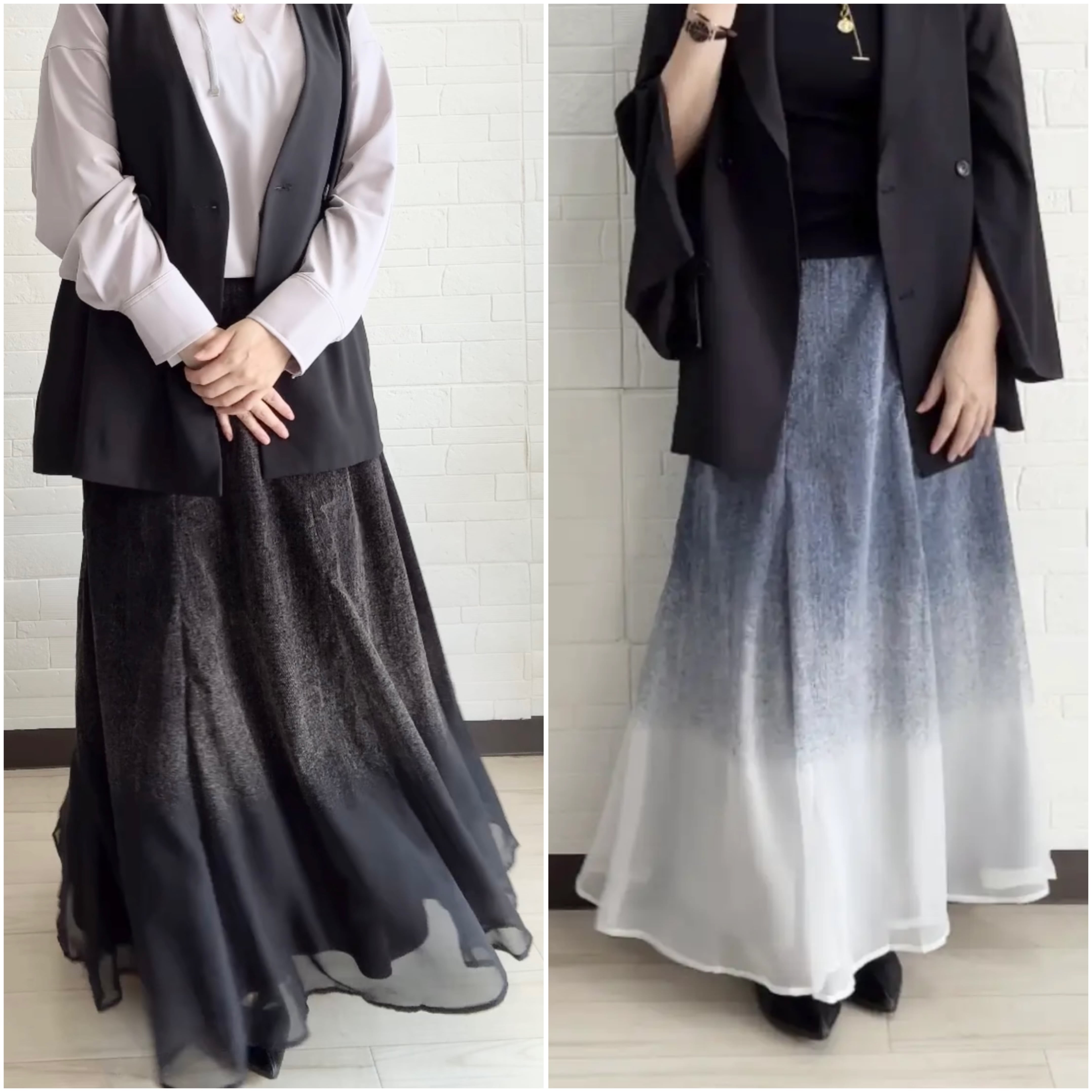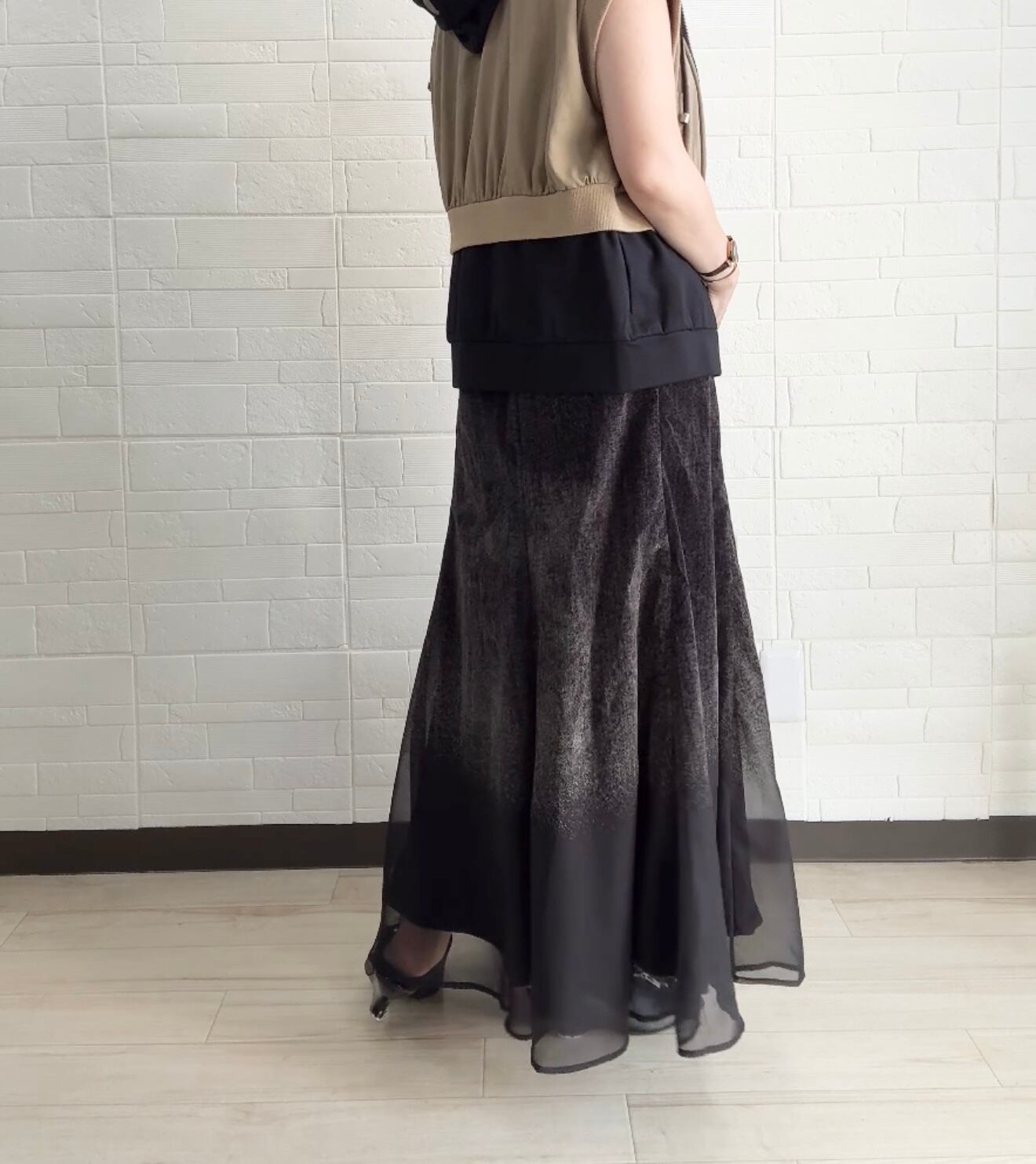 ● デニム風のフロッキープリントで美しいグラデーションデザインが魅力のスカートです!どんなトップスにも合わせやすくキレイめなカジュアルに最適です。軽やかな素材感で、ウエストのリブは締め付け感がなく快適な着心地です!
