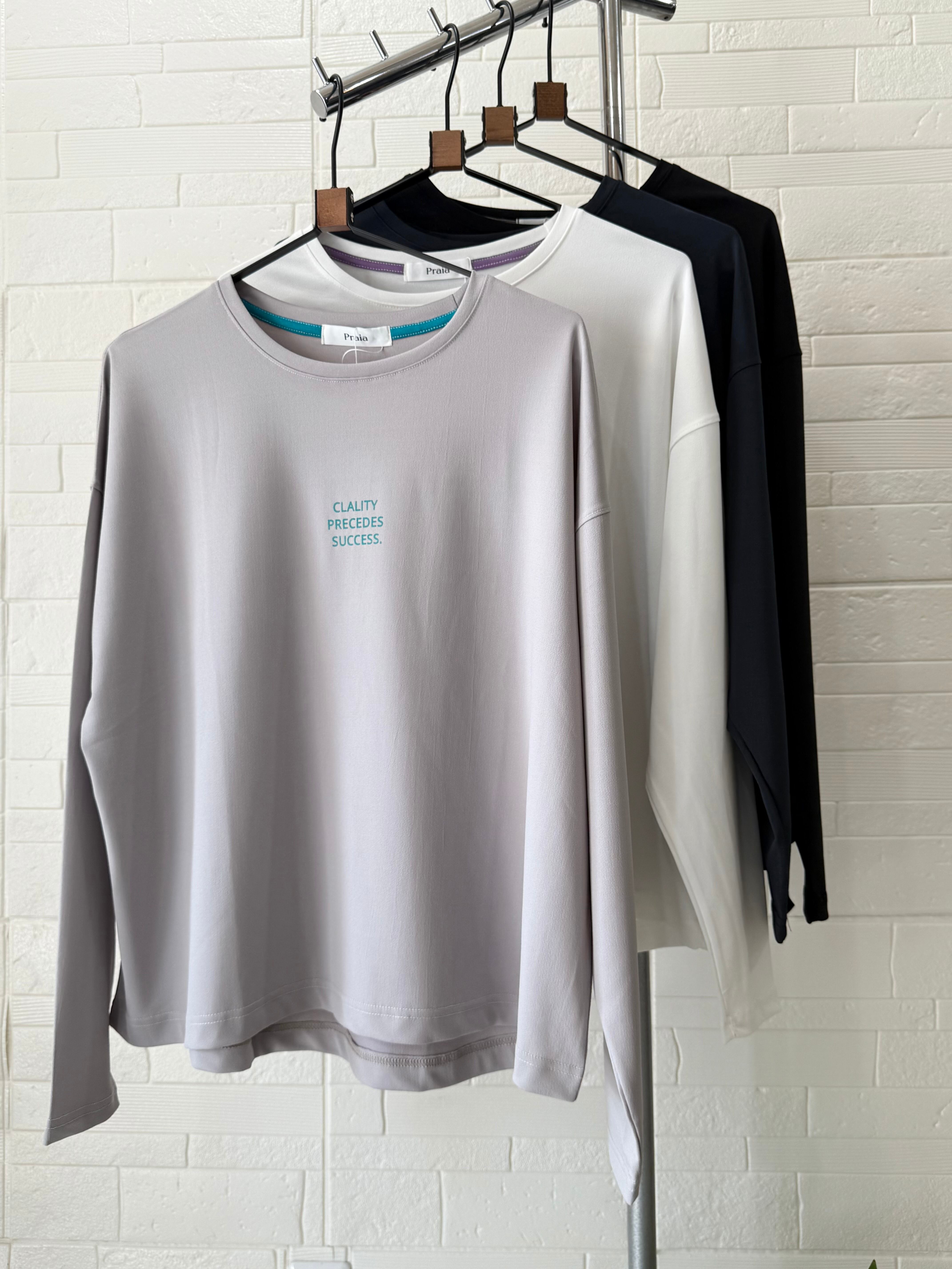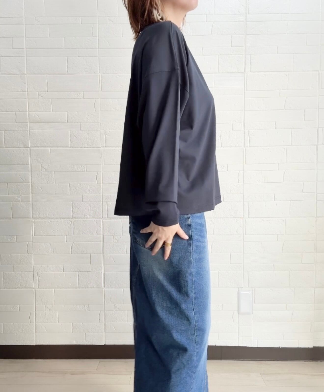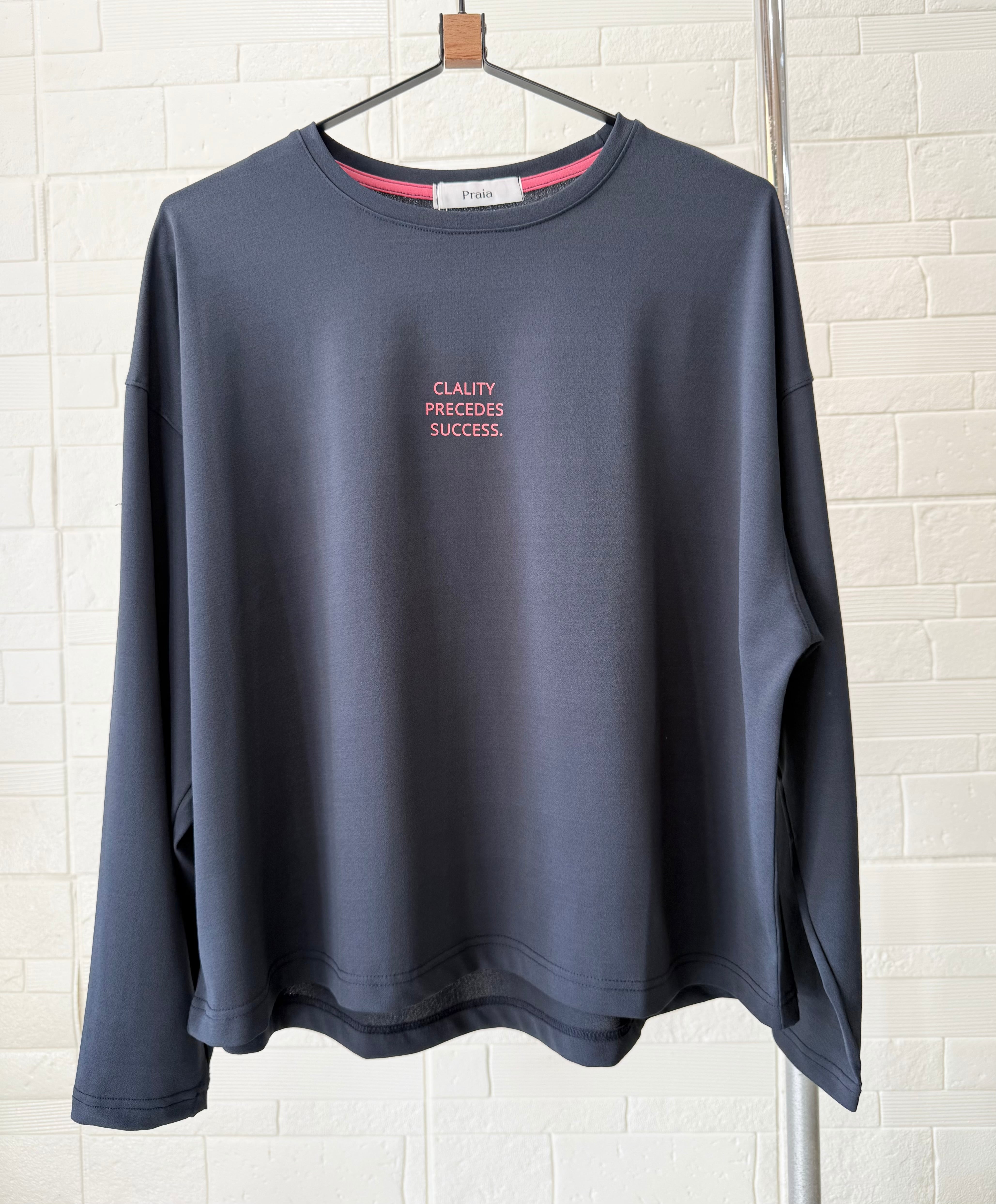 ● カジュアルなのに上品見えが叶う、ブラウス見え素材を使用したロンTが登場!表面に梨の皮のようなざらつきがある「梨地素材」を使用。独特の表情と肌離れの良さが特徴です。鮮やかなカラーロゴプリントがアクセントになるデザイン。さらに、嬉しい通気性と、シワになりにくく速乾性にも優れた機能性素材なので、気温が少々高めでも大活躍すること間違いなし。デイリーに活躍する優秀アイテムです。