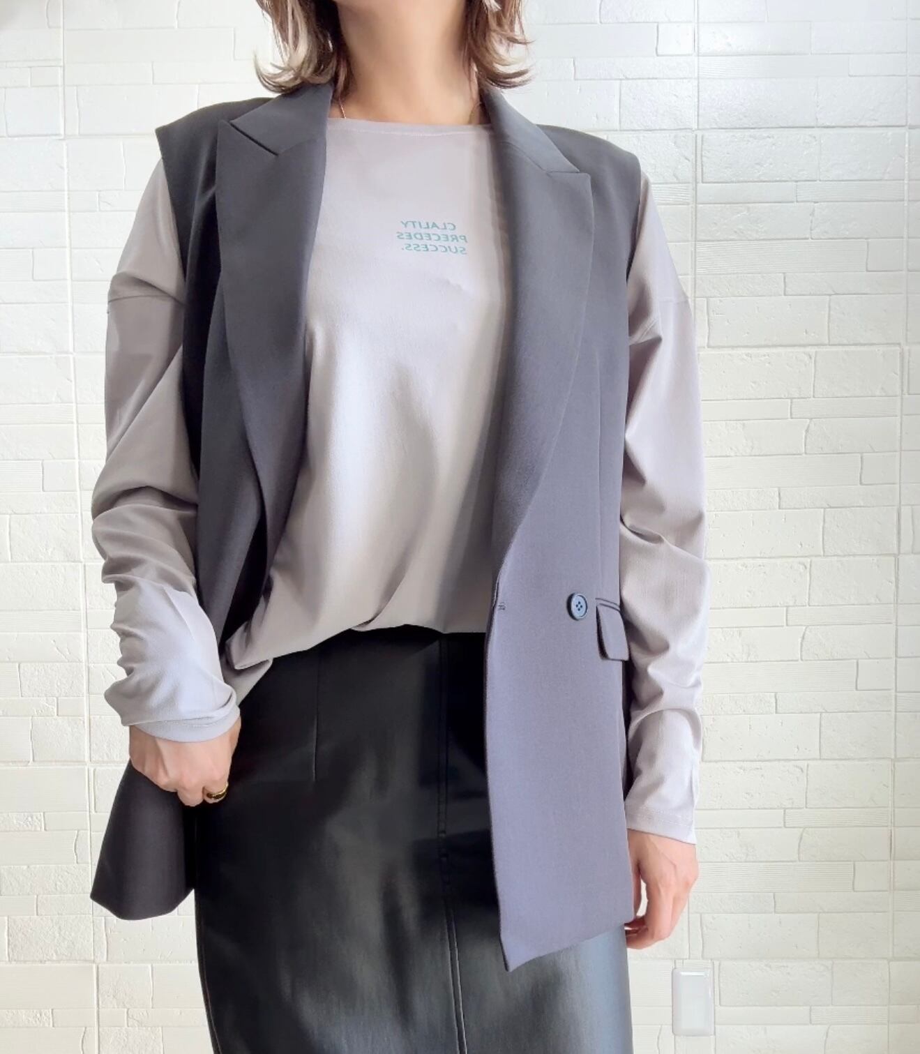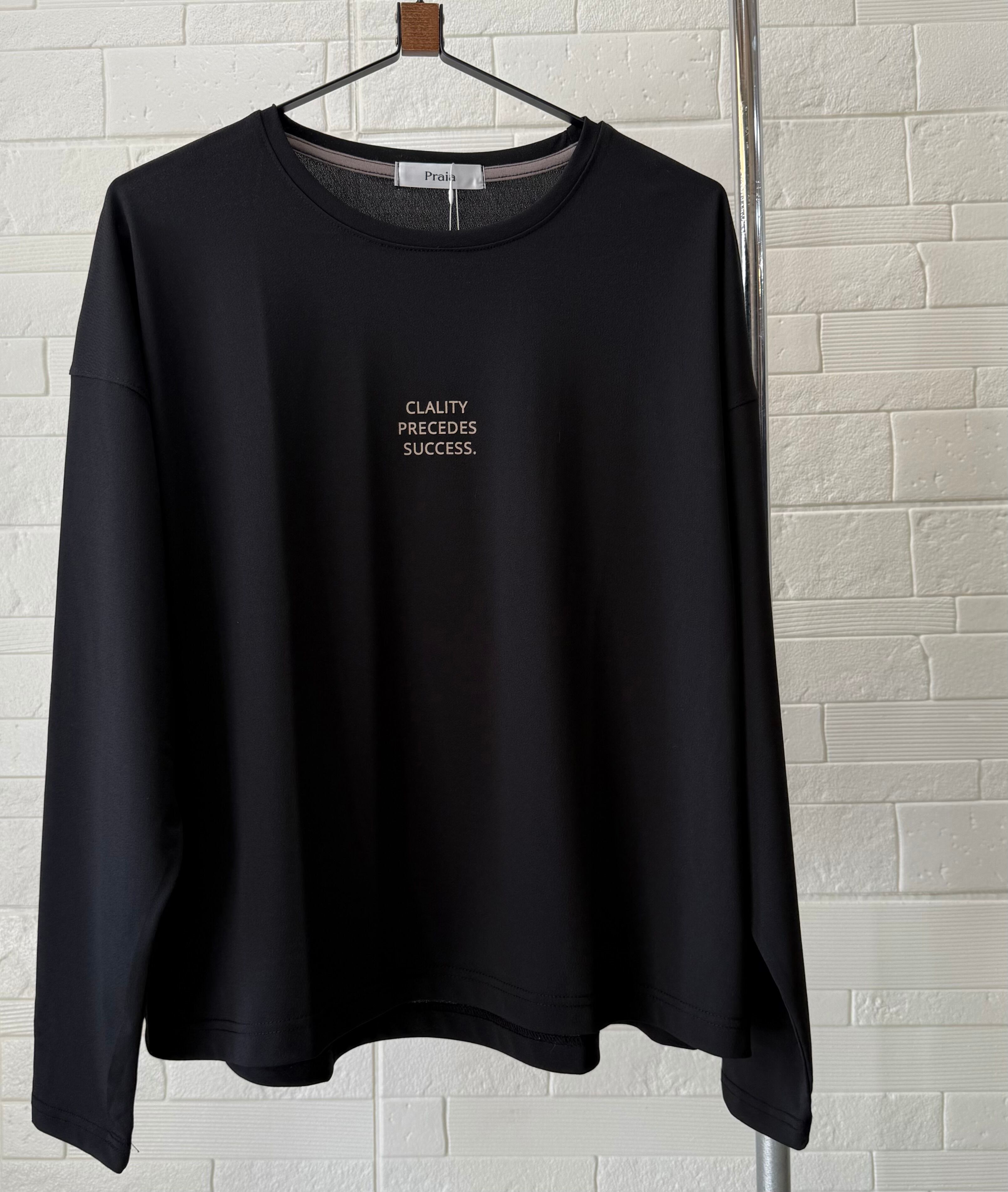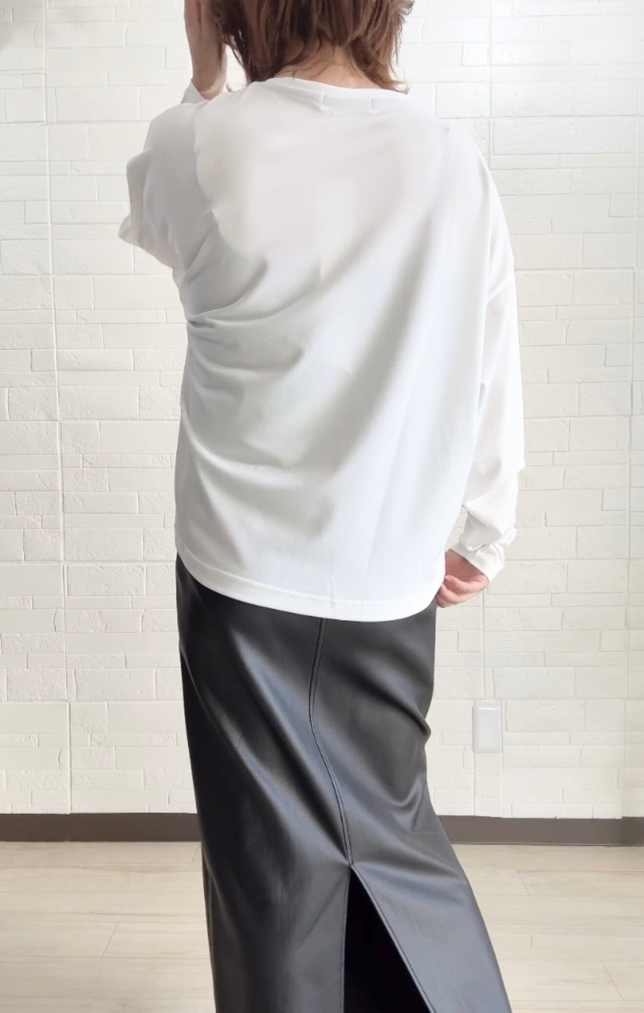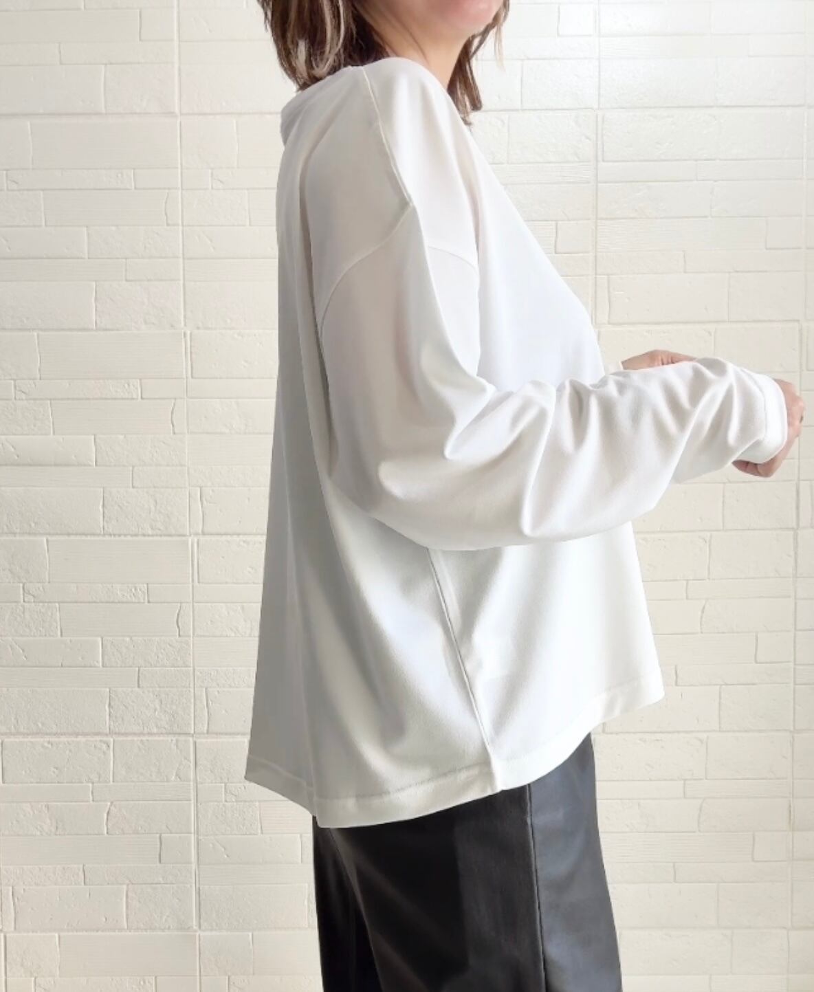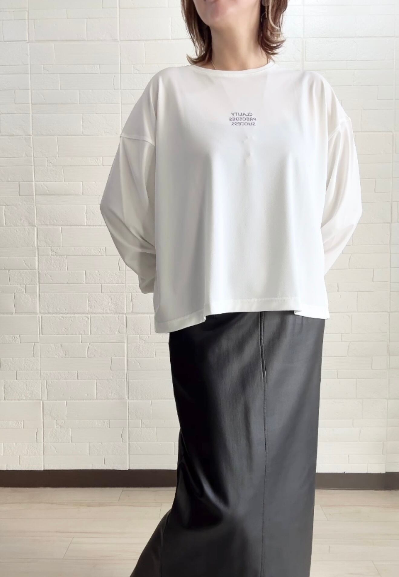 ブラウス見え梨地素材カラーロゴプリントロンT