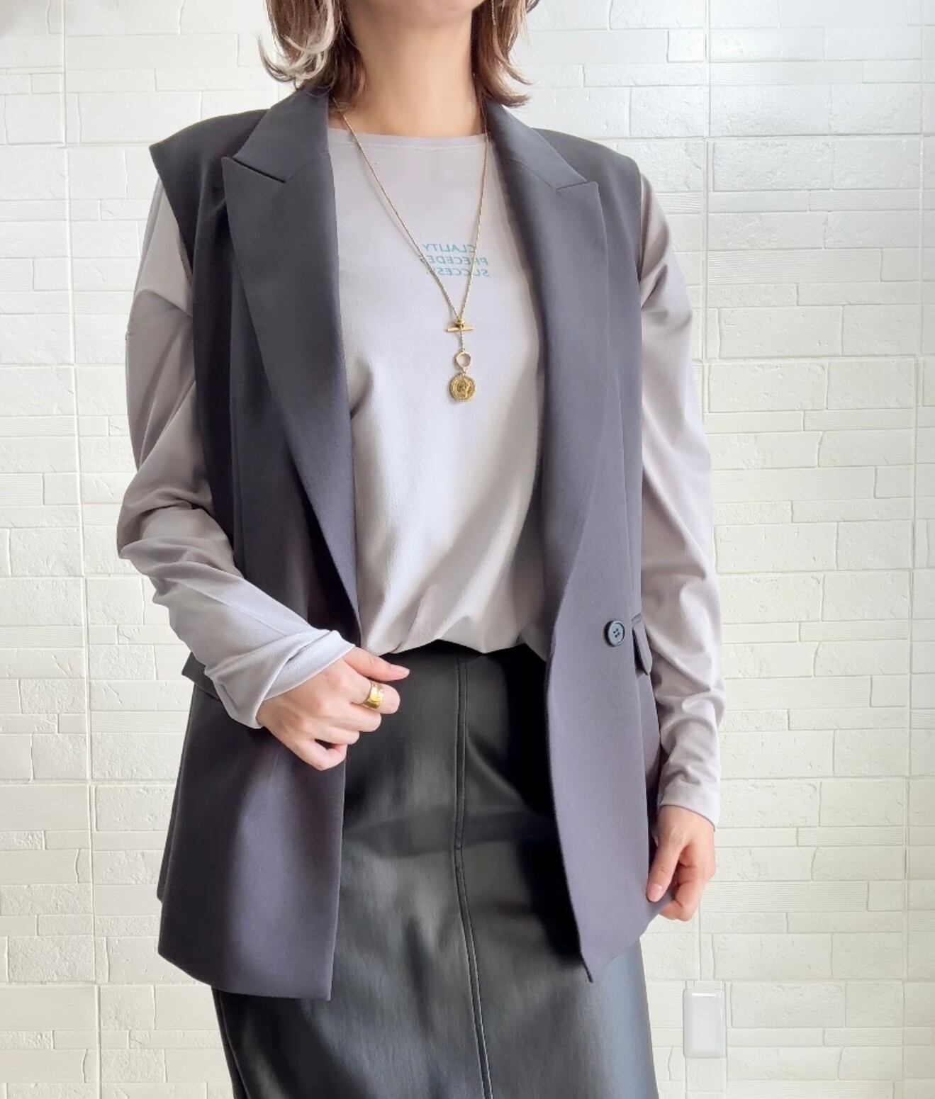 ①ブラウス見え梨地素材 カラーロゴプリントTシャツ | Talent_Voler (タランヴォレ)
