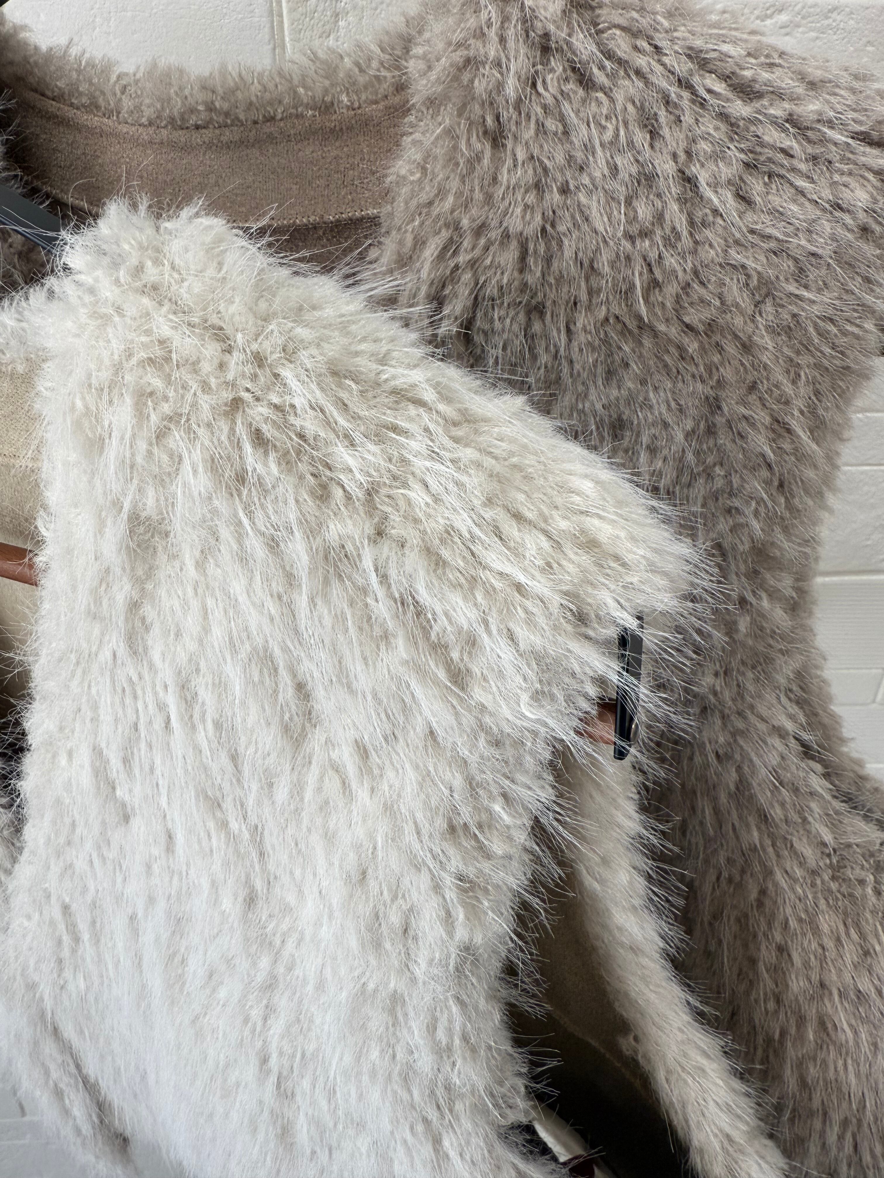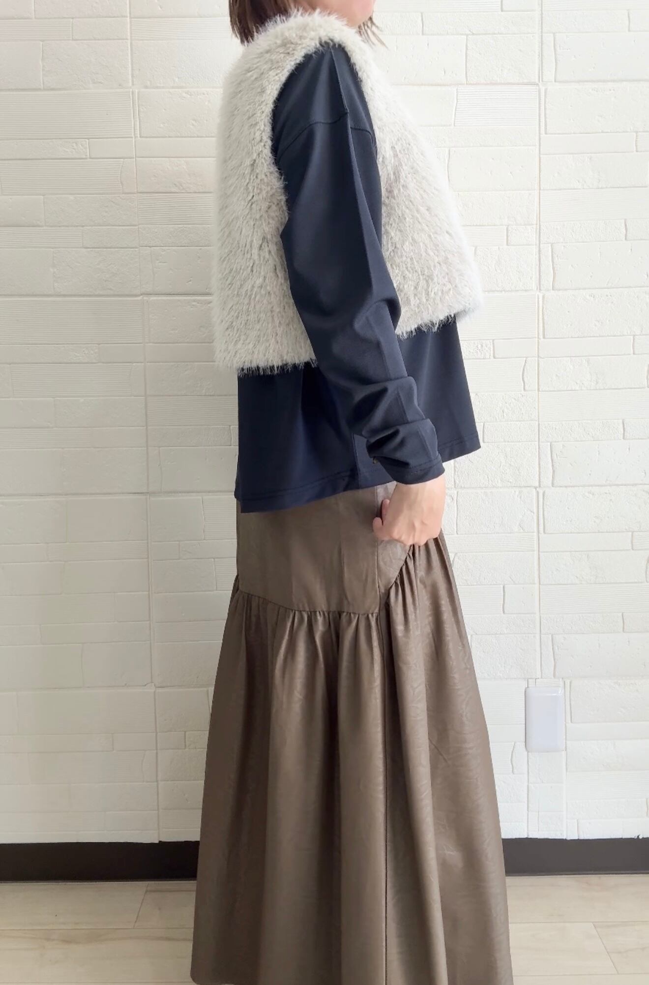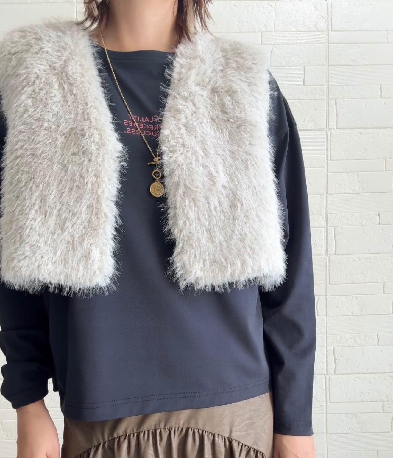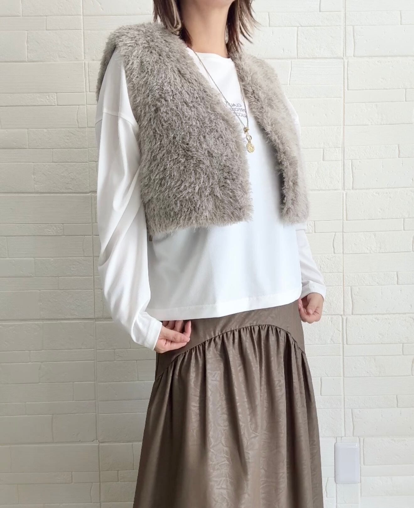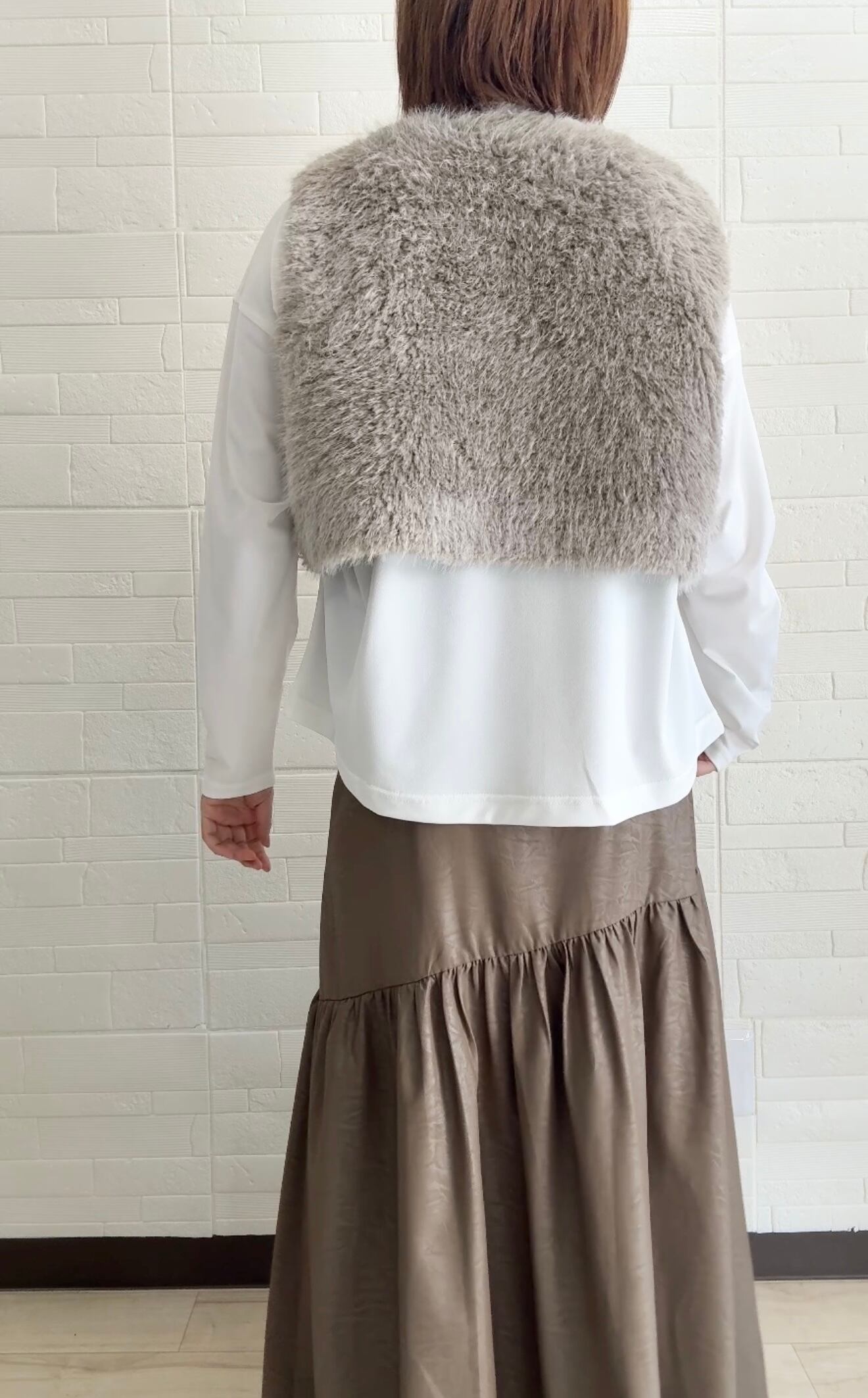● 柔らかい短丈エコファーデザインは、ポイント使いによくスタイリッシュな印象を演出してくれます。シンプルながらも存在感のある一枚で、カジュアルからフォーマルまで幅広いシーンで活躍します!嵩張ないエコファーなのでインナーの上からアウターの下まで幅広くコーディネートに是非取り入れてみてください✨