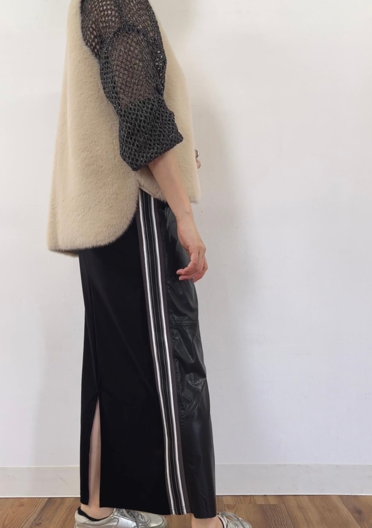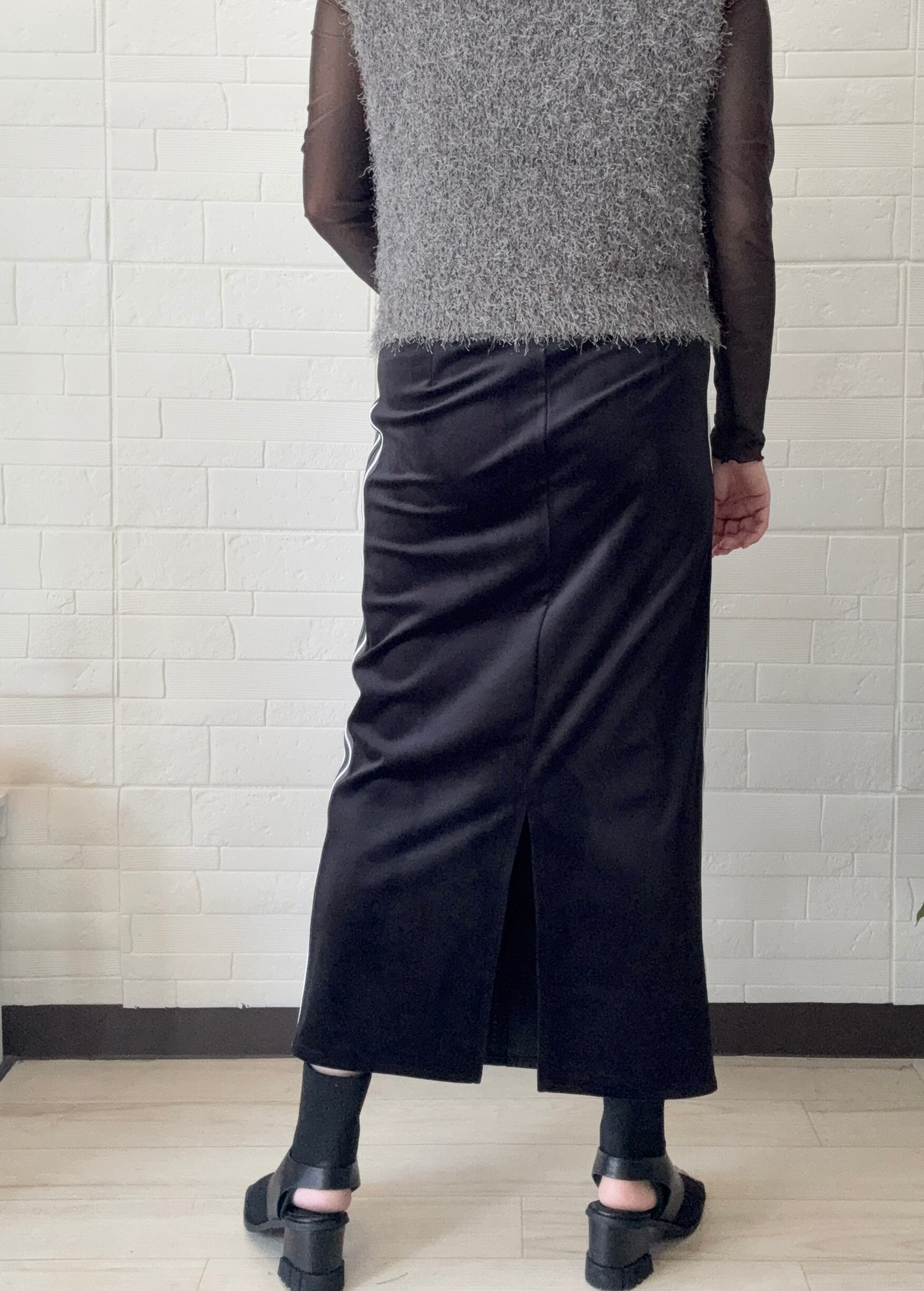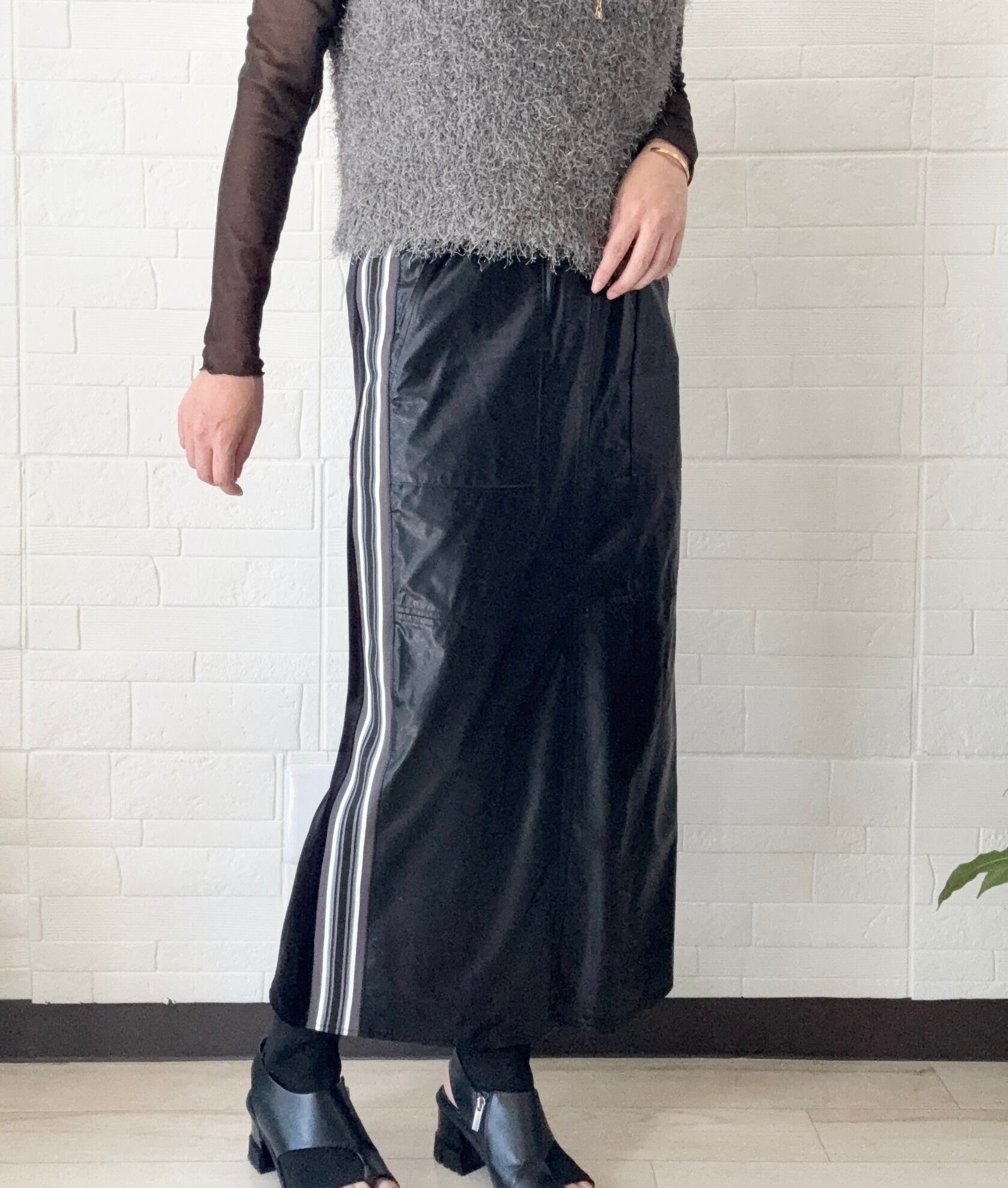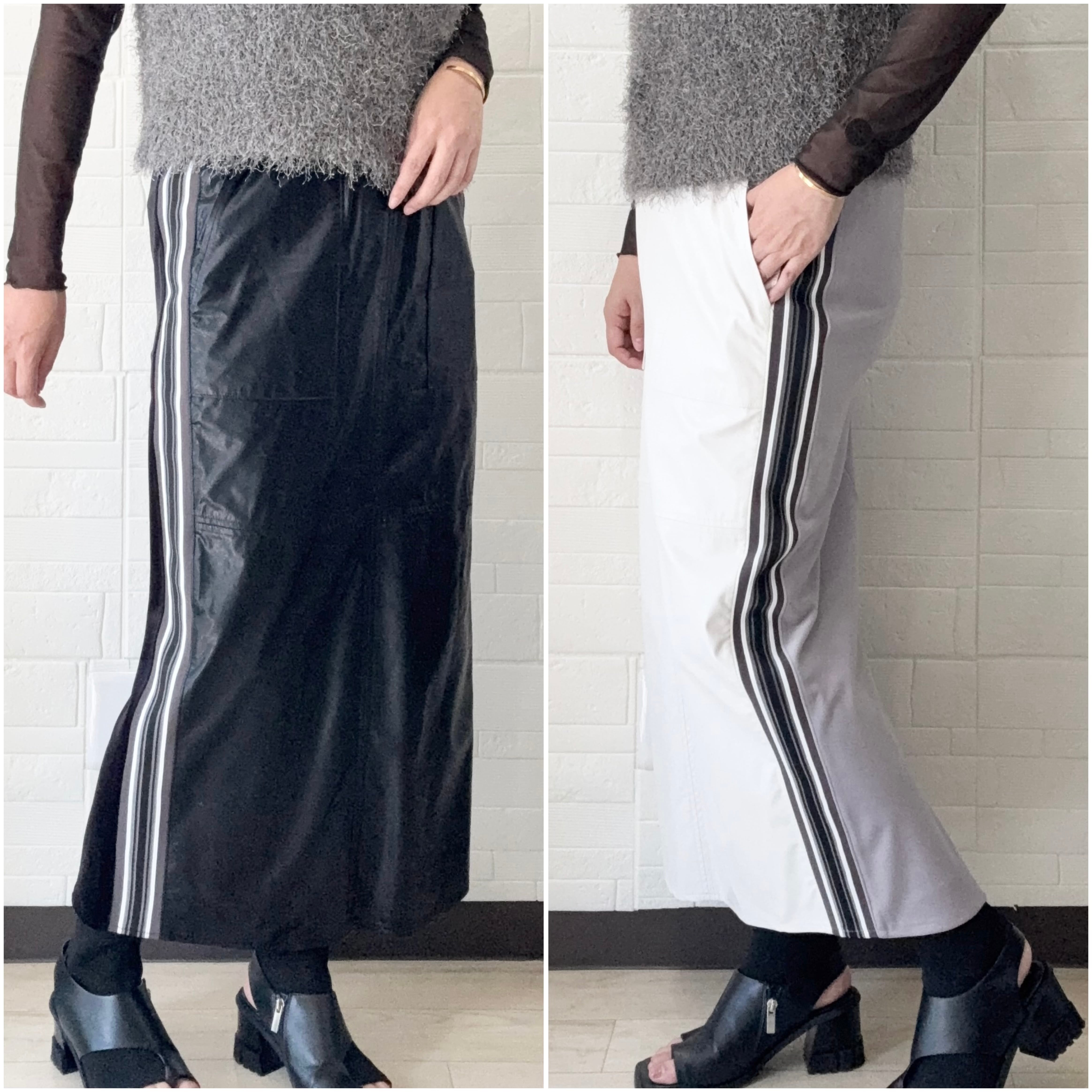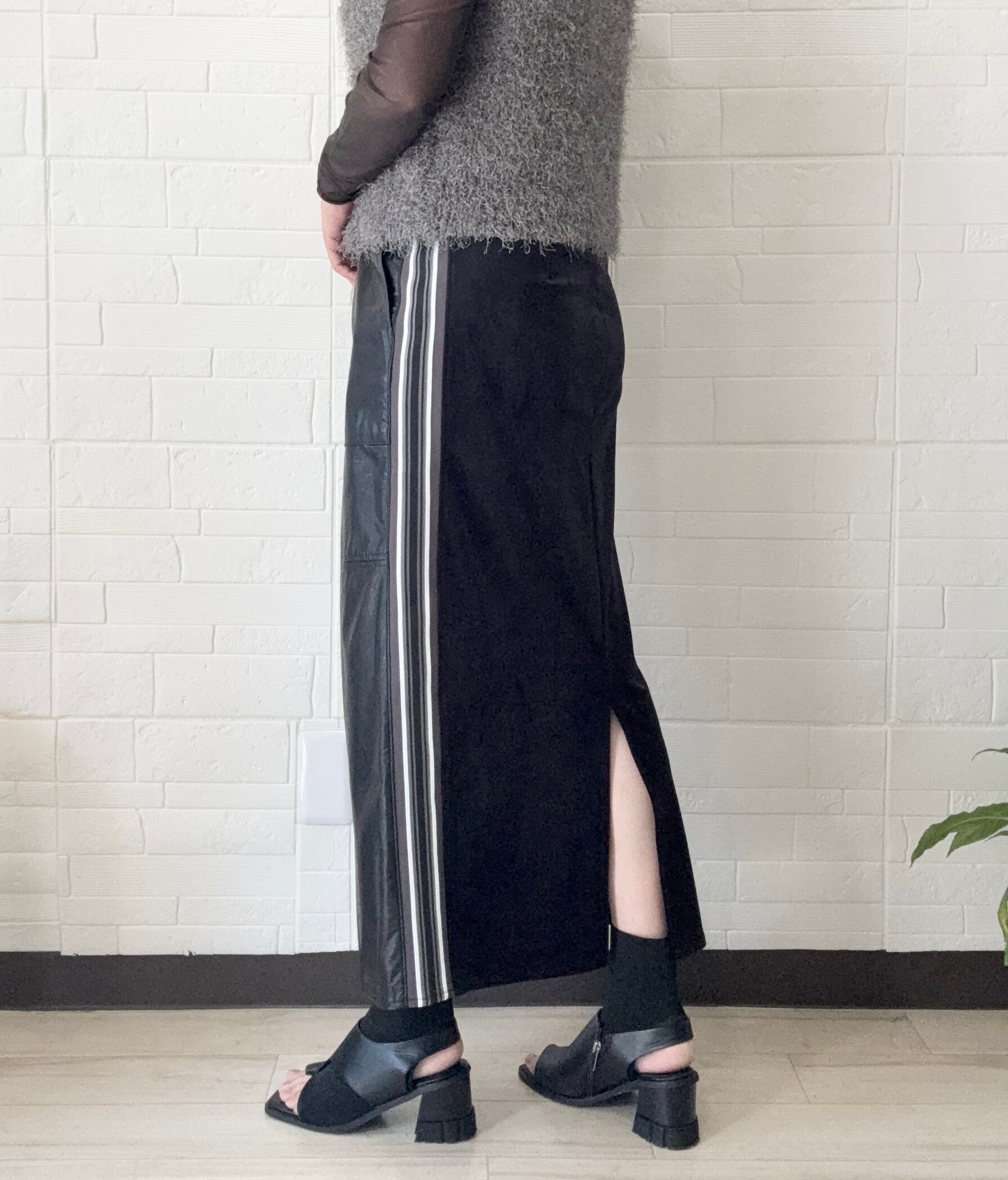 フェイクレザー&ソフトベッチンサイドラインタイトスカート