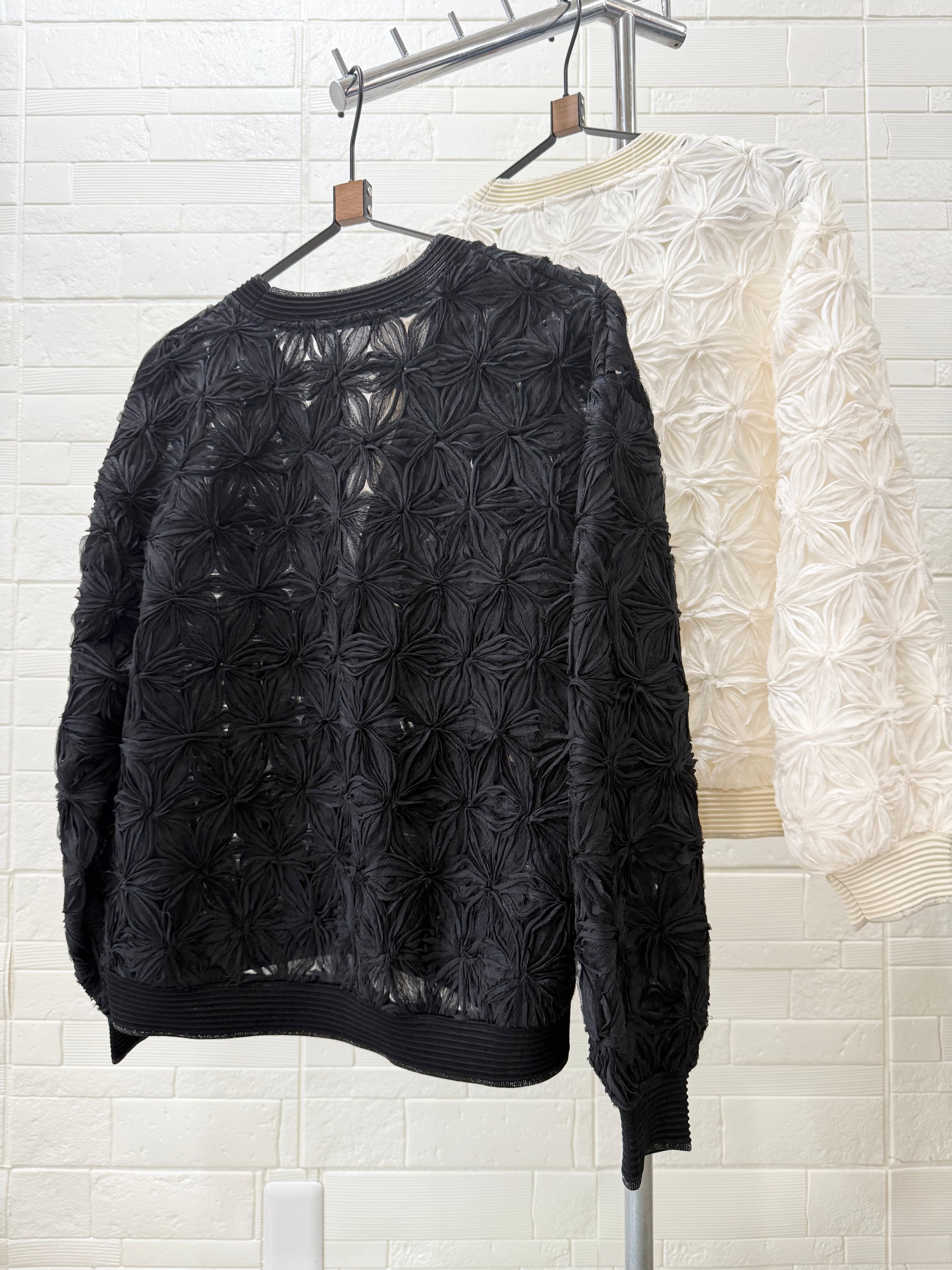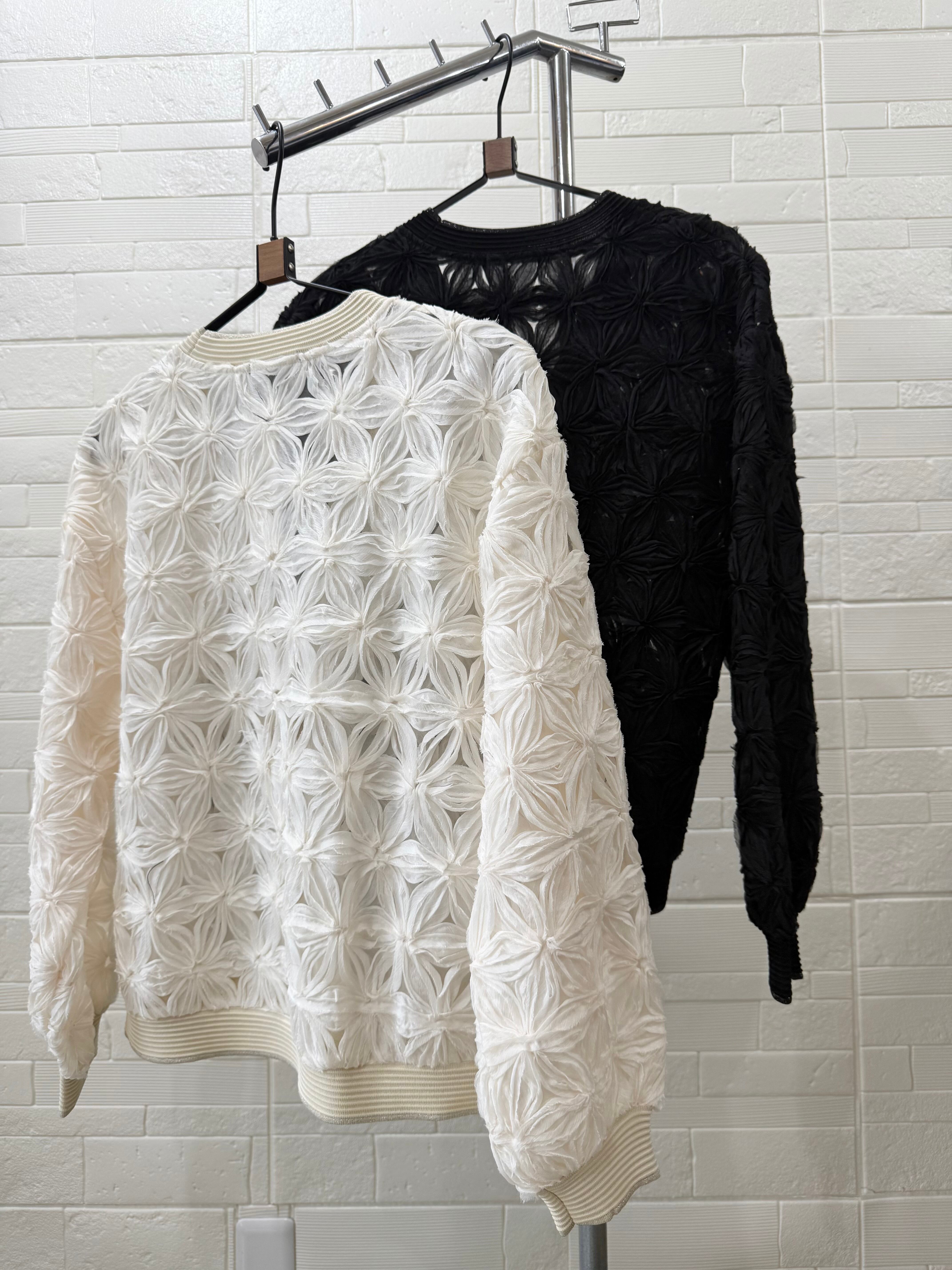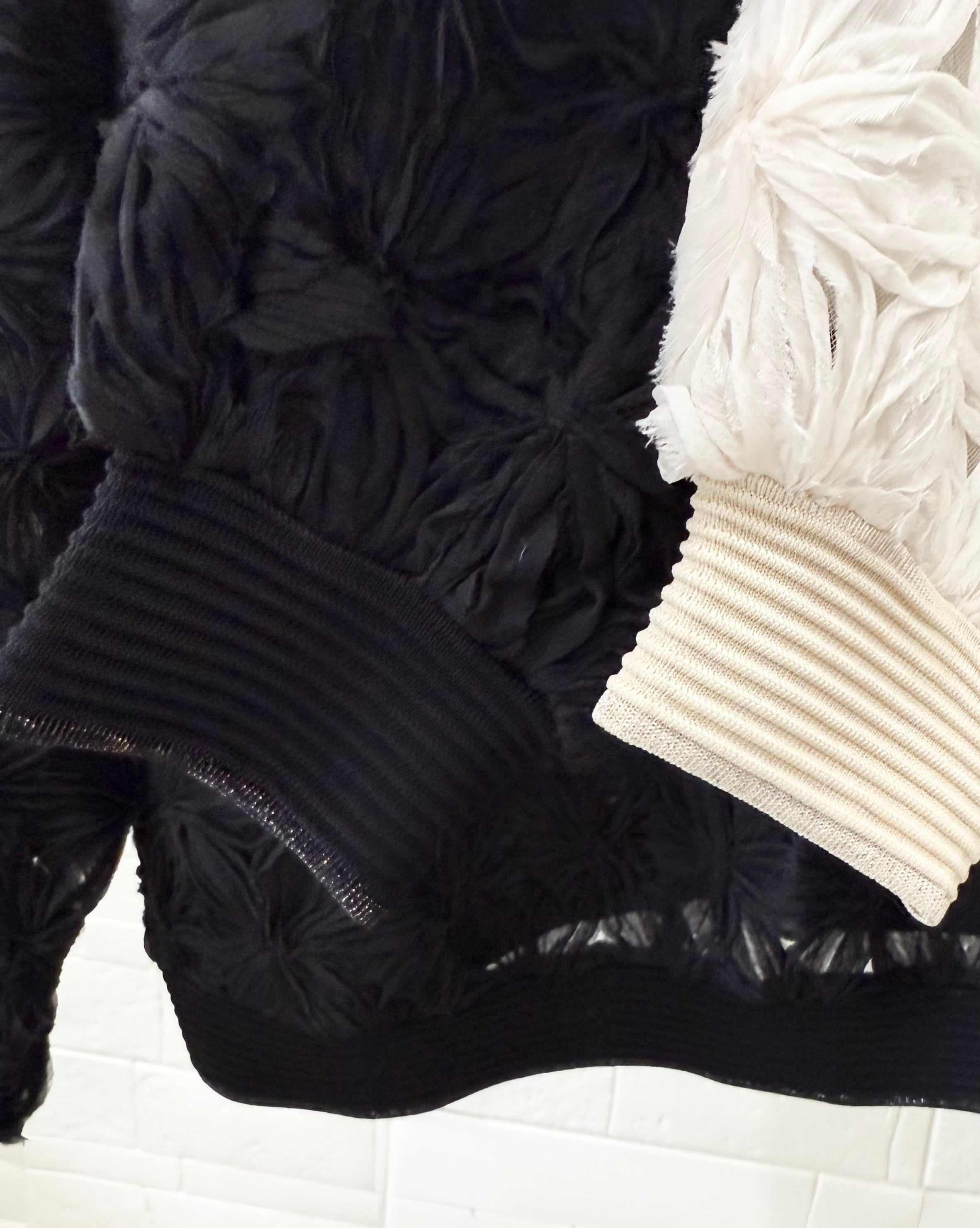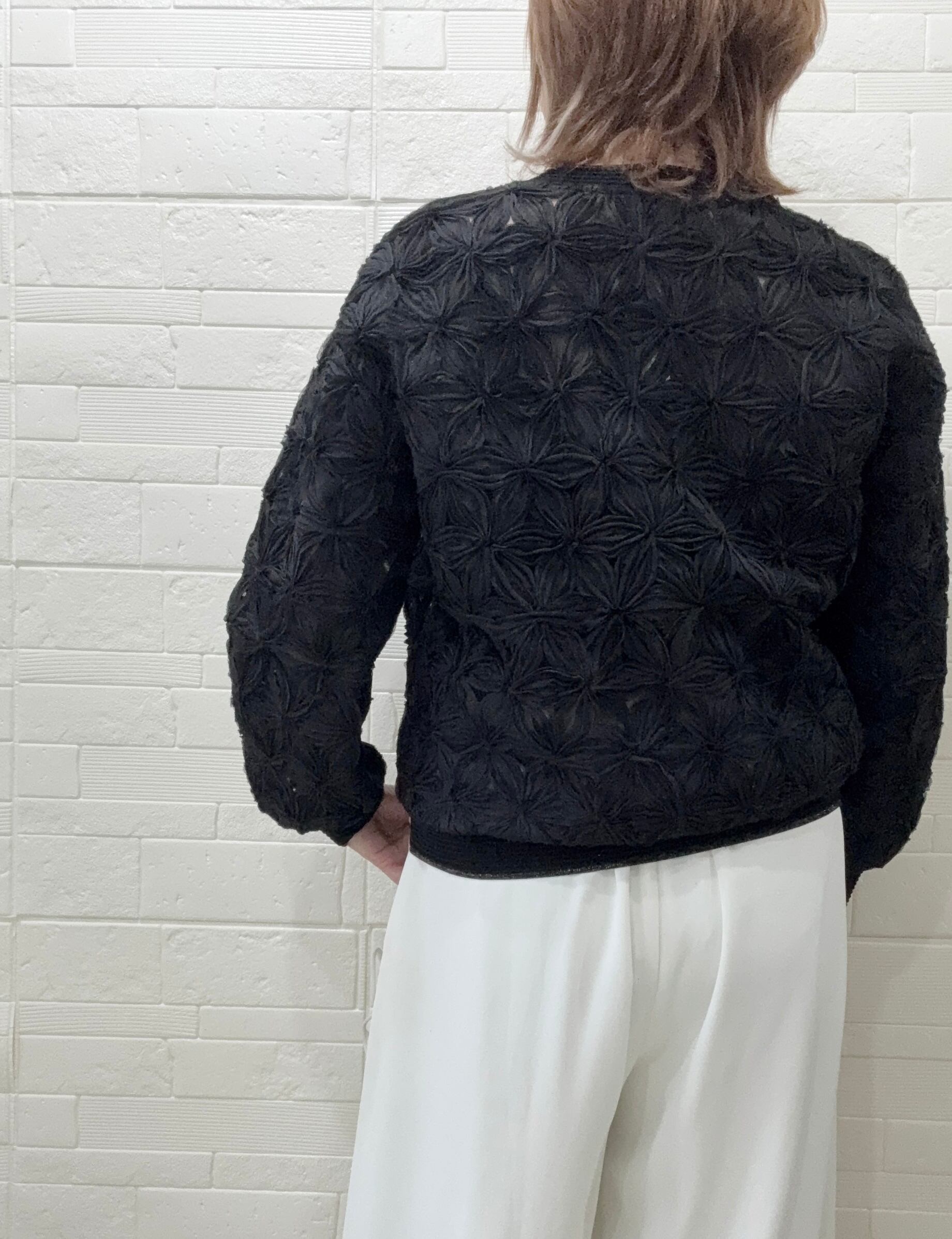 ● 華やかなレース素材が際立つアイテムです!エレガントな花が散りばめられており、特別な場面でも映えるデザインとなっています。レースの柔らかな質感は女性らしさを引き立て、季節を問わず楽しめる一着です。レース部分はシフォン素材を使用しているため、優雅な印象を与えます。凹凸感のある素材感はより一層オシャレが引立ちます✨