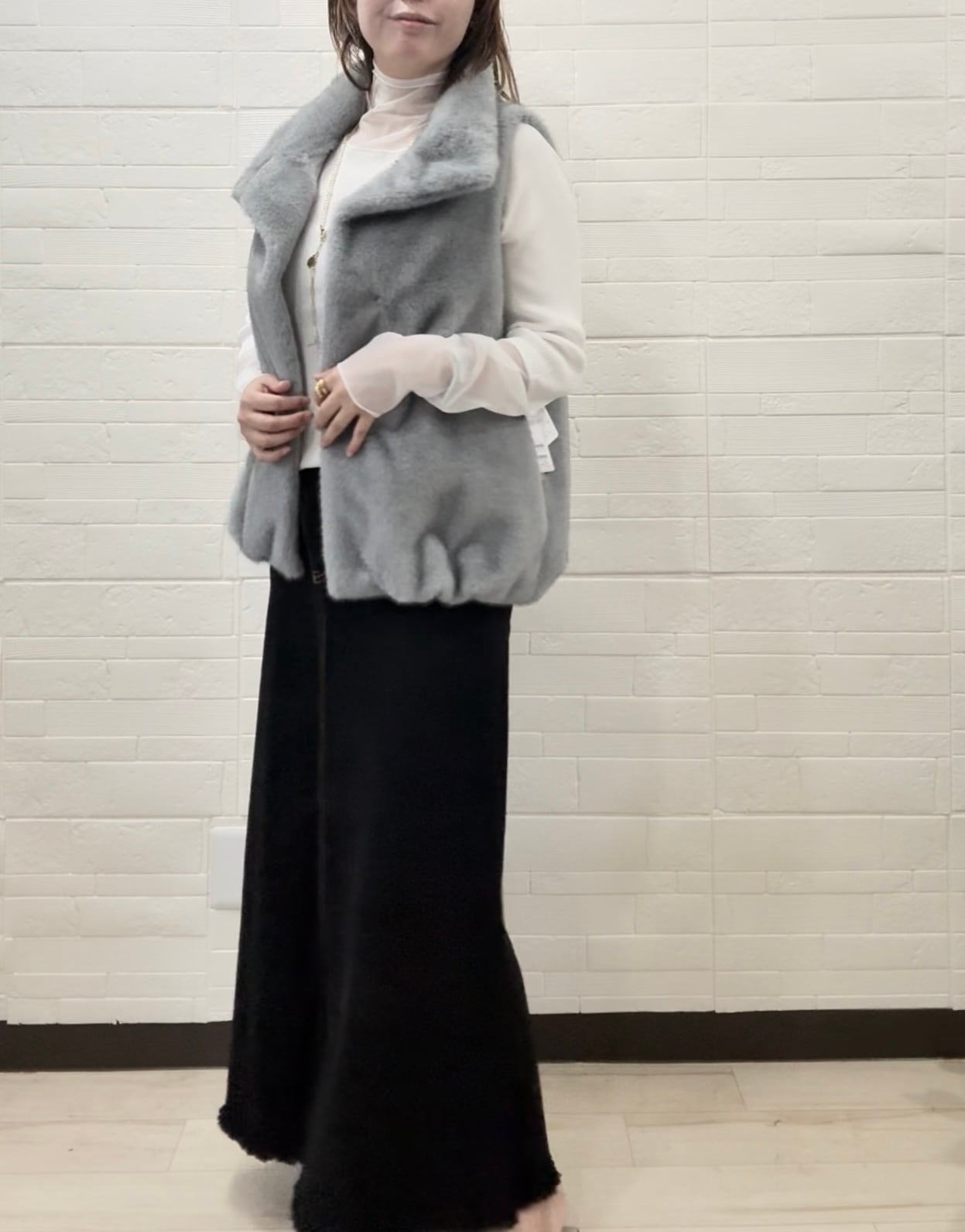 ●ミドル丈でヒップをすっぽり包んでくれる丈感です! 高級感あるミンク調エコファーが魅せる洗練された印象✨柔らかい手触りが特徴で、心地よい着用感を実現します。カラーバリエーションが可愛いく、特別感を演出できる一枚で、デニムパンツやスカートなど幅広いスタイルにマッチします✨また着用すると裾には少しバルーンの形が施しており可愛いアクセントポイントとなります✨