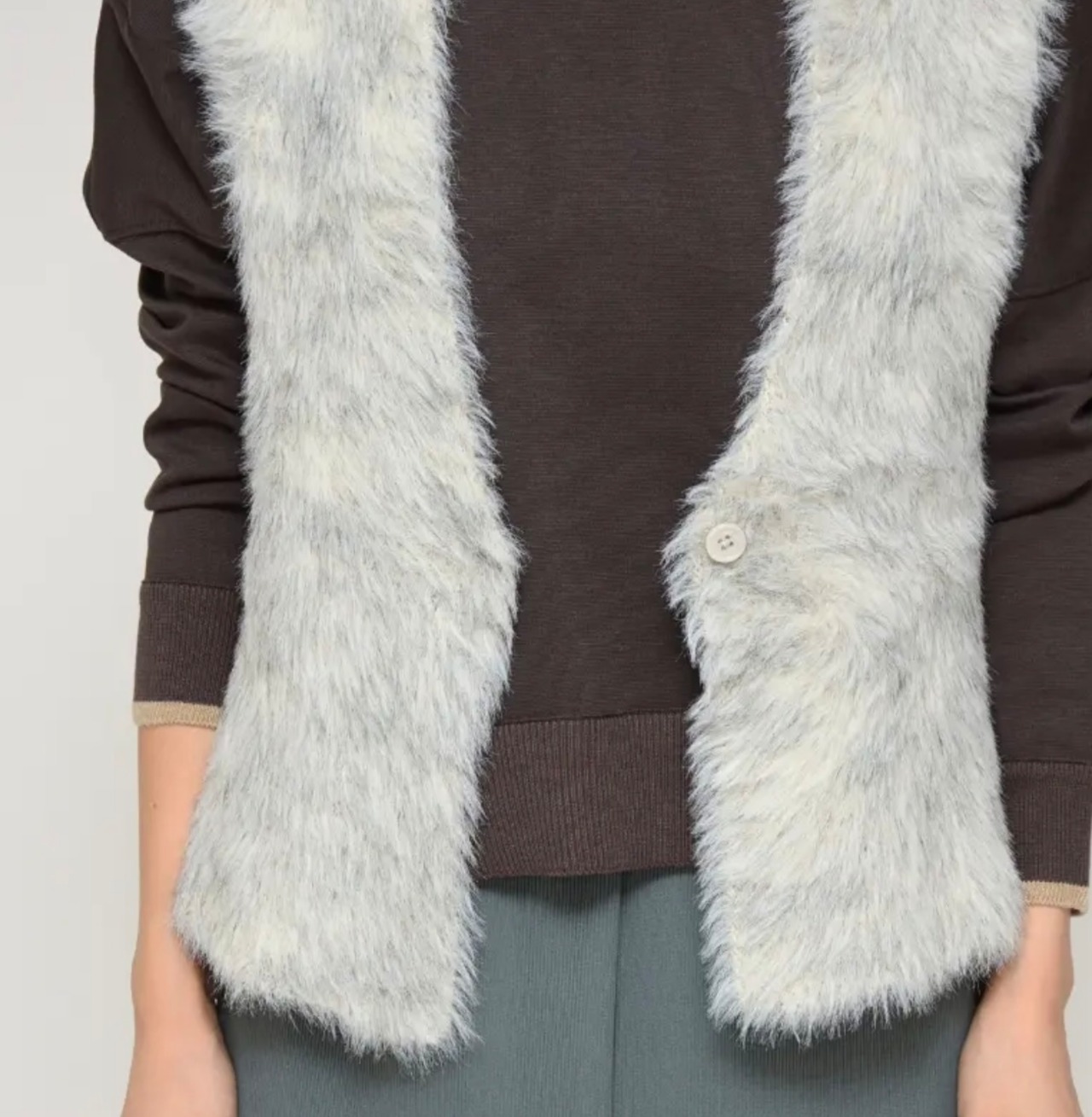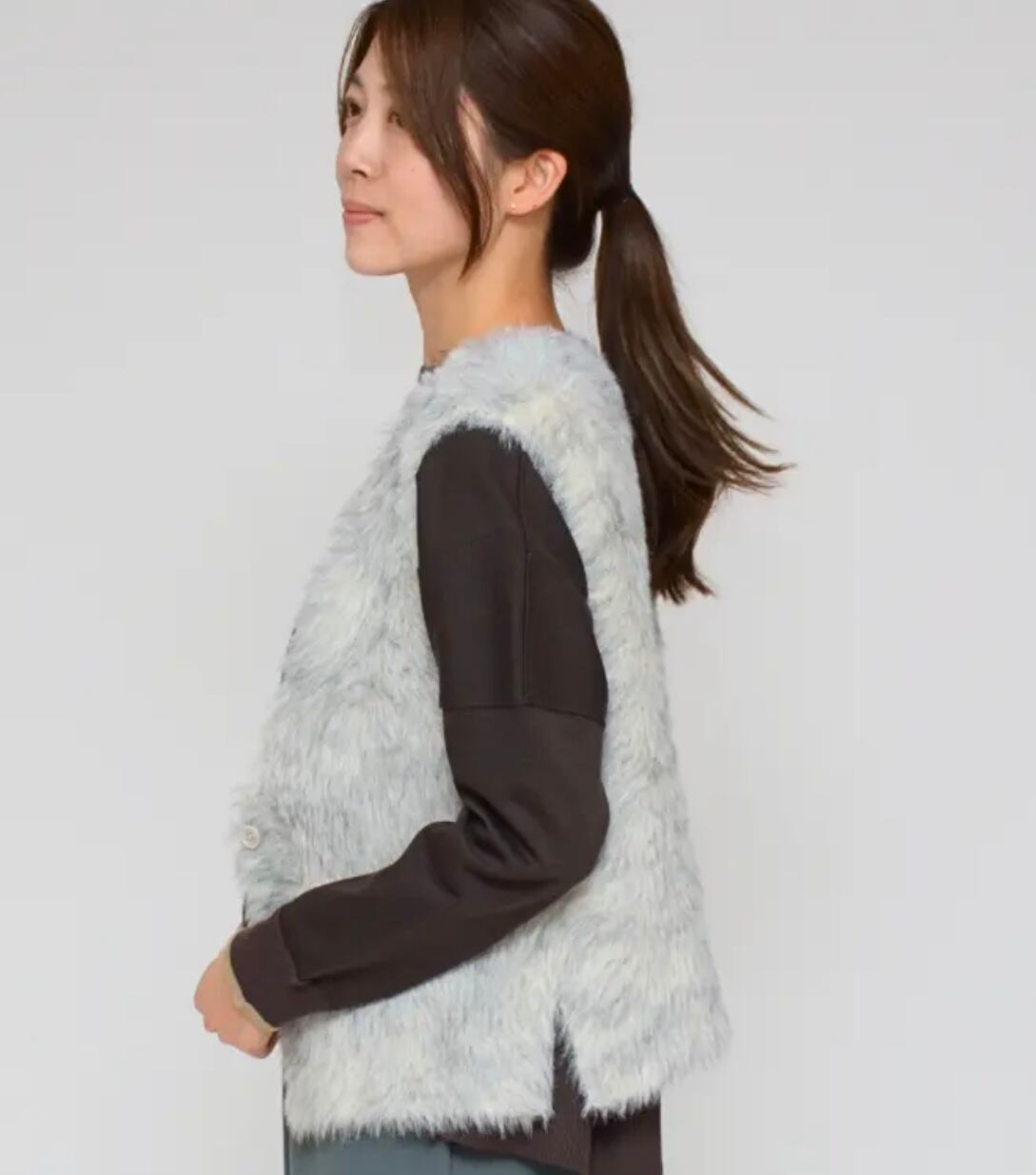 ● 見た目も着心地もふわふわで心地よい、フェザーモールニットベストが登場!柔らかな肌触りが自慢のフェザーモールとミックス素材を使用し、まるで空気をまとっているかのような超軽量なので、肩への負担が少なく、ストレスフリー。アームホールも広めの設計で、厚手のトップスにも楽に重ねられ、着膨れ感もしないのでアクセントにもぴったり!上からコートやジャケットを羽織ってももたつかず、スマートな着こなしが叶います。いつものコーディネートにプラスするだけで、ぐっと旬なスタイルに仕上がります。
