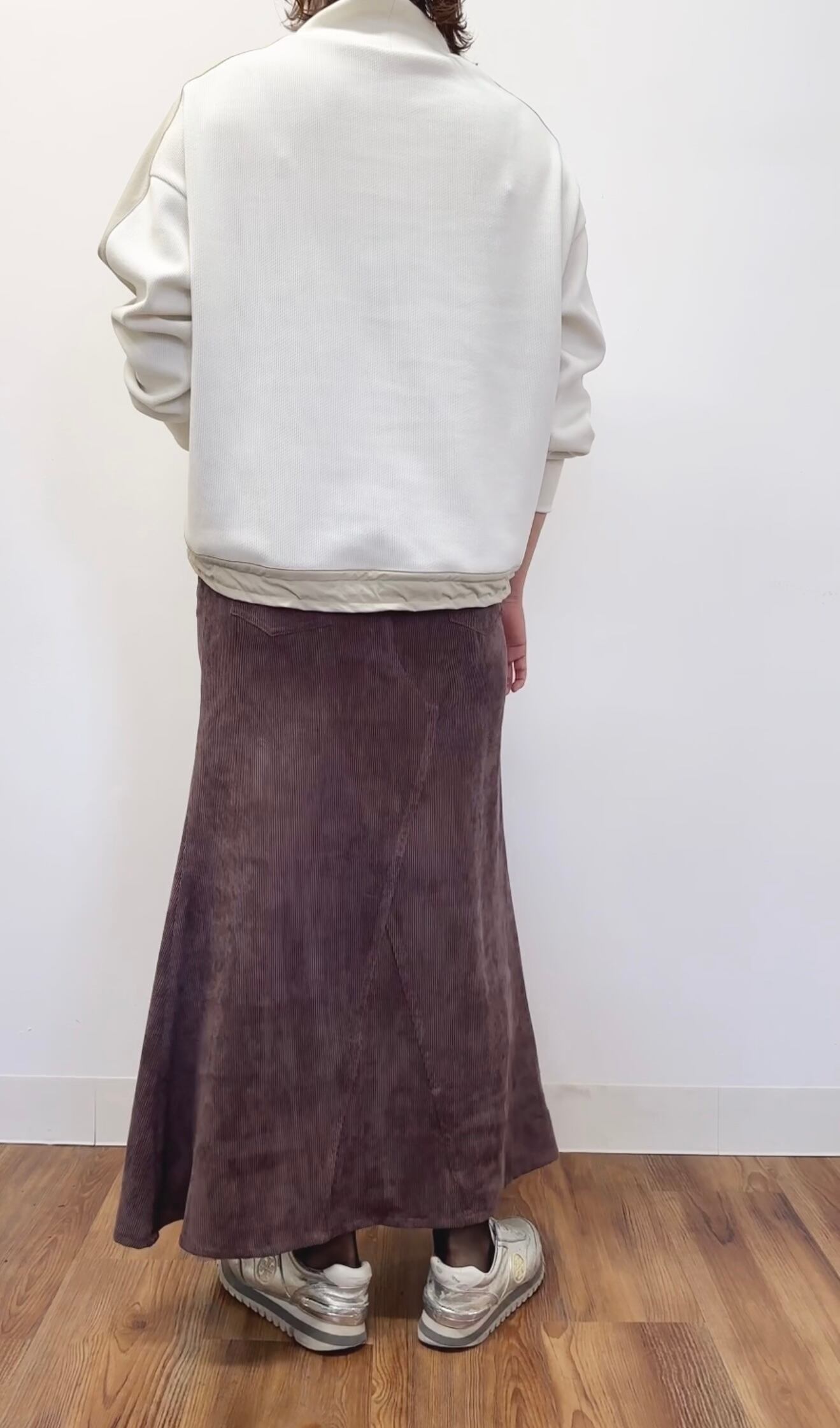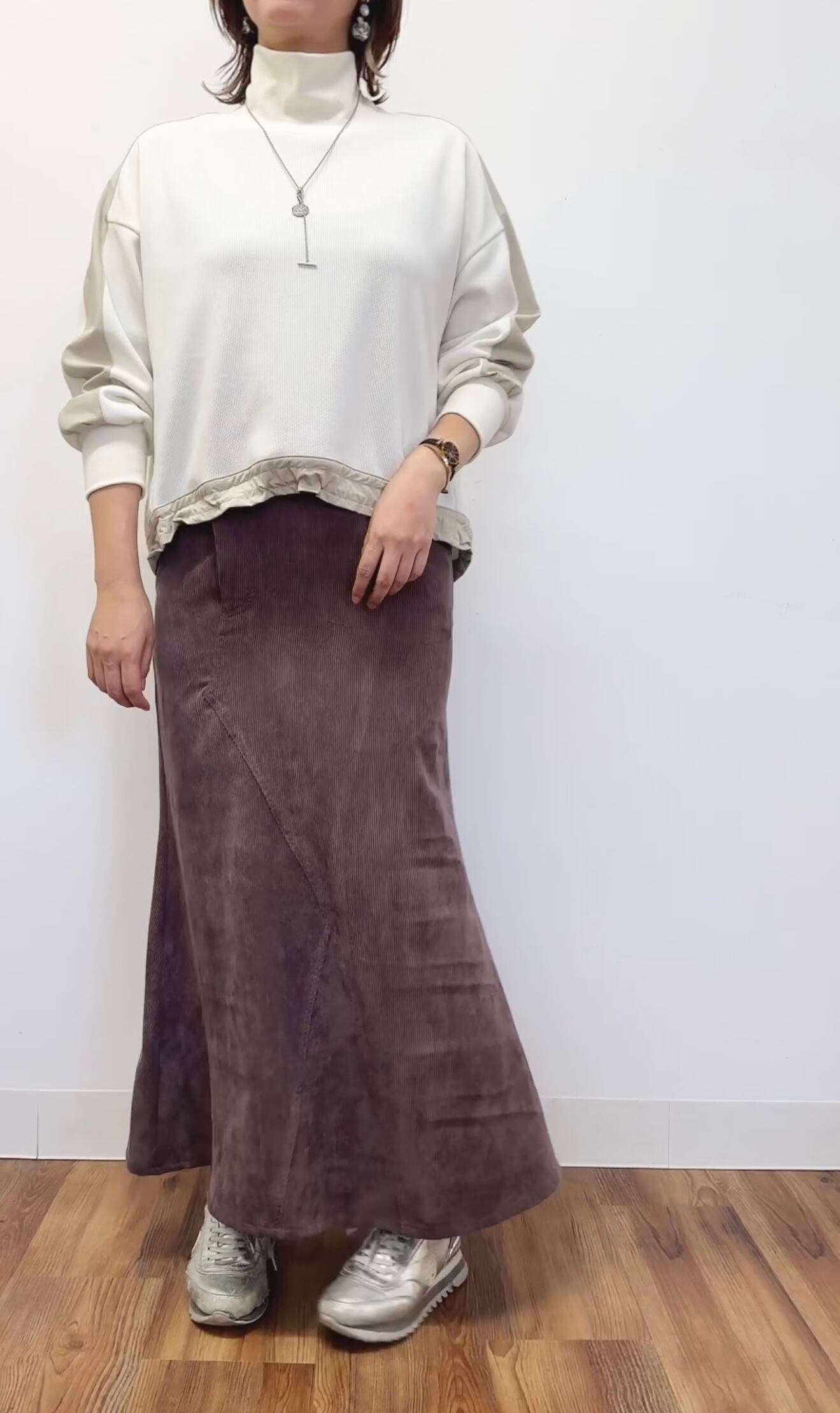 ●ウエスト部分が巻風の独特なアシンメトリーなデザインがシルエットを美しく見せ、メリハリのあるスタイルを実現します。しっかりながら軽いコーデュロイ素材は着心地もよく、上品な細コーデュロイが引立ちが華やかさをプラスします✨シンプルでありながら、存在感のある一枚です。カジュアルからお出かけまで、幅広いシーンで活躍するアイテムです。