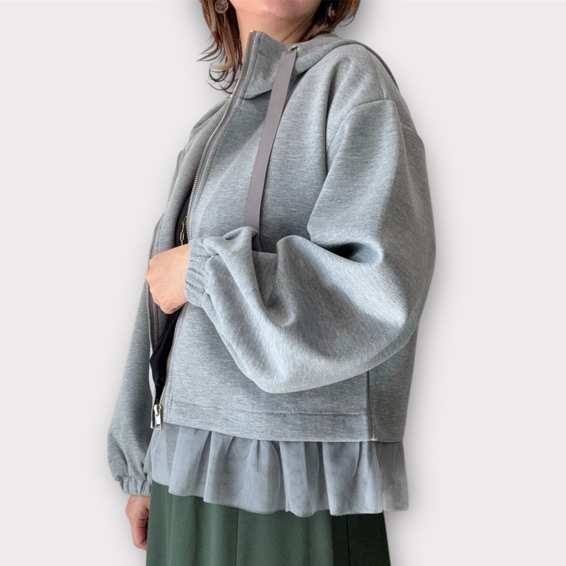 ● 裾に施されたチュールが魅力的な裾チュールパーカーは、チュール部分が女性らしさを引き立て、カジュアルな中にも特別感をプラス✨フード付きで実用性も高く、デイリースタイルにはもちろん、ちょっとしたお出かけにもぴったりなアイテムです✨ ソフトボンディング素材でツルンとした柔らかな肌触りの素材が心地よく、気軽に羽織ることができます。