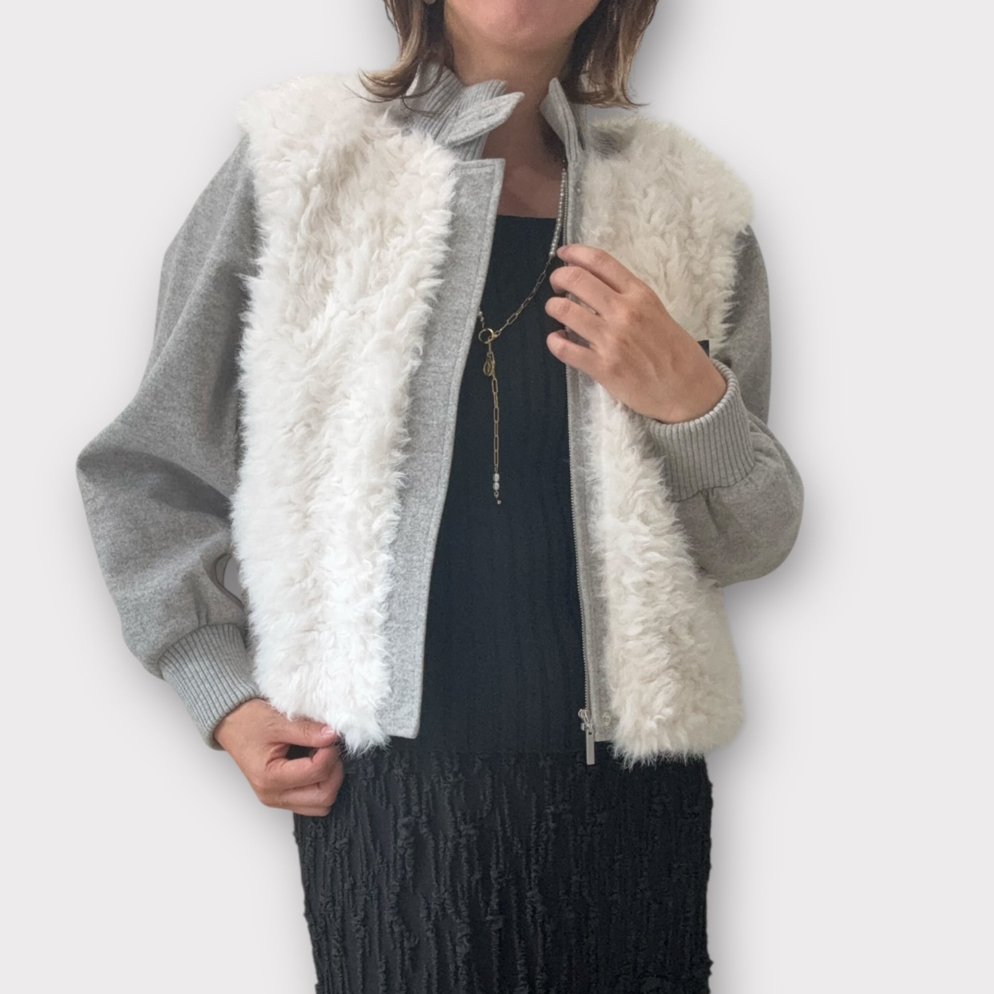 ● ボアが組み合わさったドッキングブルゾンは、暖かさとスタイリッシュさを兼ね備えた一着です!ボア部分はふんわりとした柔らかさで、寒い季節でも快適に着用できます。その他の表地はコートライクなしっかりとした素材感で、女性らしいシルエットを引き立てるデザインが魅力✨裏地付きで防寒性も高く、カジュアルなデイリースタイルからお出かけまで幅広く活躍するアイテムです。軽やかな着心地ながら、ボア部分のボリューム感で存在感も抜群です。