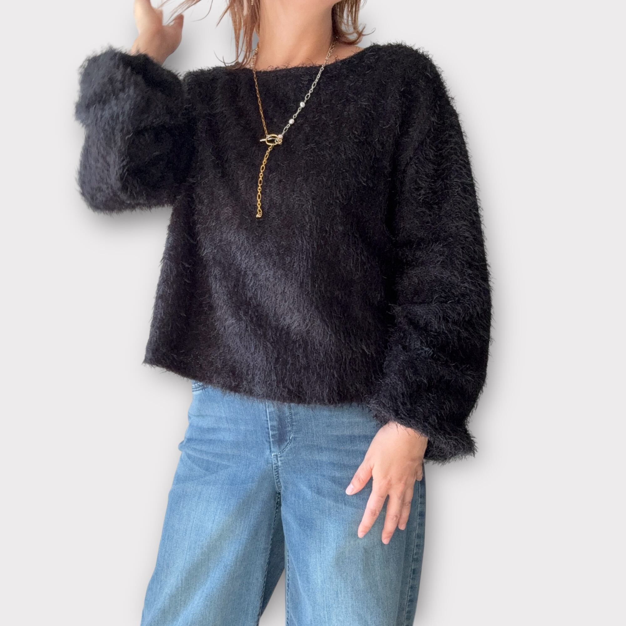● シャギー素材を使用したプルオーバーは、ふわふわとした触り心地が癖になる一着です!優れた保温性を兼ね備えつつ、軽やかな着心地でデイリーウェアに最適✨シンプルなデザインだからこそ、コーディネートの幅が広がり、カジュアルから少しお出かけまで幅広く活用できるアイテムです。リラックスしたシルエットは、全体を柔らかい雰囲気にまとめ、心地よい着用感を提供します。