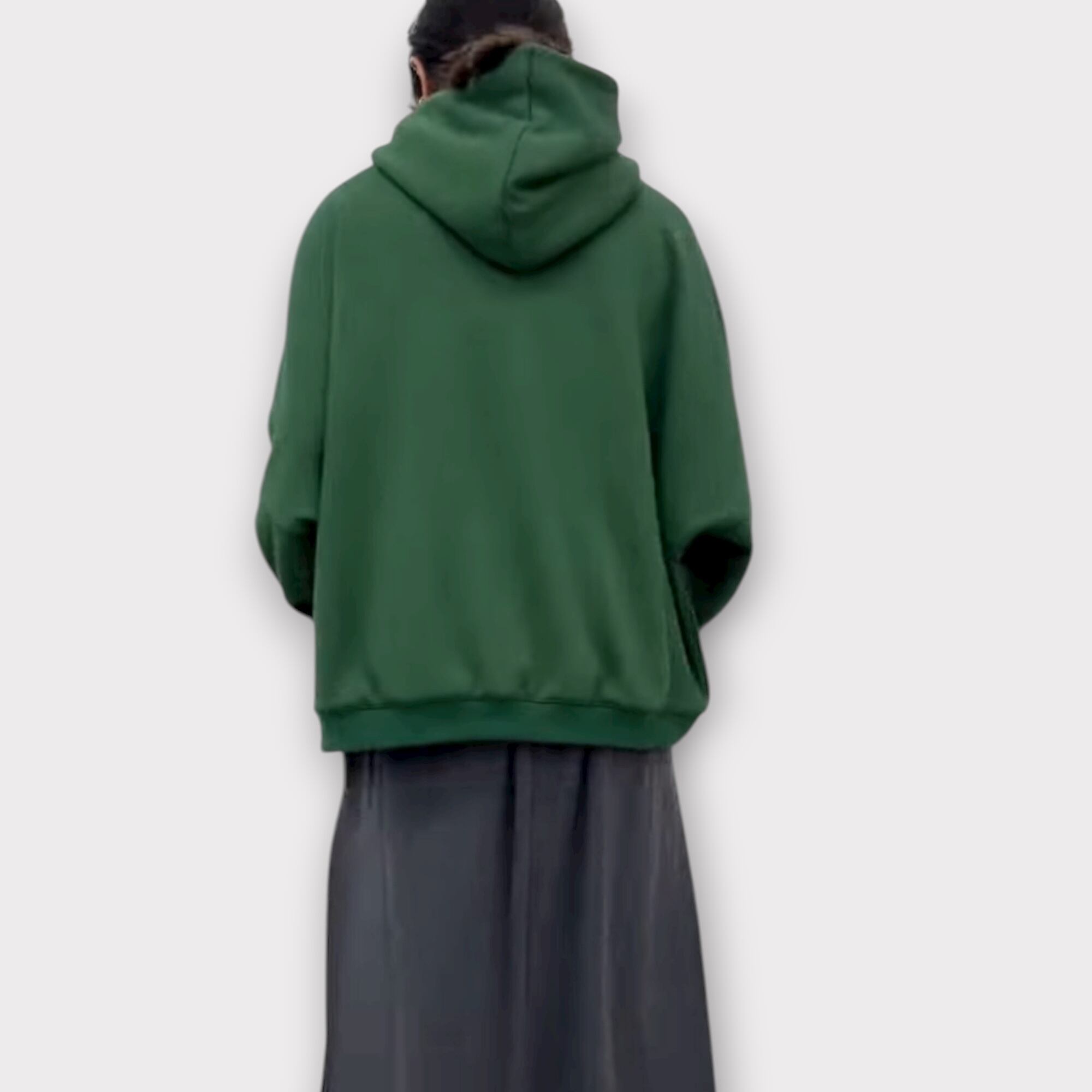 ● 寒い季節にぴったりな裏起毛パーカーは、心地よい暖かさを提供します✨柔らかな裏起毛素材を使用しており、着心地は抜群!デイリーコーディネートに欠かせないアイテムで、オーバーサイズぎみでしっかり身幅があるのでリラックスしたい日にもおすすめです。ゆったりとしたシルエットで、微起毛なので重ね着もしやすく、落ち感もある素材感で着膨れ感もなく、アクティブなシーンでも動きやすさをキープします。