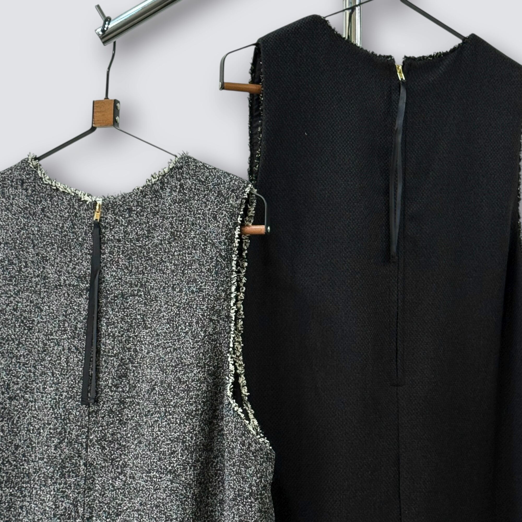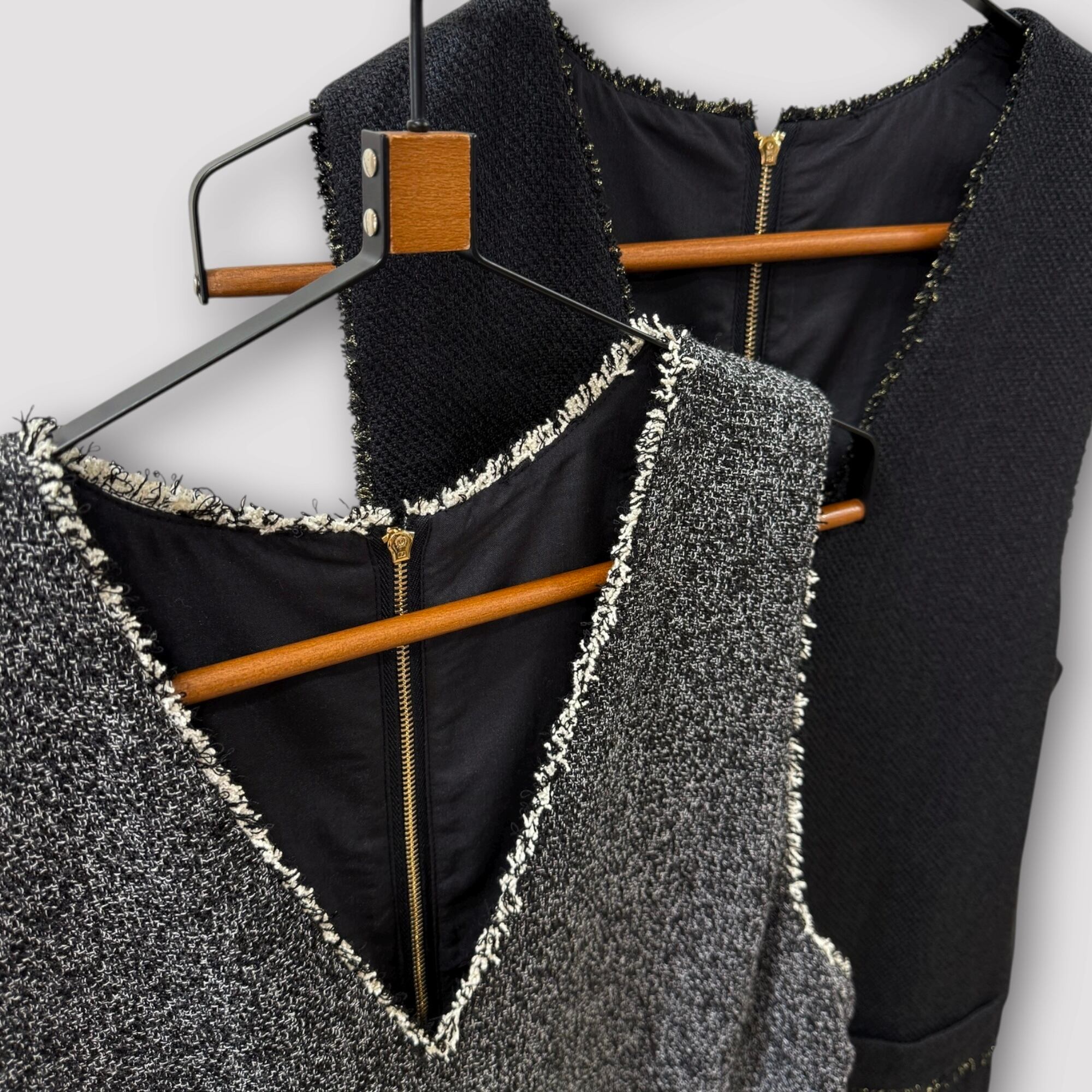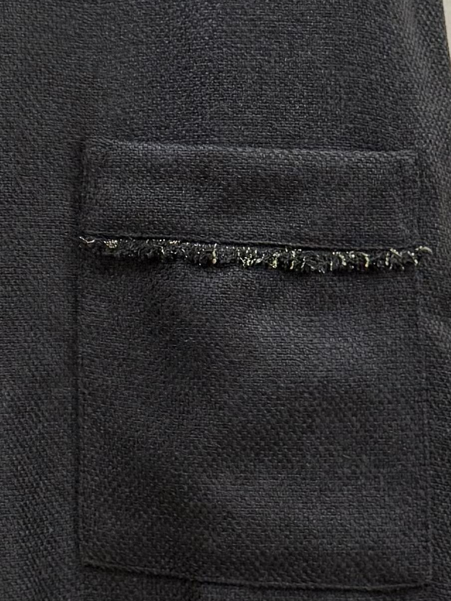 ● シンプルでありながら洗練されたデザインが魅力のアイテムです✨上質な密な混合素材を使用しており、肌触りが良く、長時間の着用でも快適さを保ちます。裏地付きなのでインナーにニットも着やすくなってます。ツイードにフリンジをあしらってるのも特徴的で、シックな印象を与えつつも、カジュアルにも合わせやすいのが嬉しいポイントです。リラックスしたい日やお出かけの際にもぴったり。インナーに合わせることで、様々なスタイルをお楽しみいただけます!