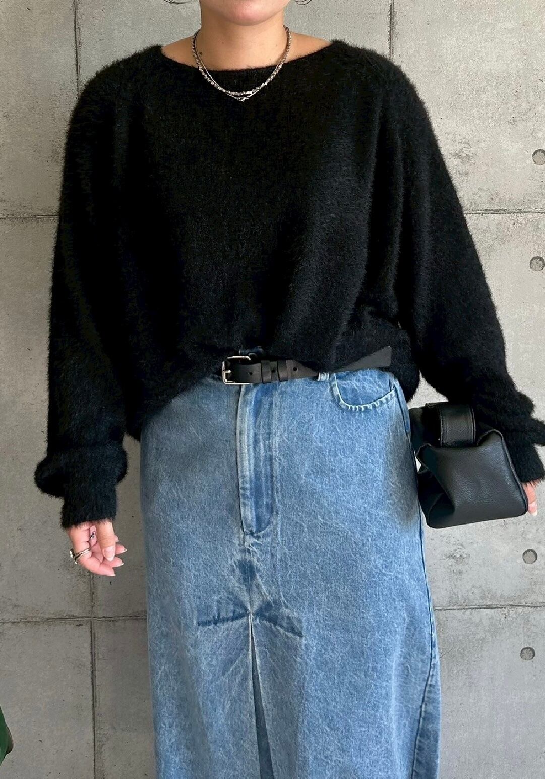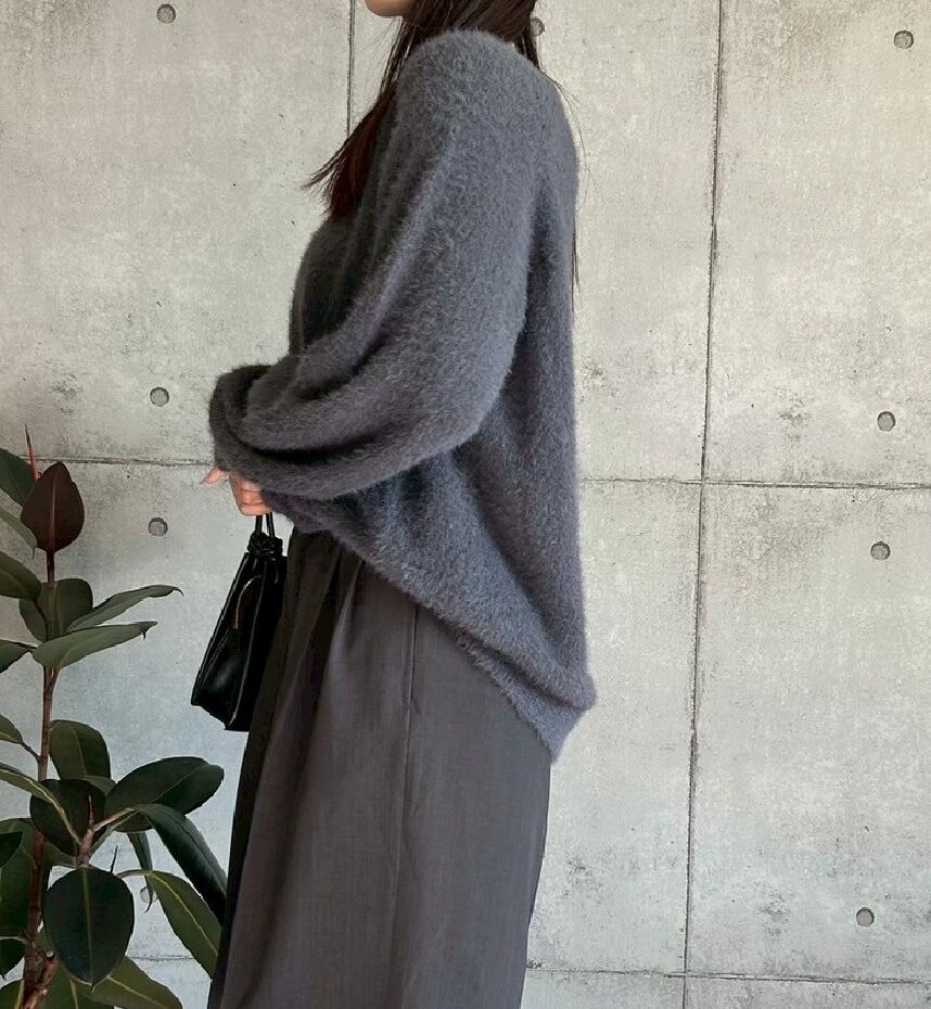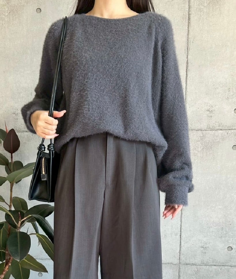 ● 人気のシャギーニットが今年もアップデートして登場。今までのバックロゴ刺繍の字体とは変わり、エレガントな字体にすることでさらに上品な雰囲気になっています。着丈もヒップが隠れる長さあるデザインが落しいポイント。天中も広めにお作りしているので鎖骨が見え女性らしい着こなしが叶います。バックロゴは同色にすることでカジュアルすぎない雰囲気に。