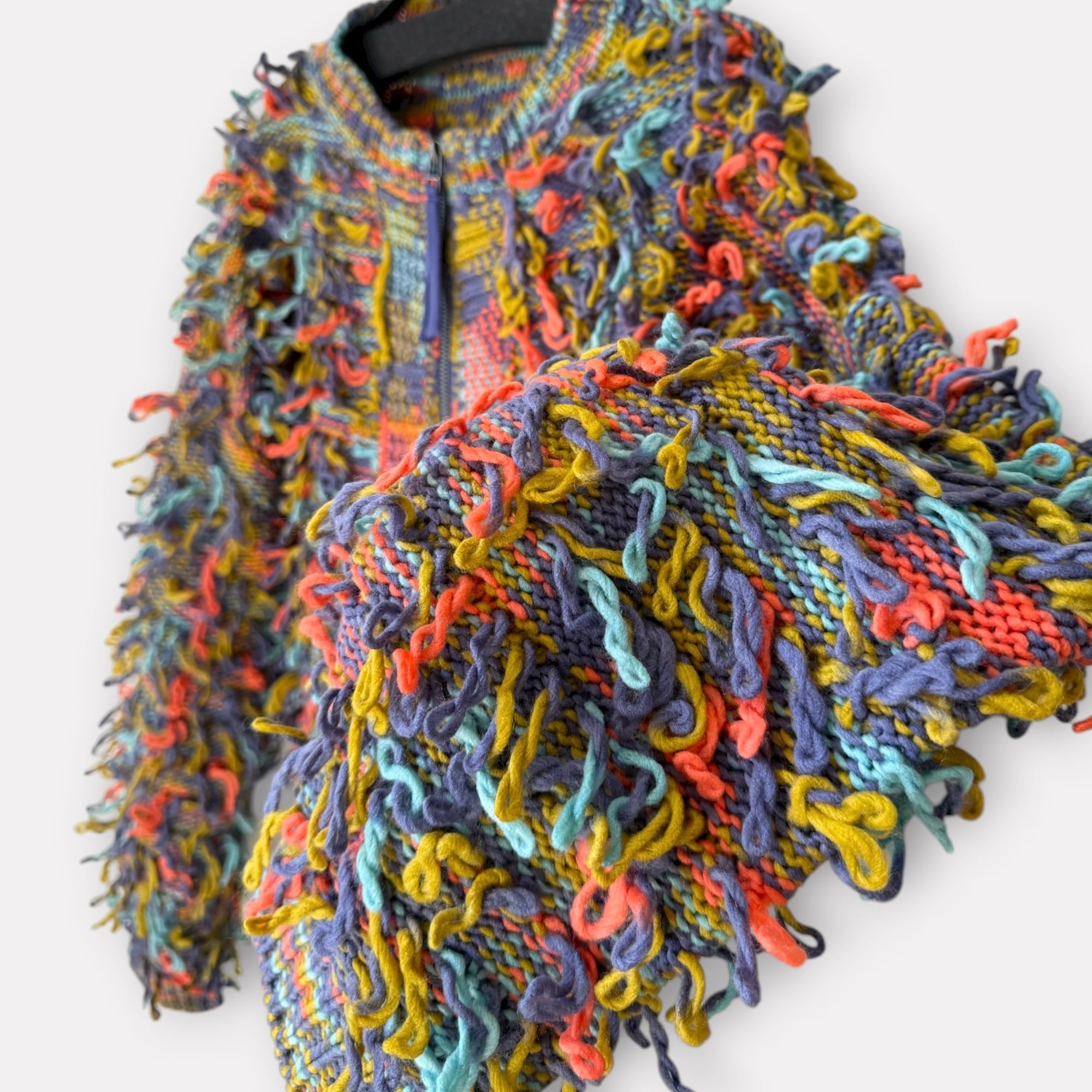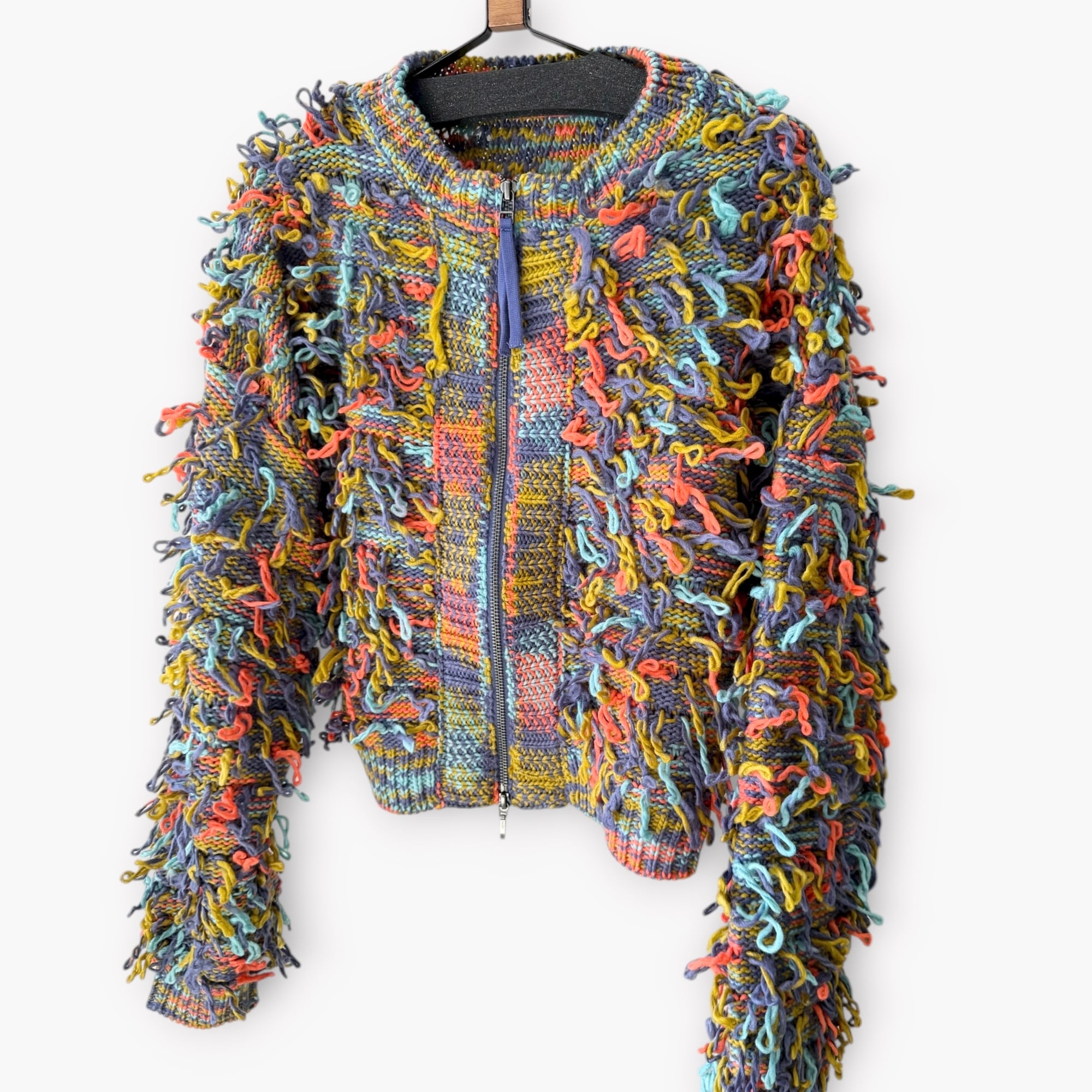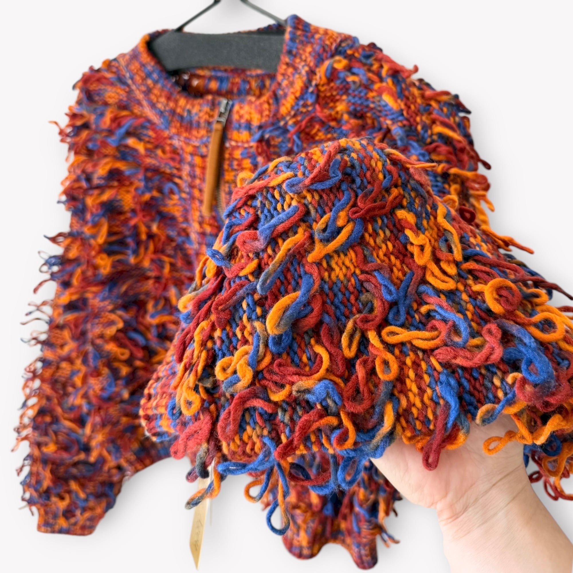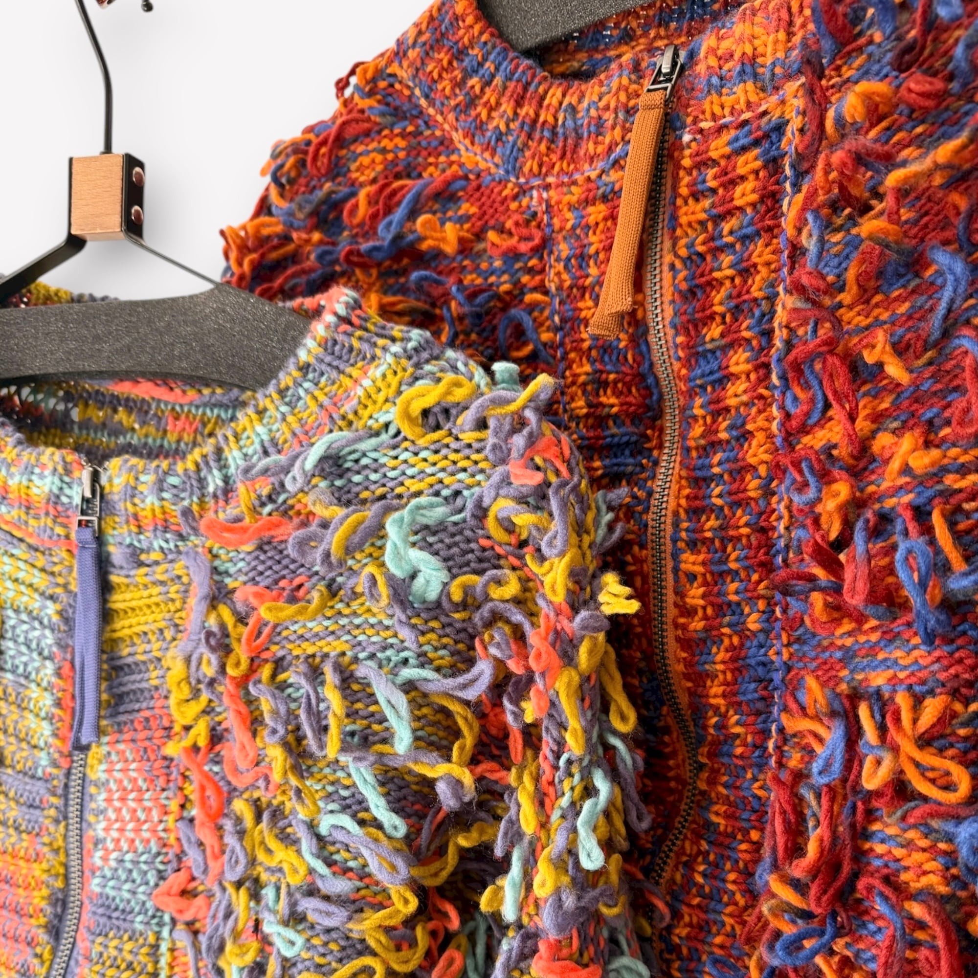 ● Mixカラーニットループジップカーデは、カラフルなデザインが特徴的なアイテムです✨柔らかなアクリル素材が優しい肌触りを提供し、温かさを実現しました。ジップデザインは着脱がスムーズで、カジュアルなスタイルにもぴったり。凹凸感あるループがとても可愛いデザインです✨これ一着でシンプルなコーディネートに華やかさをプラスできます。人と被らず普段使いからお出かけまで幅広く活躍します✨