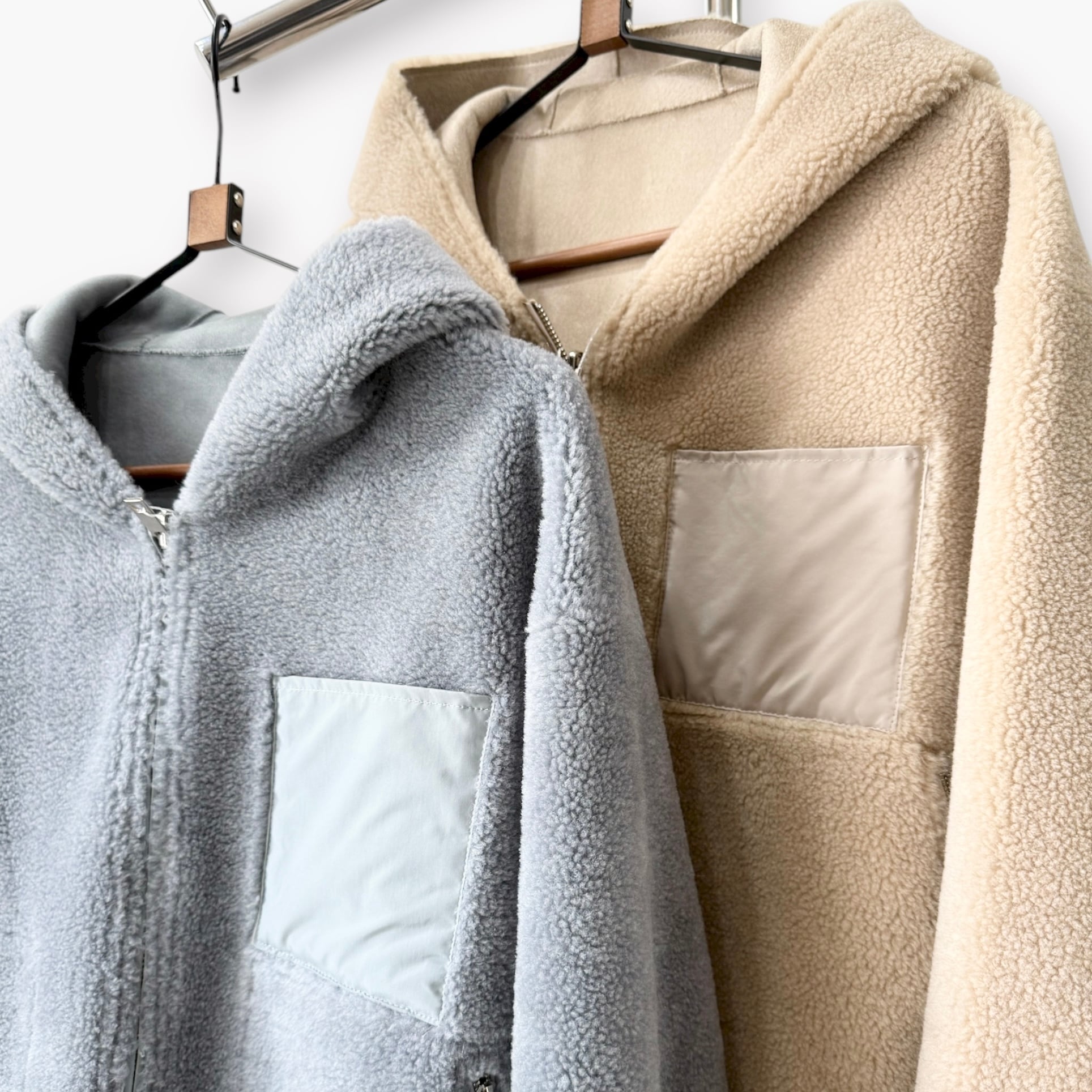 ● ボアフードジャケットは、ふわふわのボア素材が心地よい暖かさを提供し、裏側のフェイクムートンは風を遠さず保温性が高いです✨非常に軽量で作りられているので着心地も抜群でアウター独特の重さが感じずリラックスしてオシャレを楽しめます✨