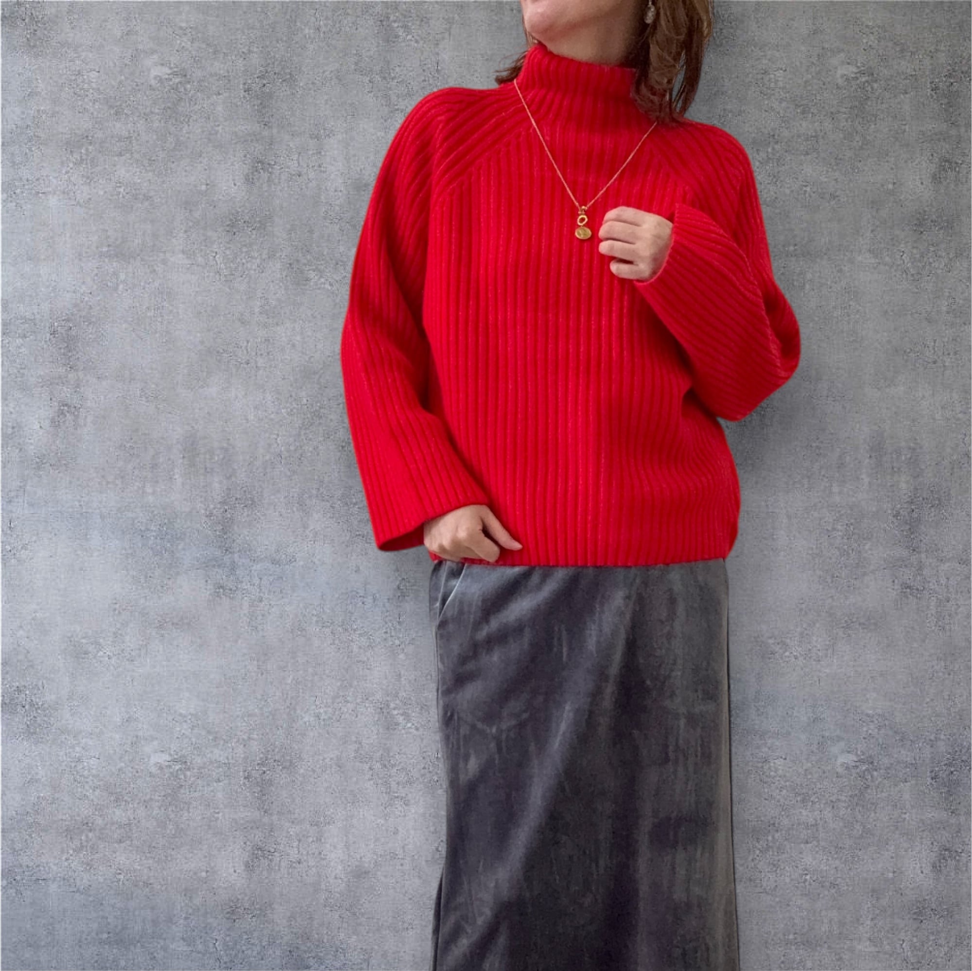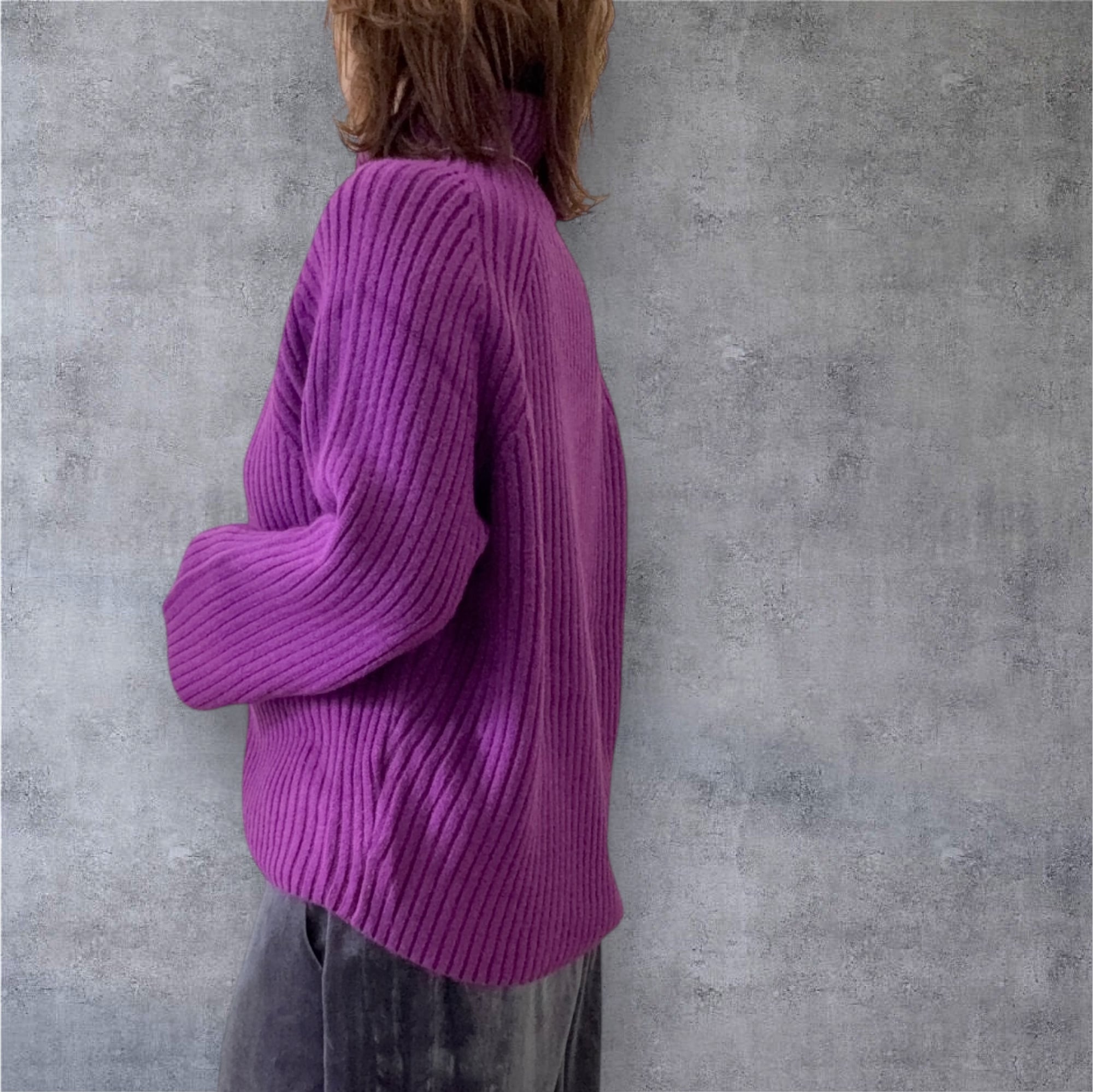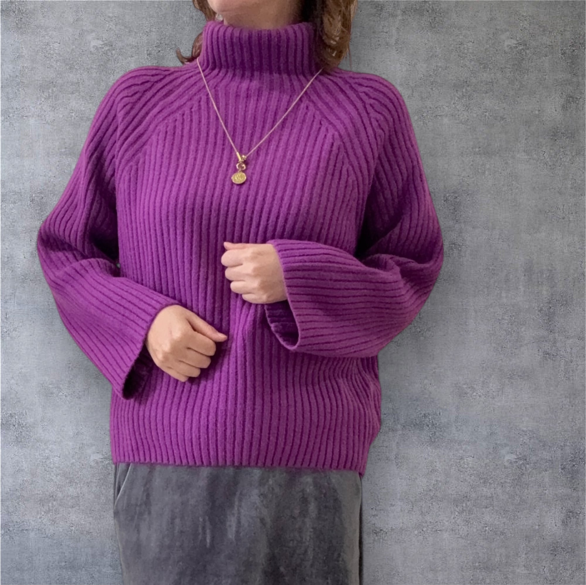 ● 心地よい肌触りで、リラックスしたい日にもピッタリです。ゆとりあるシルエットに程よい太さのリブが大人可愛いです。首周りはフィットしないサイズ感となっておりご自身の首の長さやスタイリングにより、内側に折り込み長さをご調整して頂けるようになってます✨