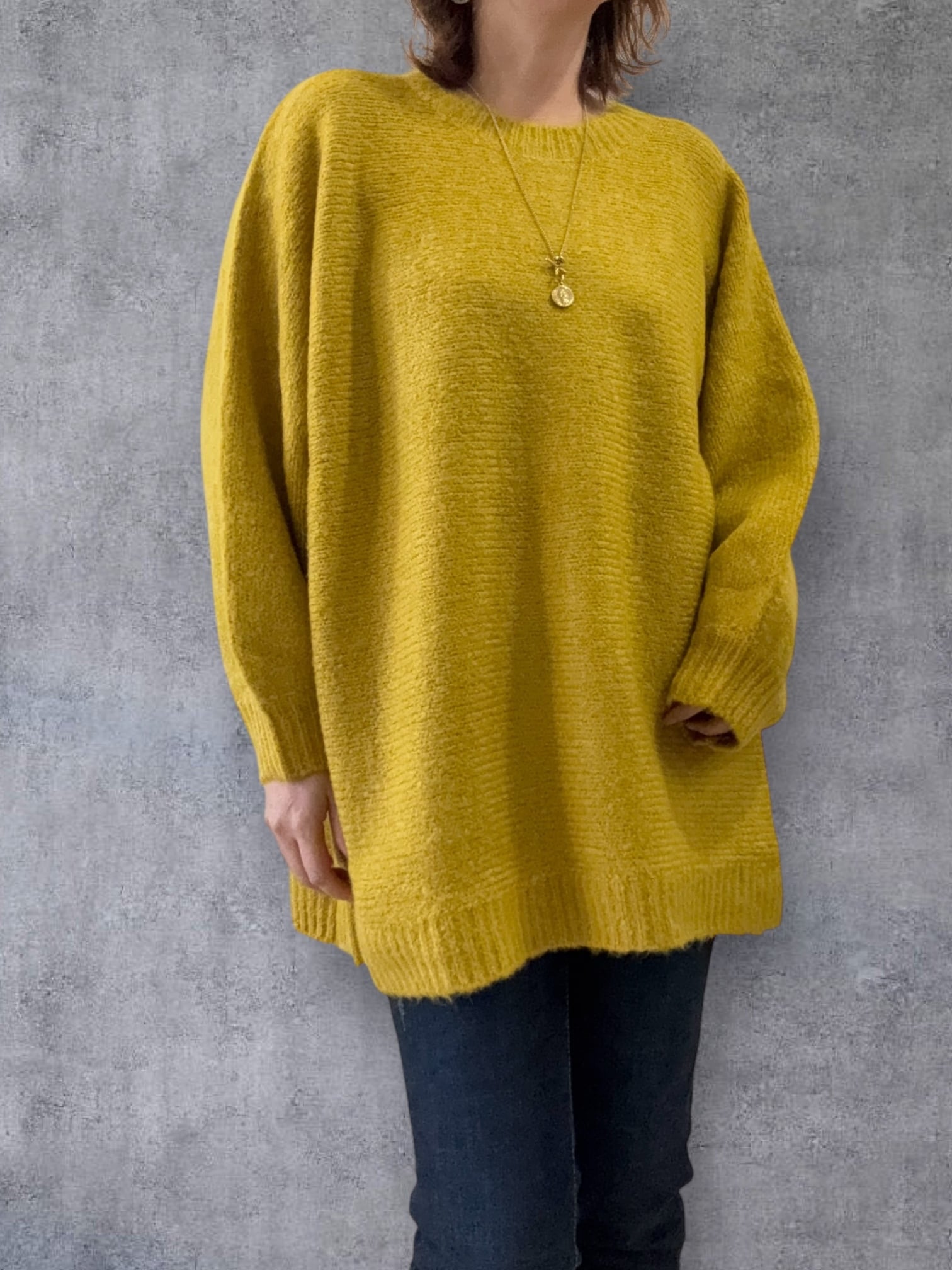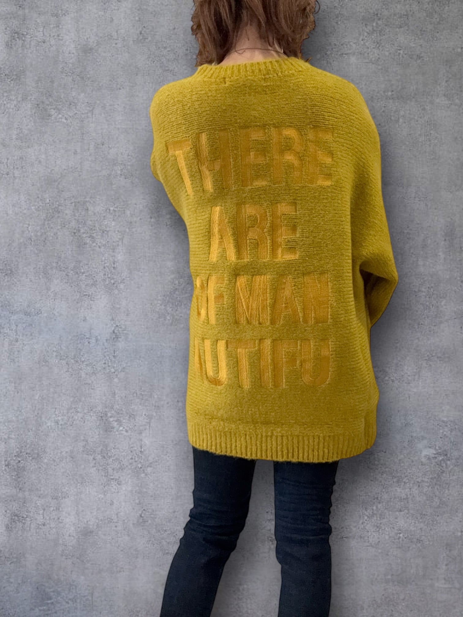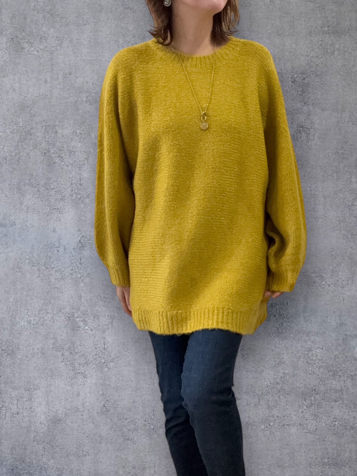 ● 心地よい厚みニットで、リラックスしたい日にもピッタリです。ゆとりあるシルエットにバックロゴが可愛いポイントのニットです✨ヒップがすっぽり隠れる着丈なので温かくラクに過ごして頂けます✨