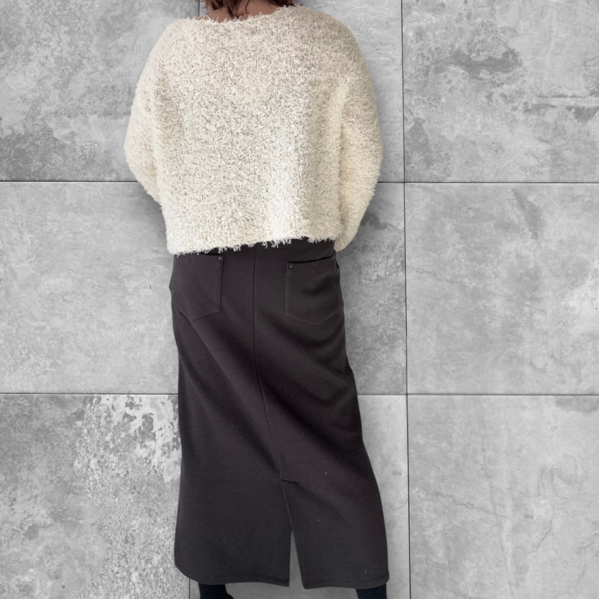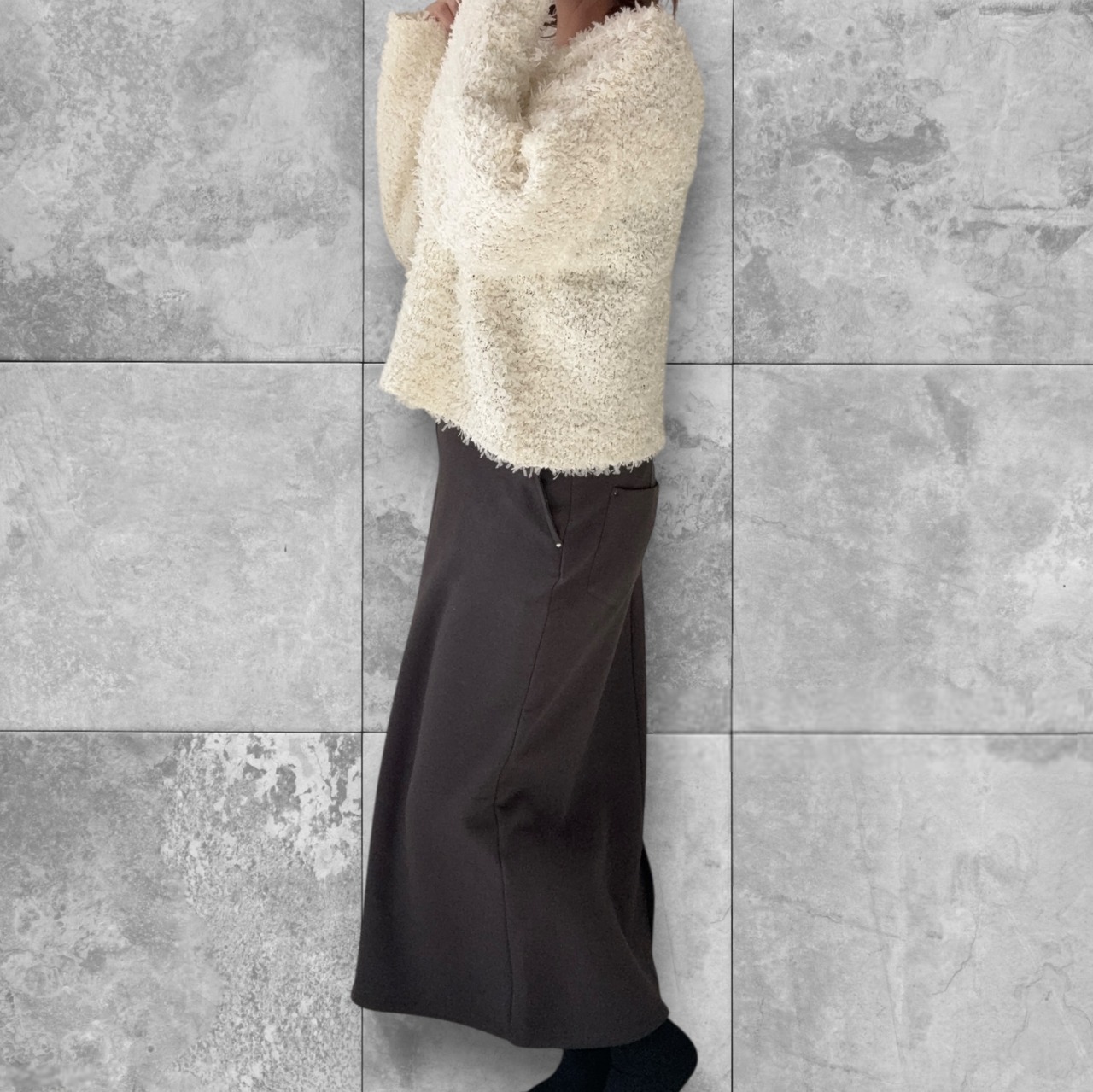 ● 裏起毛タイトスカートは、温かみのある裏起毛素材が特徴の一枚です!肌に優しく、しっかりとしたフィット感を持ちながらも、ストレッチ抜群で動きやすさを兼ね備えています♪チャコールグレーの落ち着いた色合いは、どんなトップスとも合わせやすく、デイリー幅広いシーンで活躍するアイテムです。スタイリッシュでありながら、リラックスした雰囲気を演出できるため、大人の女性にぴったりの一着です!