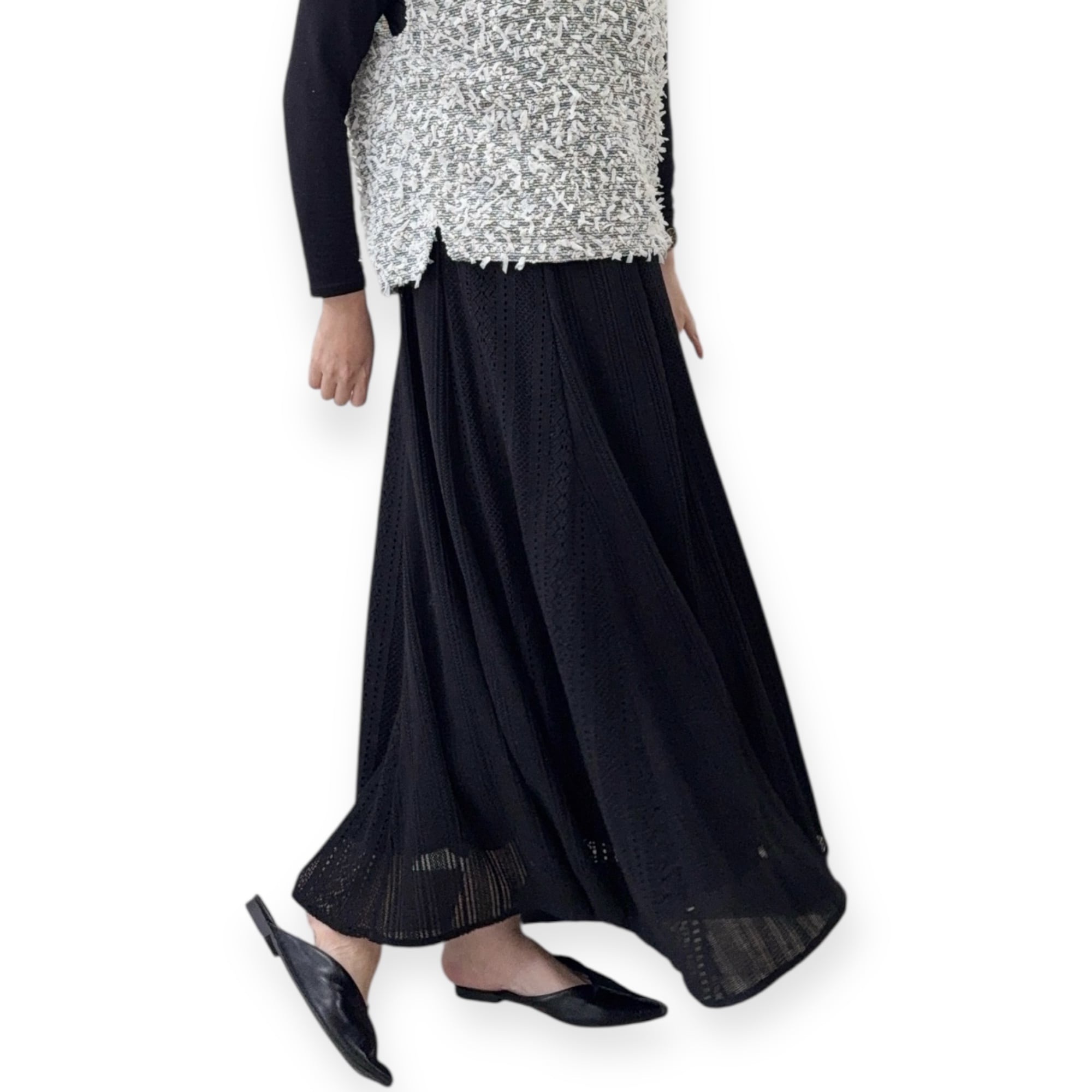 ●ラッセルストライプ柄が特長的で、シンプルながらも個性を引き立てるデザインが魅力。柔らかいポリエステルと綿混合の素材で肌触りは抜群、通気性も良く、快適な着心地を実現します。春から夏にかけてのデイリースタイルにぴったりで、様々なトップスと合わせやすいアイテムです。