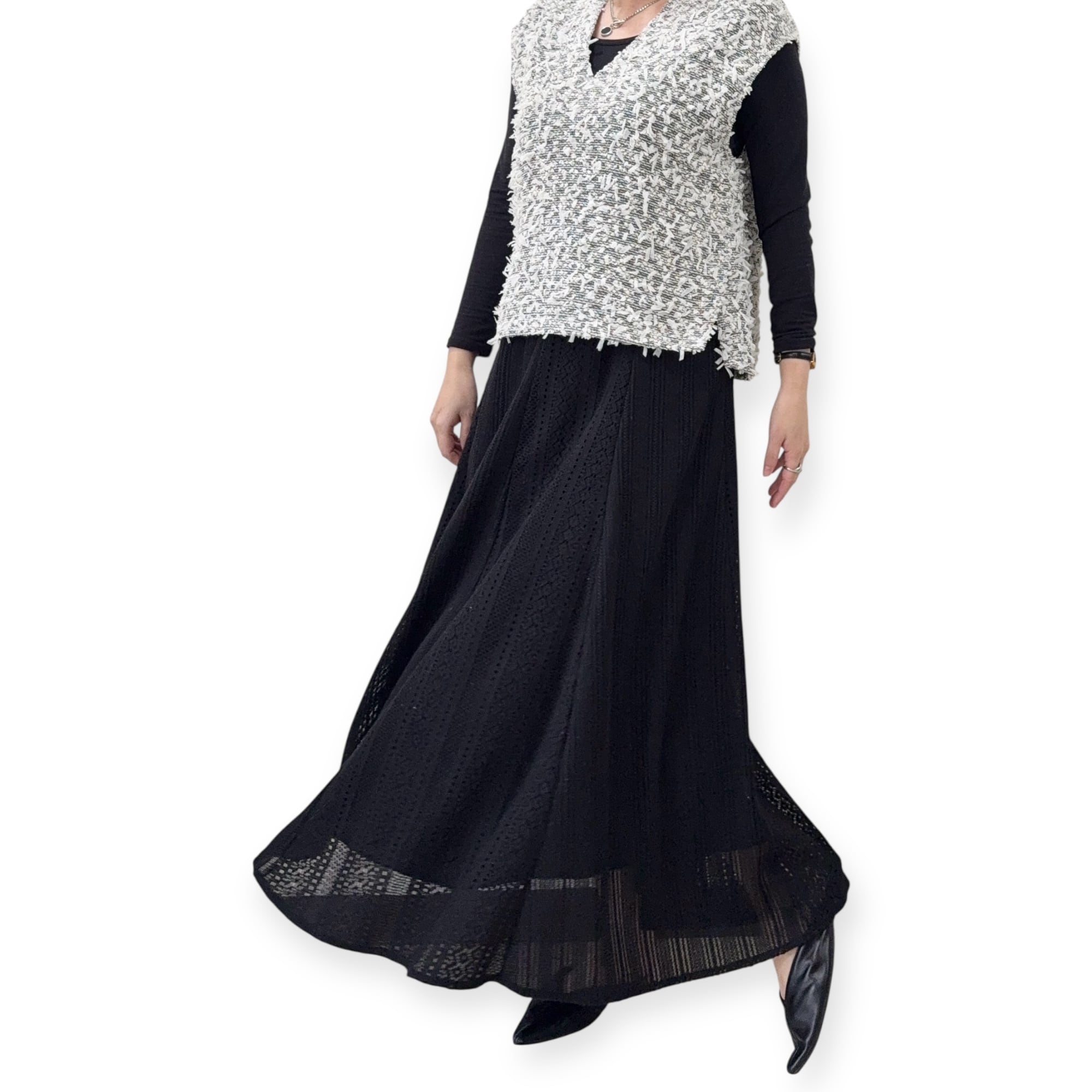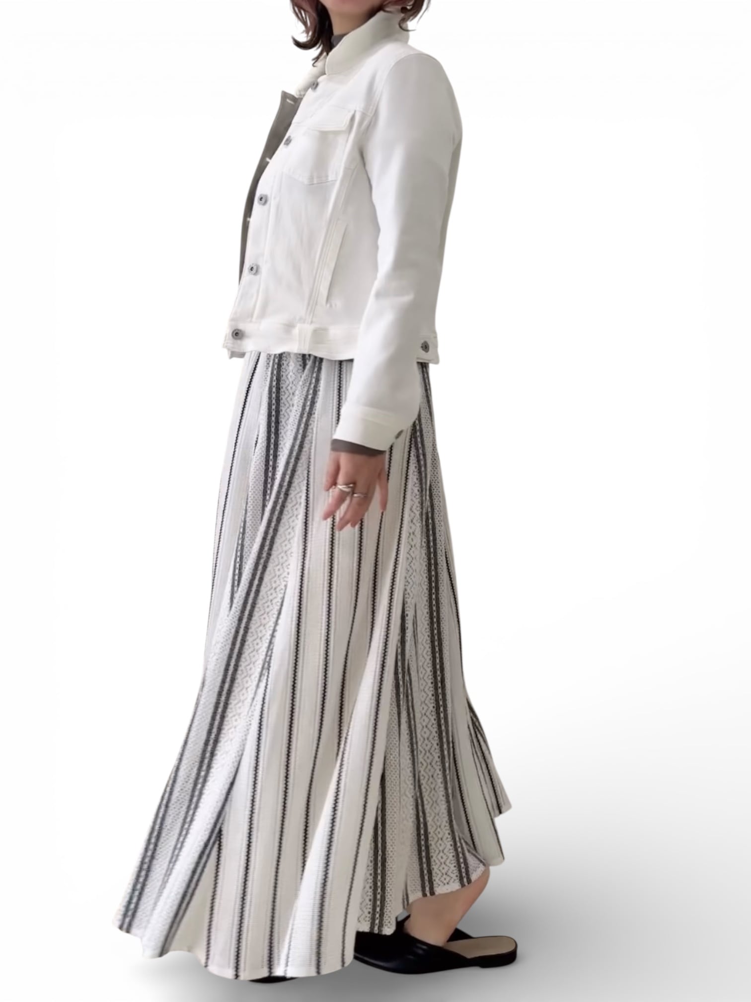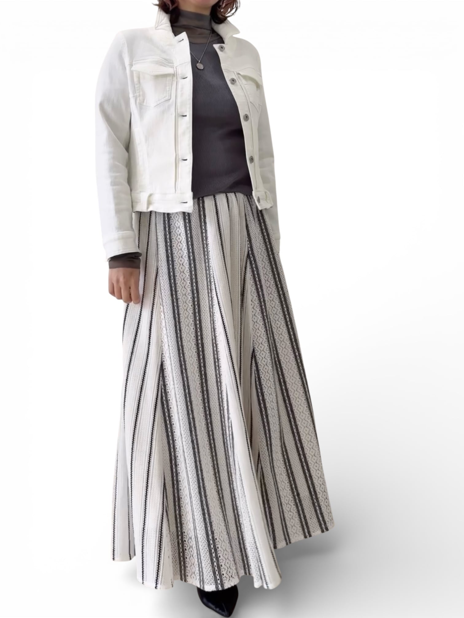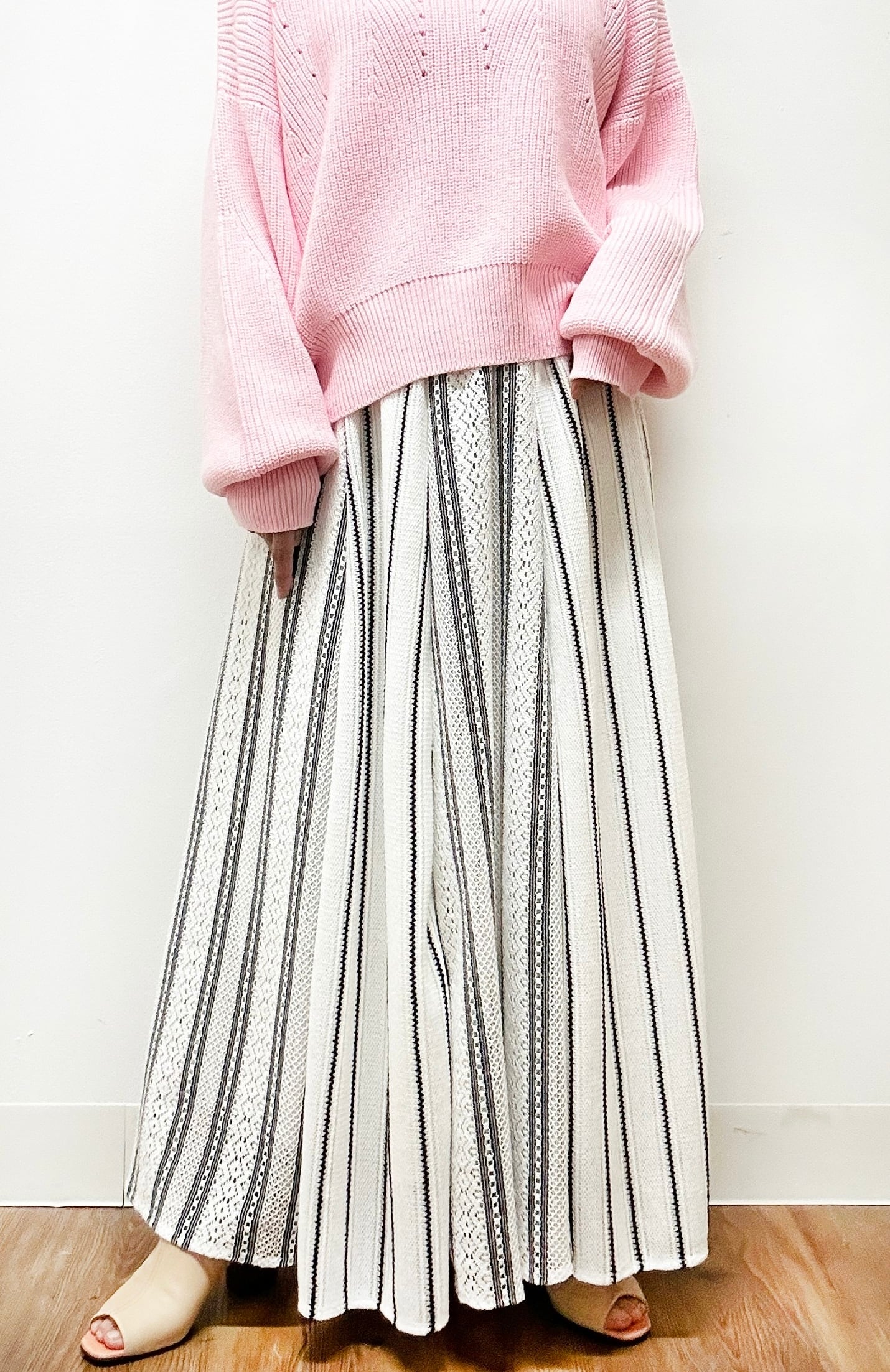 ラッセルストライプ柄組み合わせロングスカート