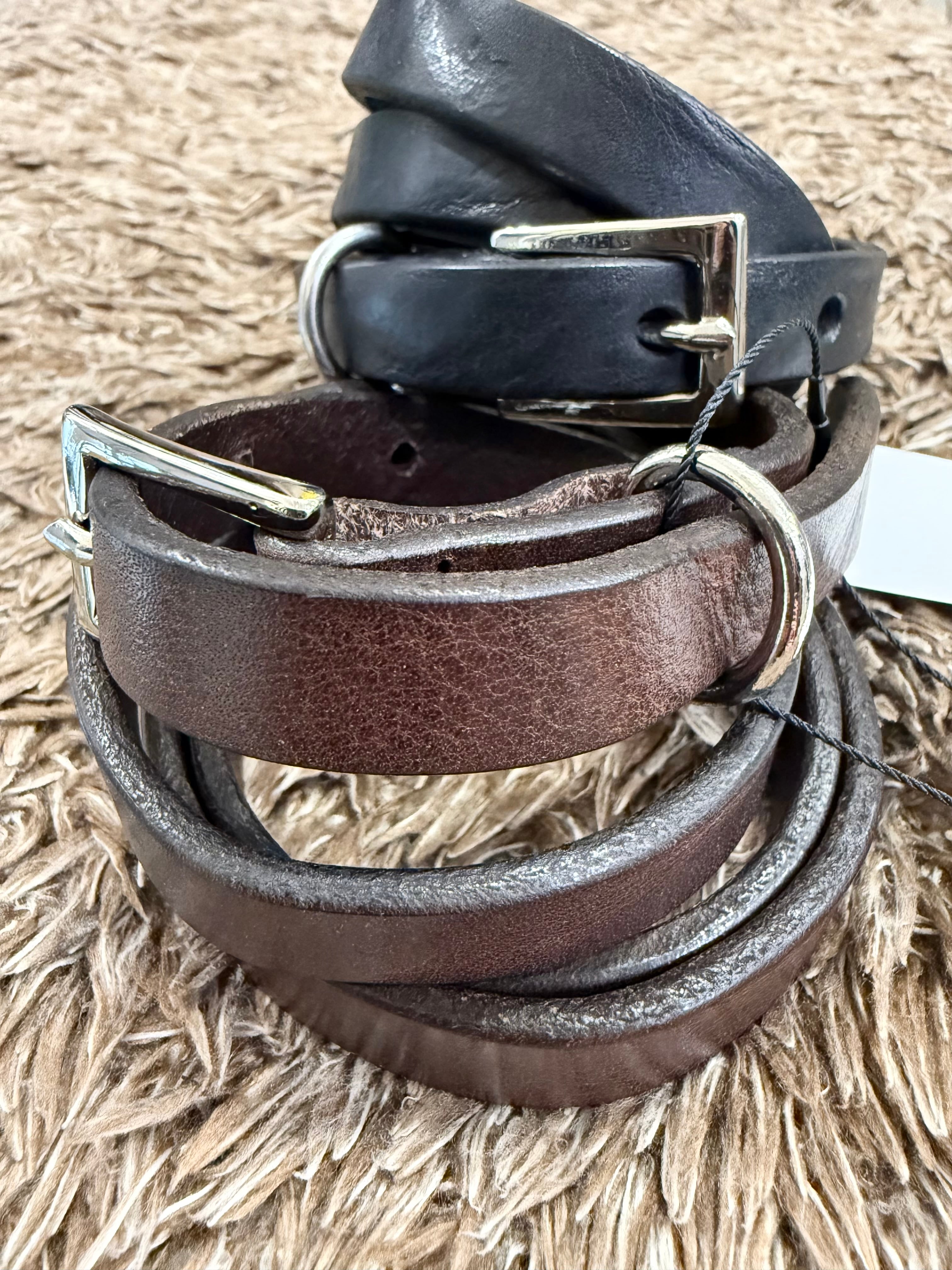 ● 上質で滑らかなイタリアンレザーを使用し、細めのデザインが非常にスタイリッシュです✨使用するたびに味わいが増す革の風合いが魅力。細めのデザインはキレイめコーデを引き立て、着こなしのアクセントとしても活躍します。またバッグルがシンプル尚且つオシャレ感の出るスクエアとラウンドの組み合わせとなっておりシンプルの中でもオシャレ感が際立ちます。定番のベルトとして一つ持っておきたいベルトです。店舗で定番として置いてる中ご好評につき在庫追加してオンラインStoreにも登場です。