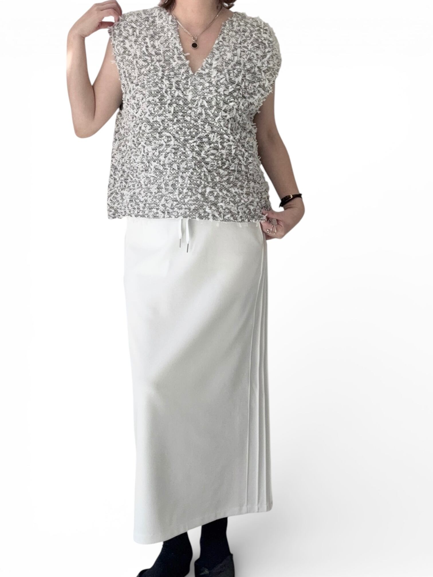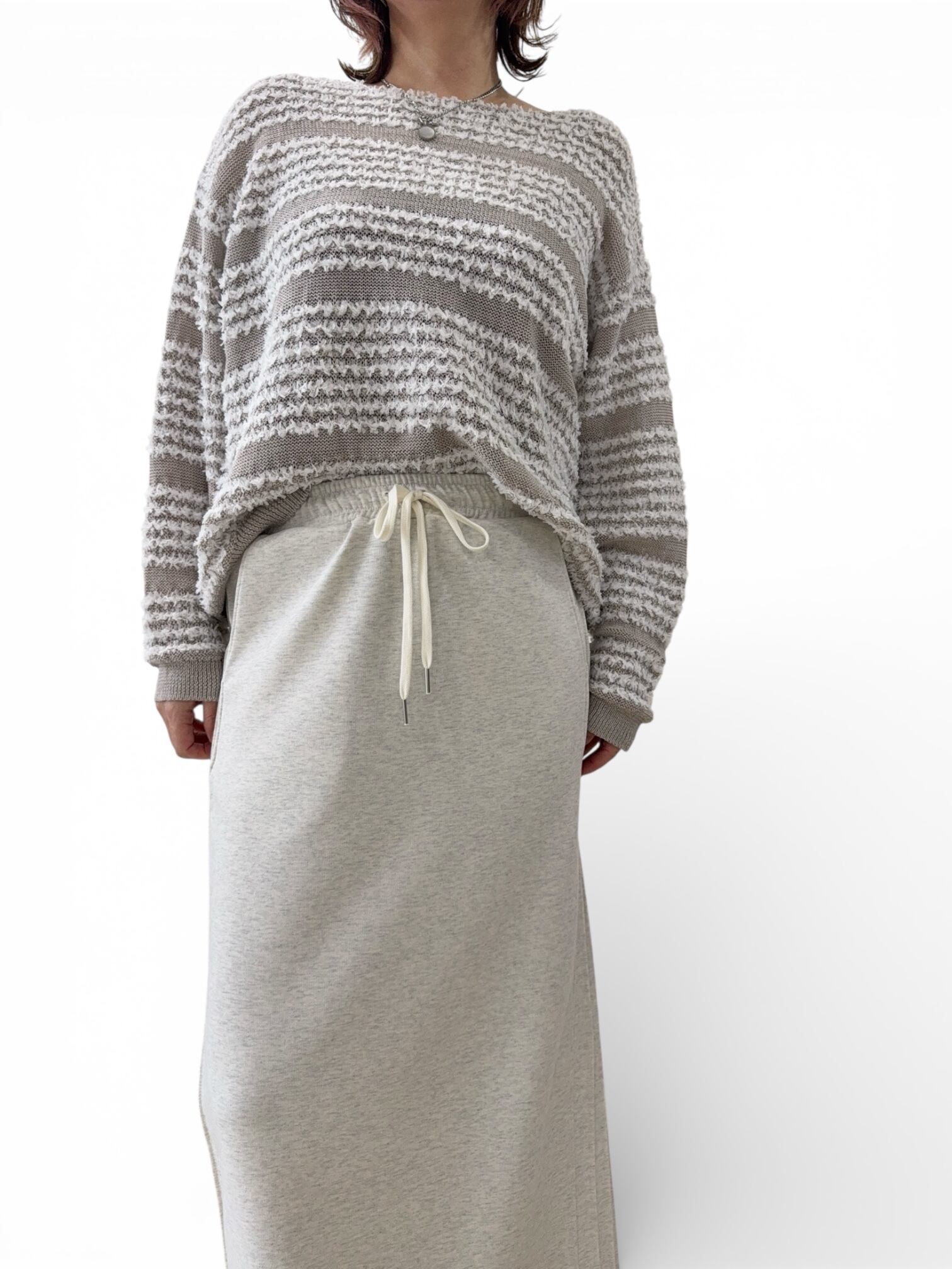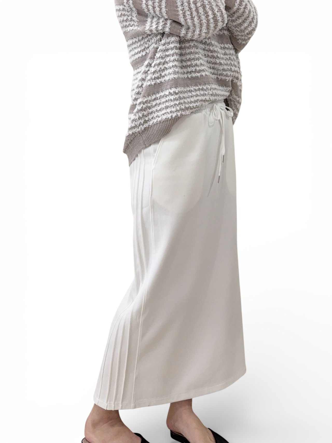 ●ダンボール素材を使用した同色サイドラインが美しいシルエットを演出するペンシルスカート✨ボディラインを拾い過ぎなく、程よい伸縮性があるため、動きやすさも兼ね備えています。シンプルながらも、サイドラインがアクセントとなり、カジュアルからキレイめまで幅広く活躍するアイテムです。どんなトップスとも相性抜群で、これ一着でスタイリングを格上げしてくれます!多用途に使えるカラー展開も魅力です。