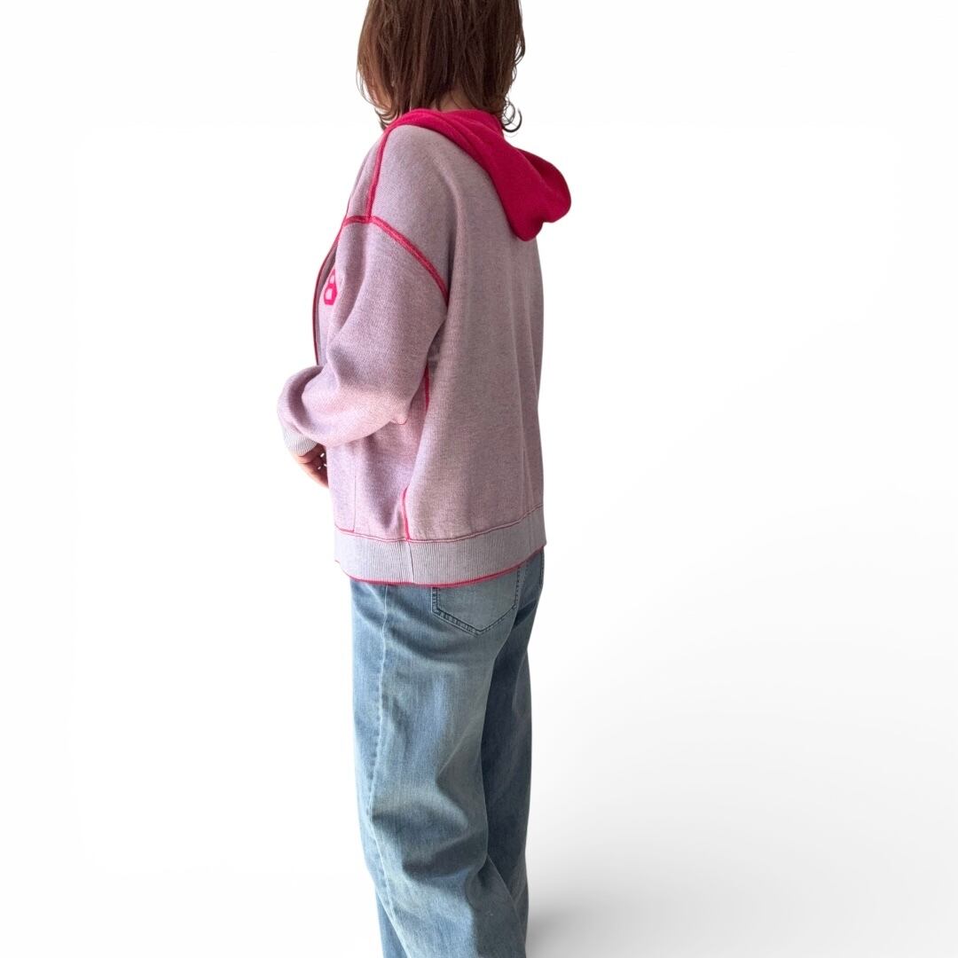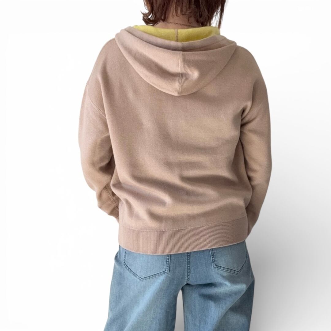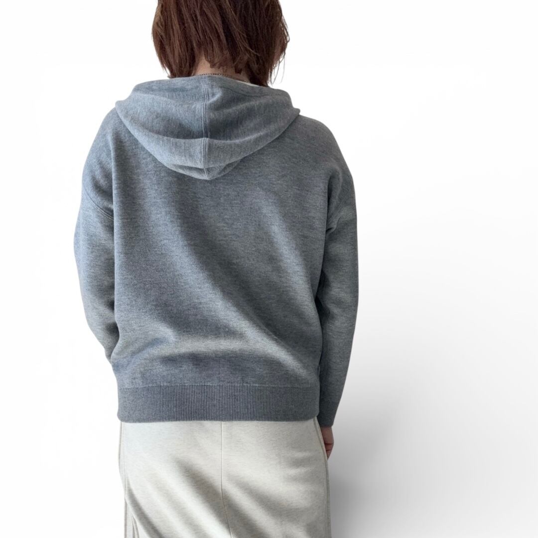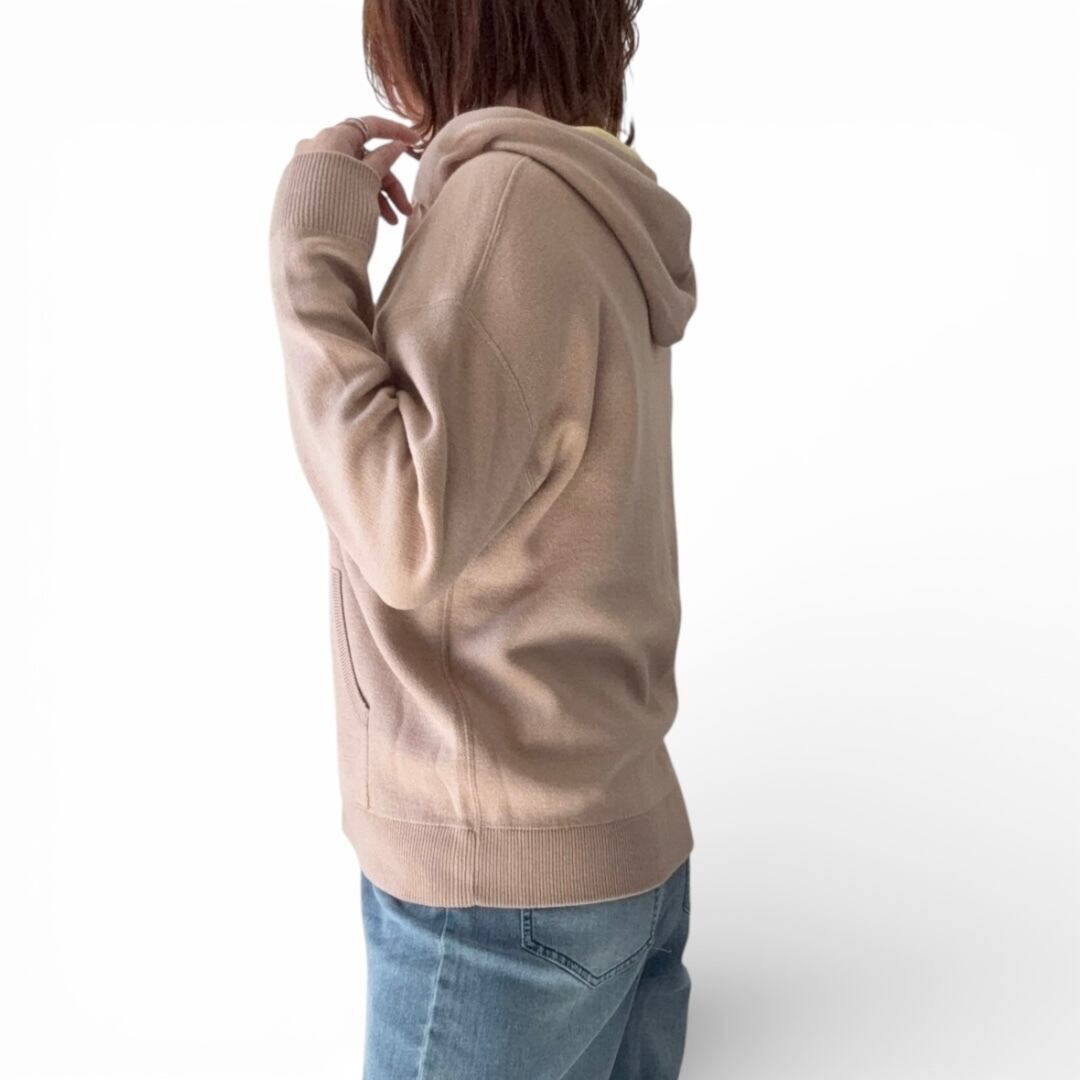 ● リバーシブルデザインのニットパーカーが登場!これ1着で異なるスタイルを楽しめるのが大きな魅力です。ふんわりとした上質なニット素材は、接結(せっけつ)ニットで2枚のニット生地をつなぎ合わせており、ふんわりと柔らかく、非常に肌触りが良いのが特徴。2枚重ねによる空気の層が保温性を生み、直接肌に触れる面がとても柔らかくなります。軽いのに保温性が高く、春先も抜群の保温性を誇りながらも軽やかな着心地を実現。フード付きでカジュアルな雰囲気を演出しつつ、シルエットはコンパクトでキレイめに。体型を気にせずリラックスして着こなせます。デニムやスカート、どんなボトムスとも相性抜群で、様々なシーンで活躍すること間違いなしです!