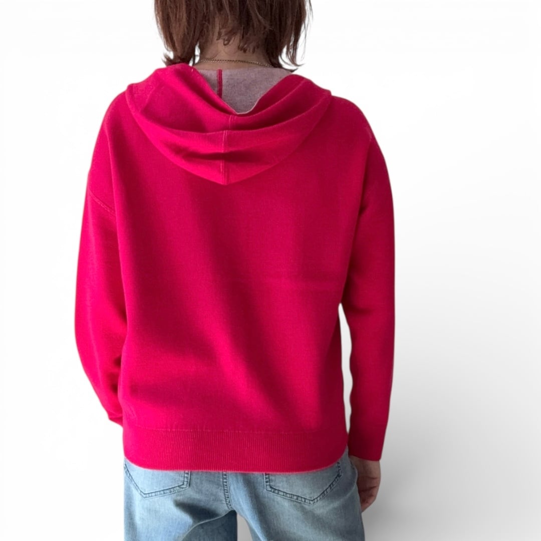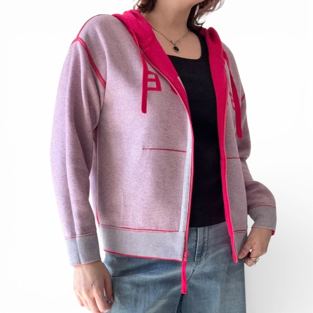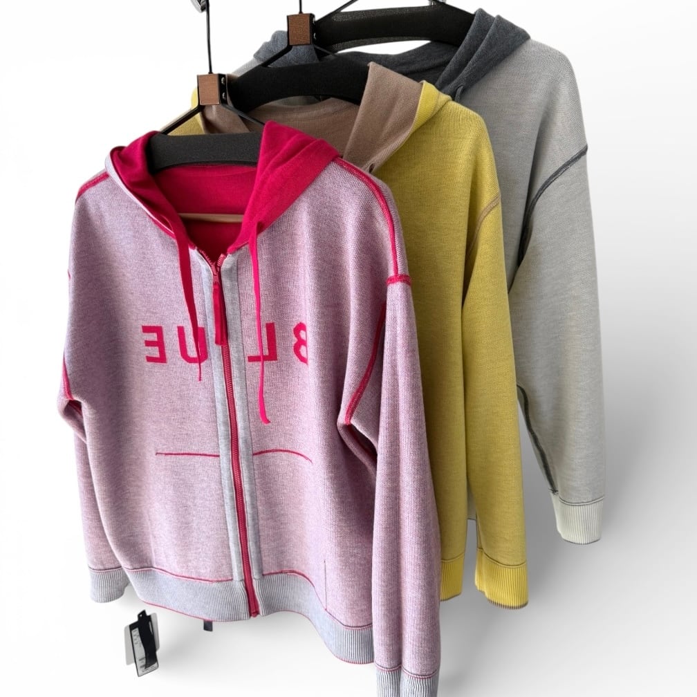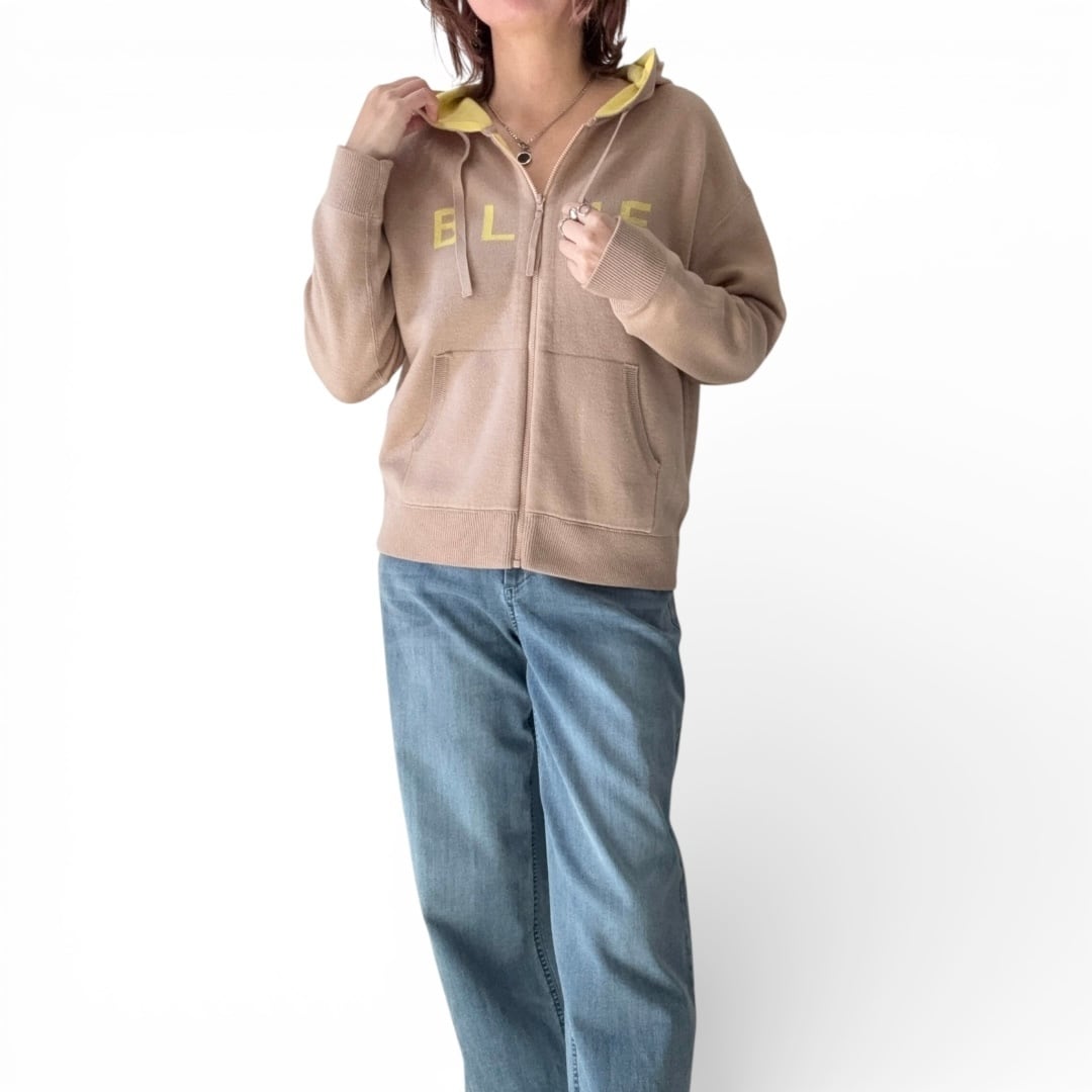 ● リバーシブルデザインのニットパーカーが登場!これ1着で異なるスタイルを楽しめるのが大きな魅力です。ふんわりとした上質なニット素材は、接結(せっけつ)ニットで2枚のニット生地をつなぎ合わせており、ふんわりと柔らかく、非常に肌触りが良いのが特徴。2枚重ねによる空気の層が保温性を生み、直接肌に触れる面がとても柔らかくなります。軽いのに保温性が高く、春先も抜群の保温性を誇りながらも軽やかな着心地を実現。フード付きでカジュアルな雰囲気を演出しつつ、シルエットはコンパクトでキレイめに。体型を気にせずリラックスして着こなせます。デニムやスカート、どんなボトムスとも相性抜群で、様々なシーンで活躍すること間違いなしです!