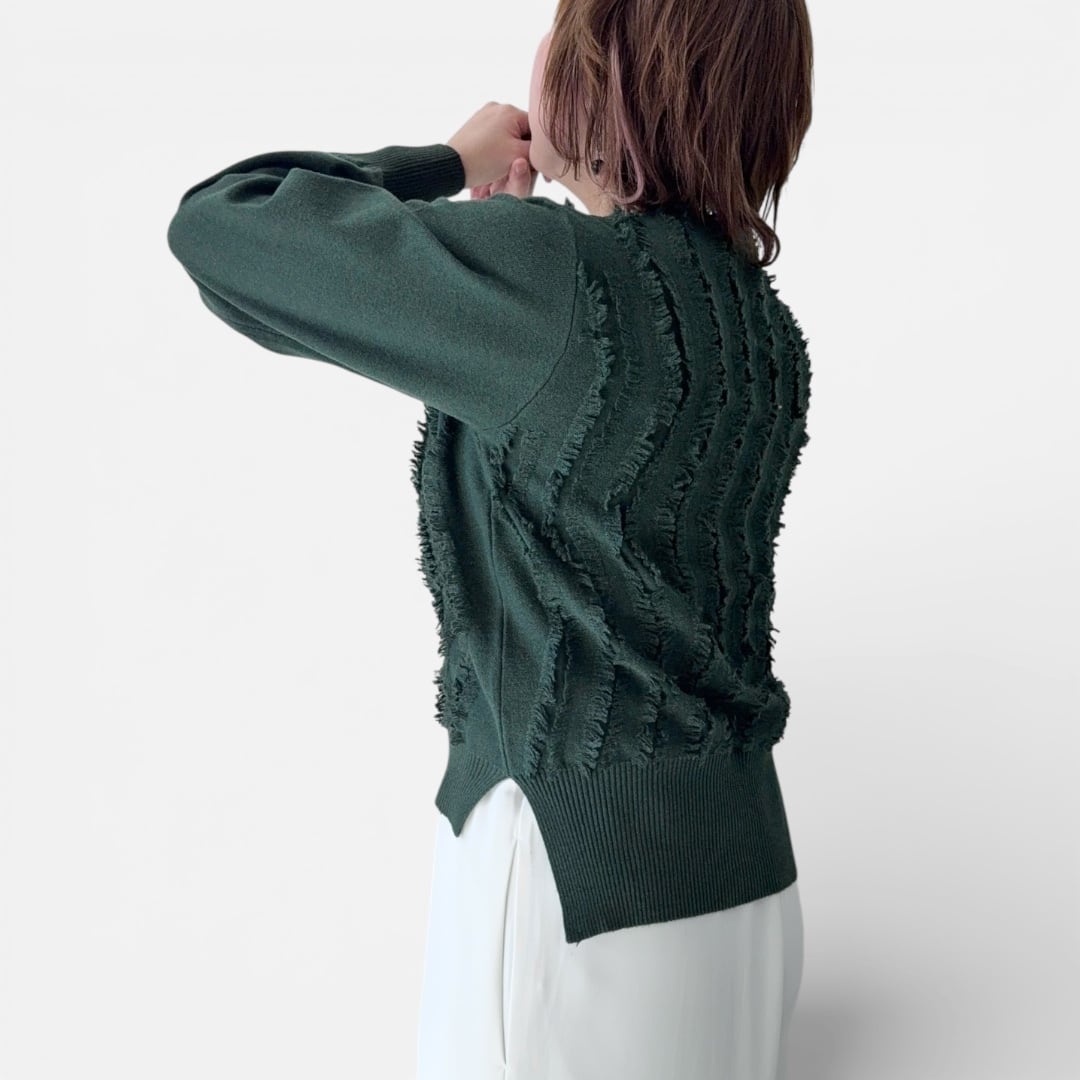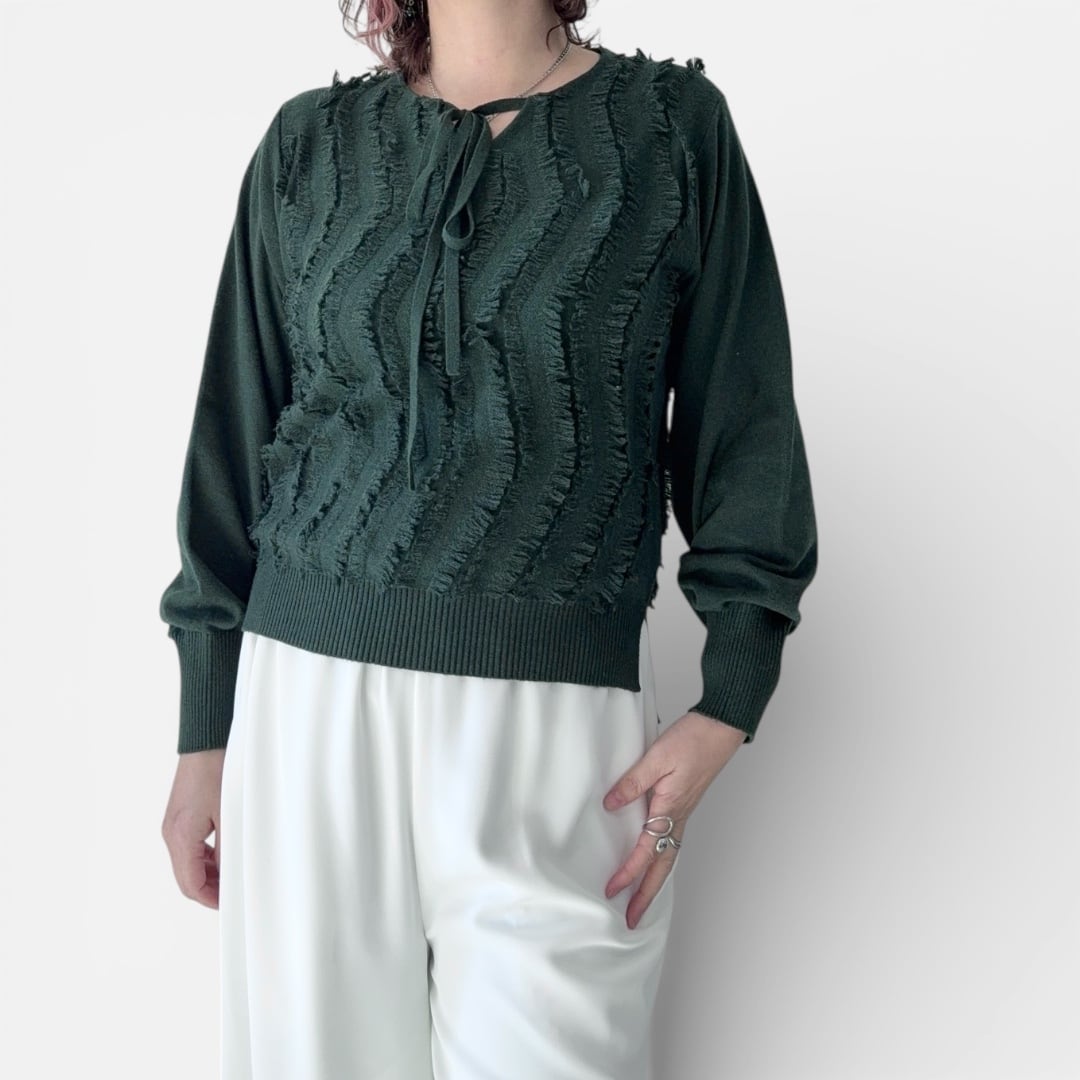 前リボンフリンジニット