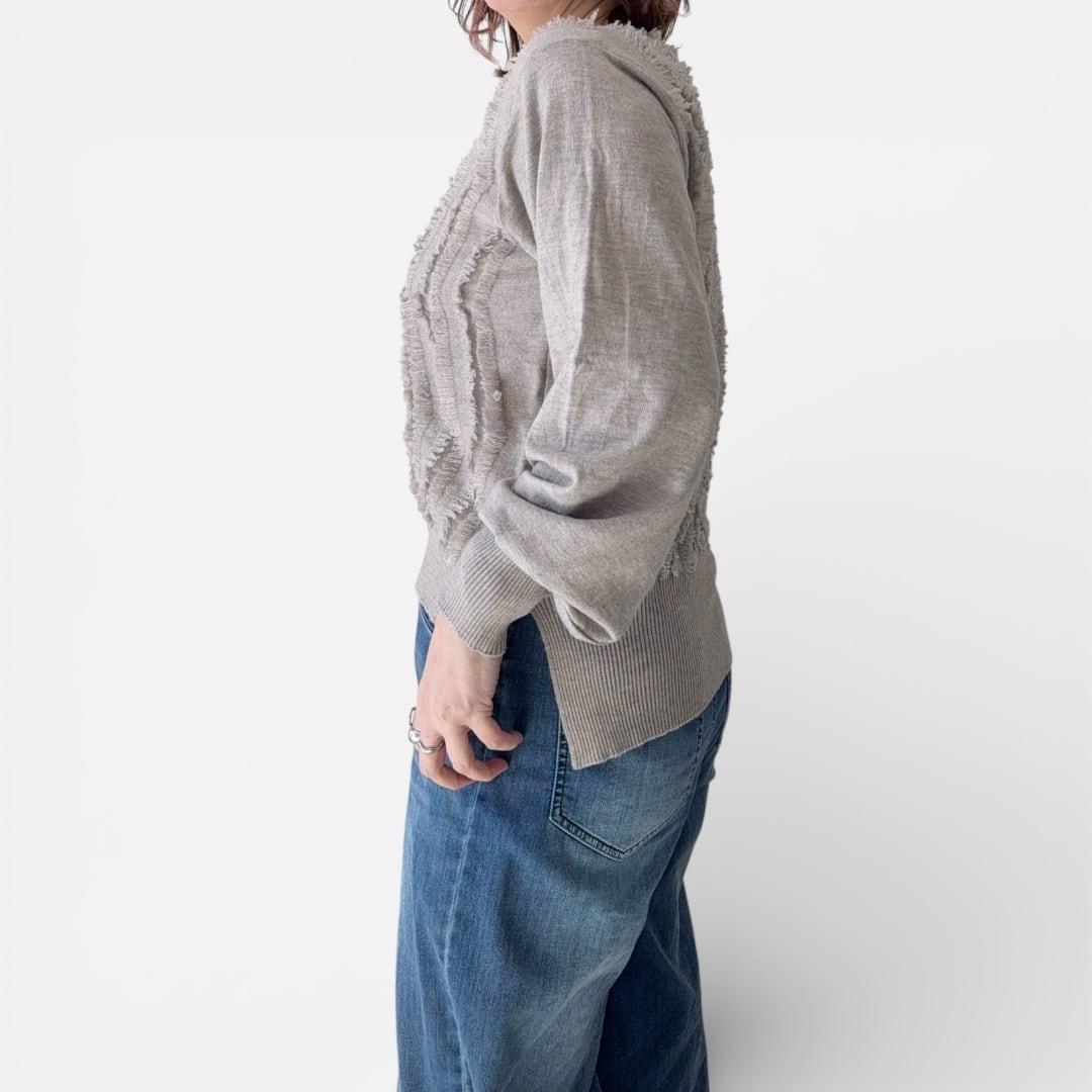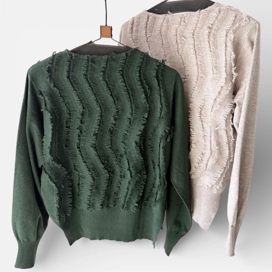 ● 前リボンフリンジニットが登場!どんなコーディネートにも合わせやすいシンプルなデザインですが、前リボンとフリンジがアクセントになり、一気におしゃれ感をアップさせます。とても柔らかなニット素材で、心地よい肌触りが魅力的。フリンジの動きが軽やかさを演出し、春先の装いにぴったりです。リボンはお好みの位置で結ぶことができ、カジュアルにもフォーマルにも応じたスタイルが楽しめます。様々なボトムスやアウターとも相性抜群で、特にデニムやスカートに合わせることで、季節感満載のコーディネートが完成します!