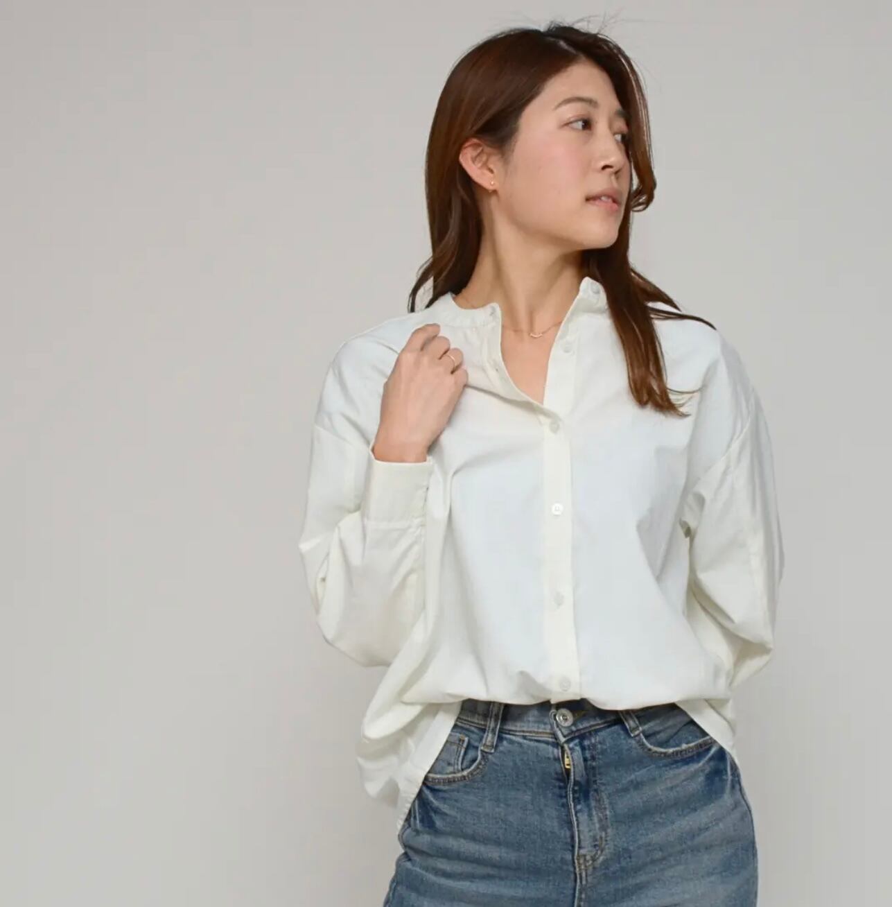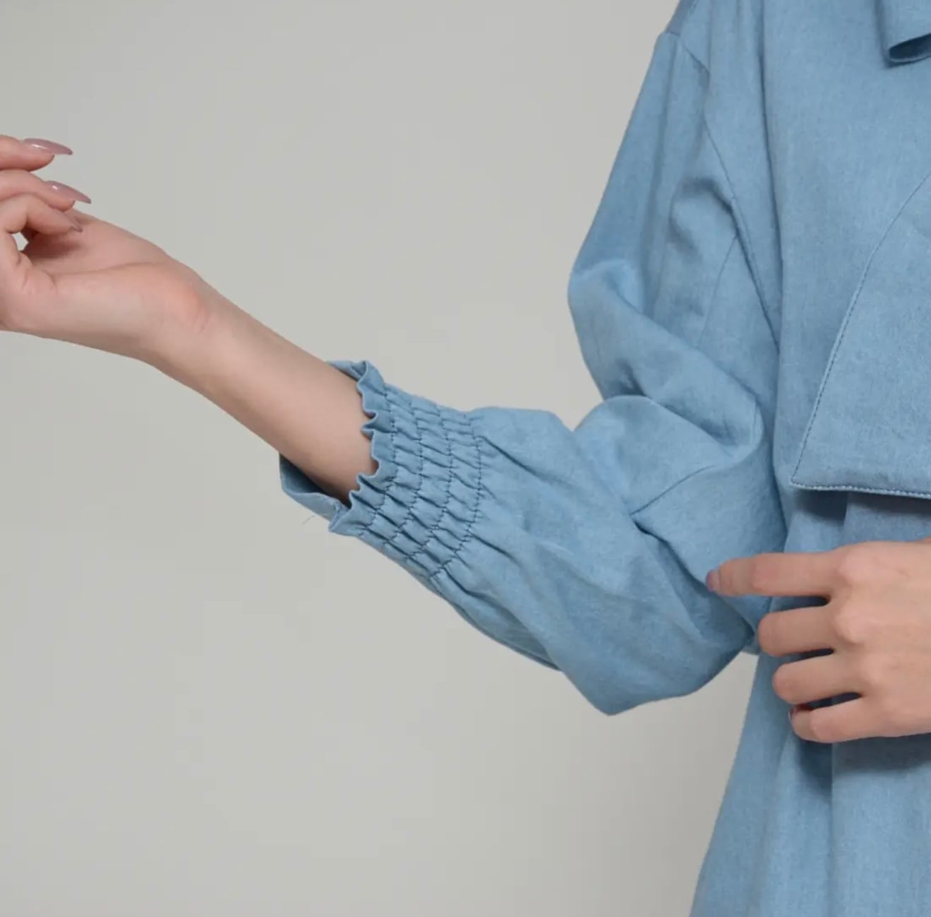 全く異なる表情を楽しめる。素材には、軽やかで清涼感のあるダンガリーデニムを採用。袖口にはシャーリングギャザーを施し、ブラウジング(袖の上げ下げ)が容易な機能性をプラス。ボリューム感のある袖シルエットをキープしやすく、手元にニュアンスを加えやすい設計。