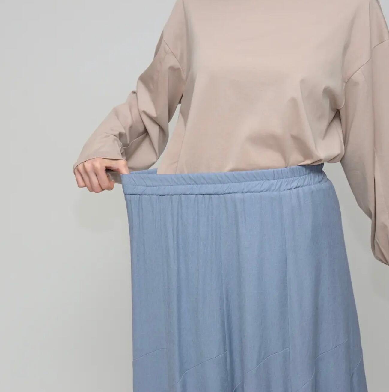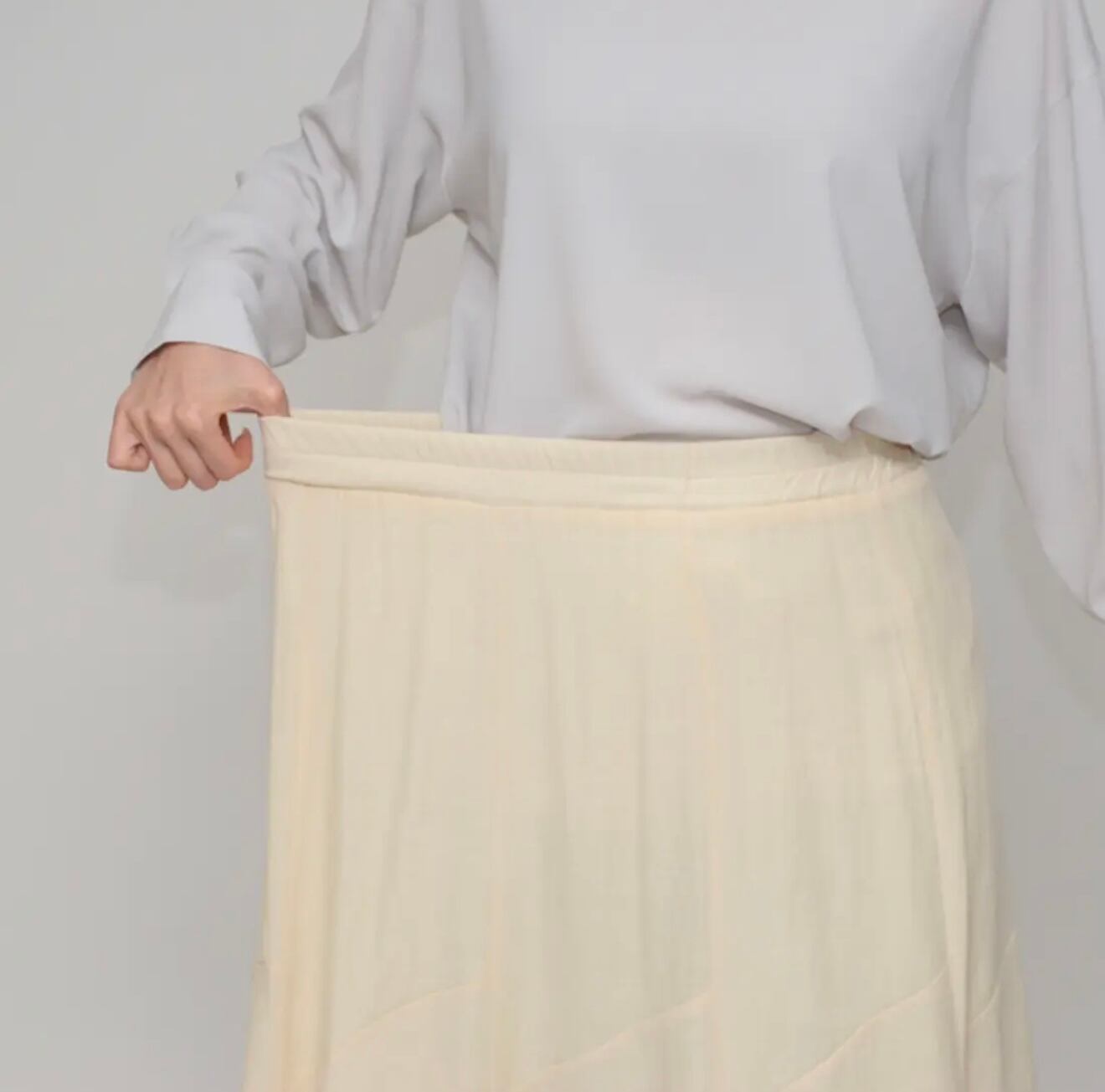ウエストは総ゴム仕様で、上品見えしながらも驚くほど楽で軽やかです。