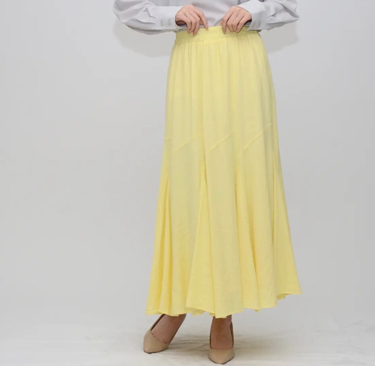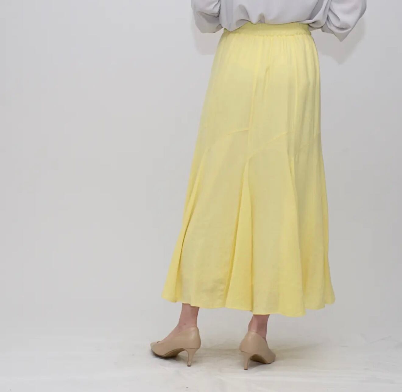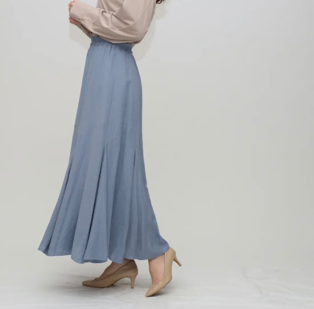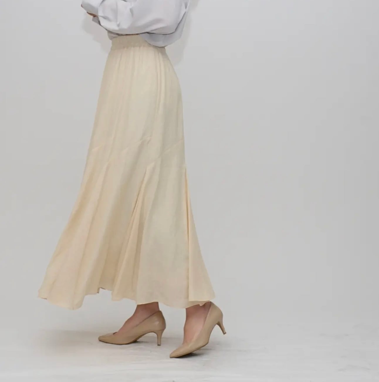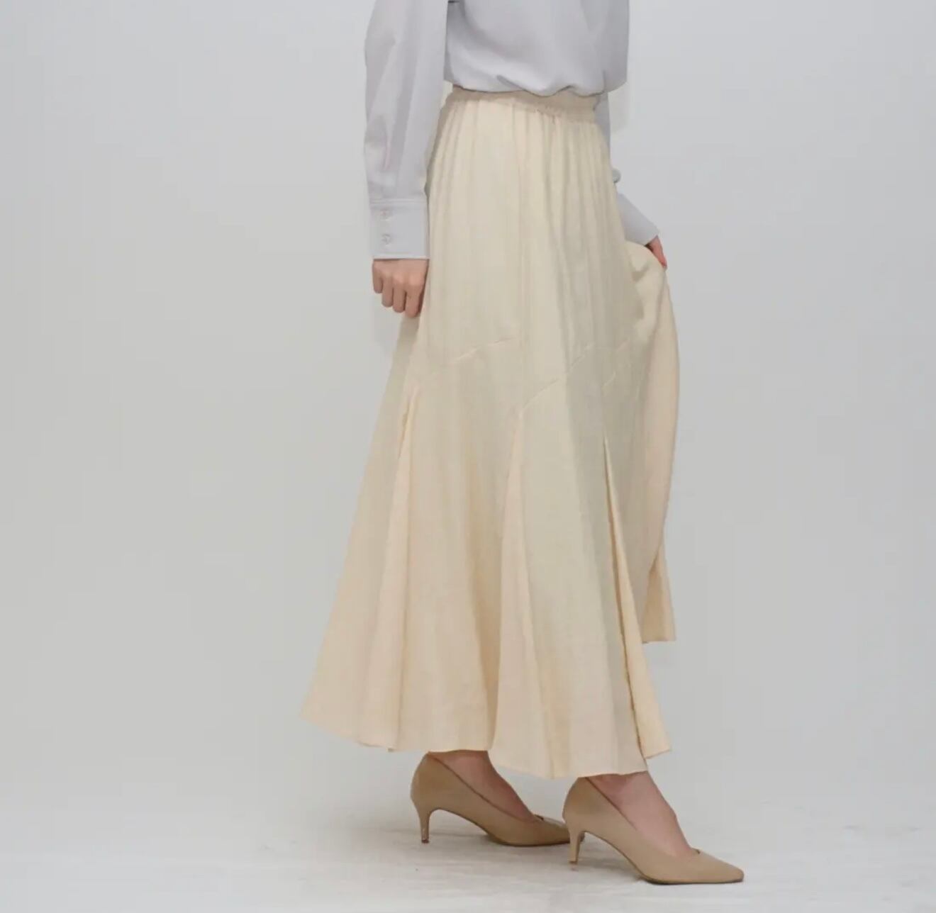 スタイルアップの決定版リネンライク・イレギュラー切替えフレアスカート