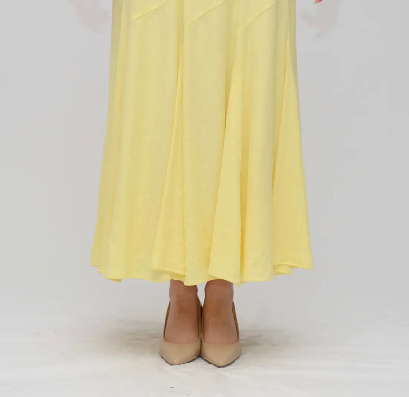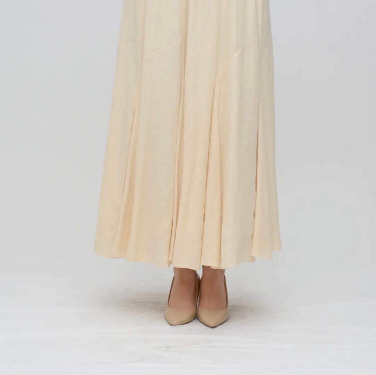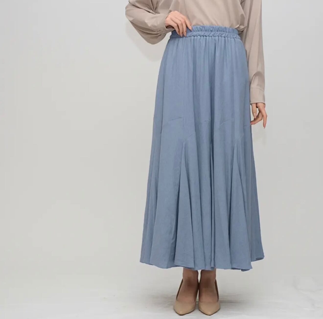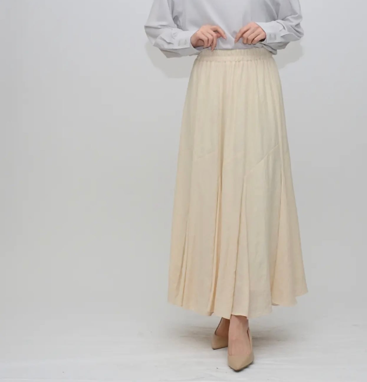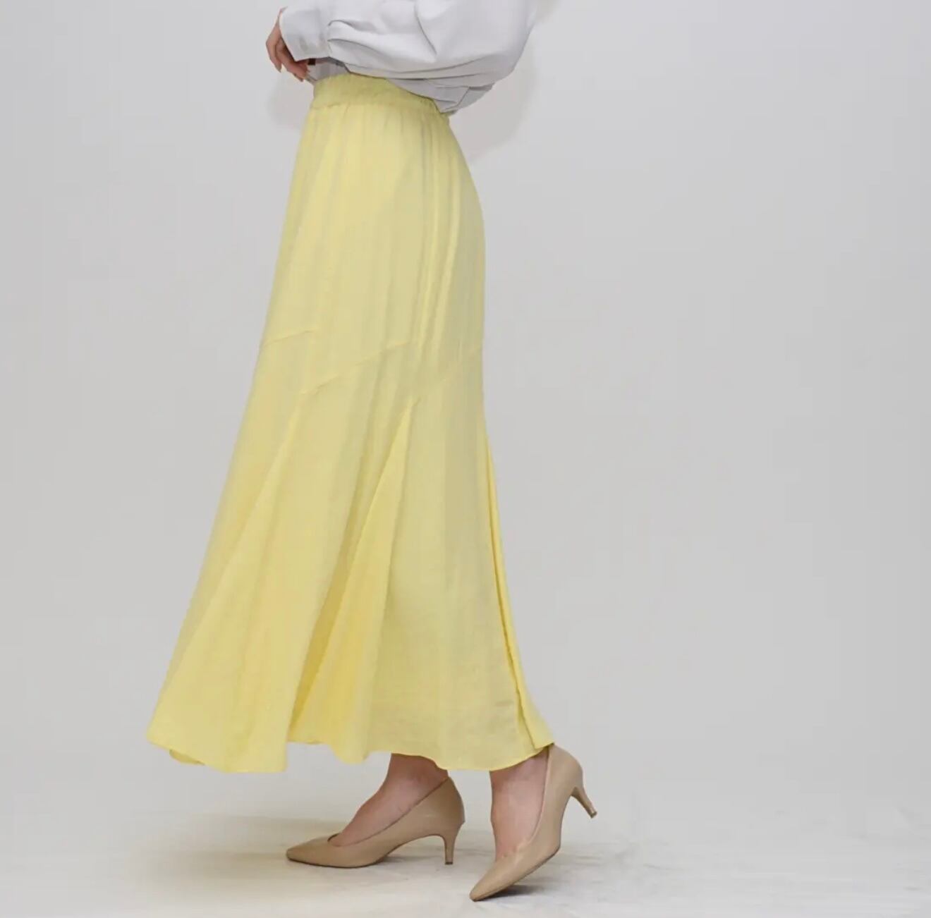 スタイルアップの決定版リネンライク・イレギュラー切替えフレアスカート