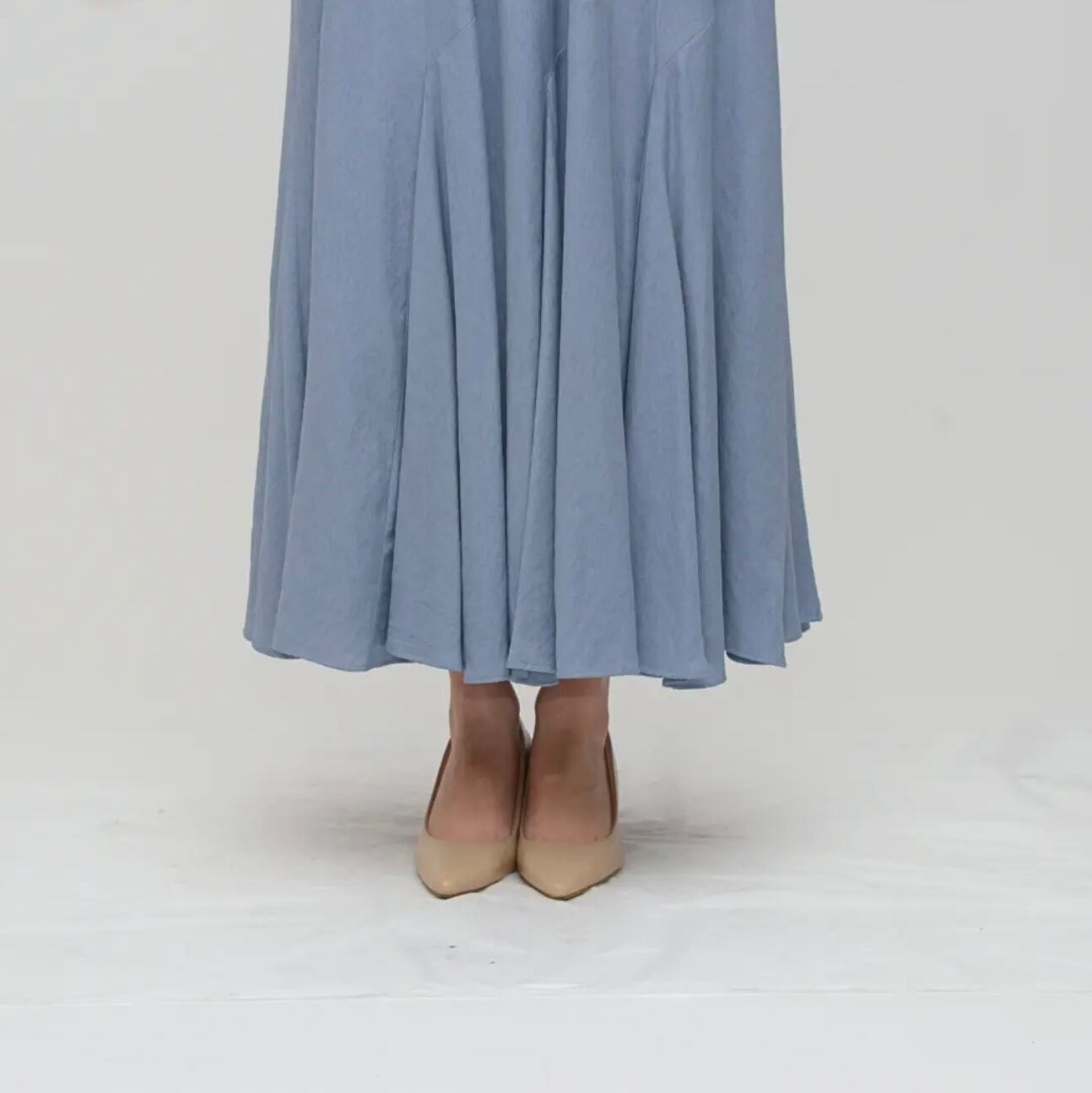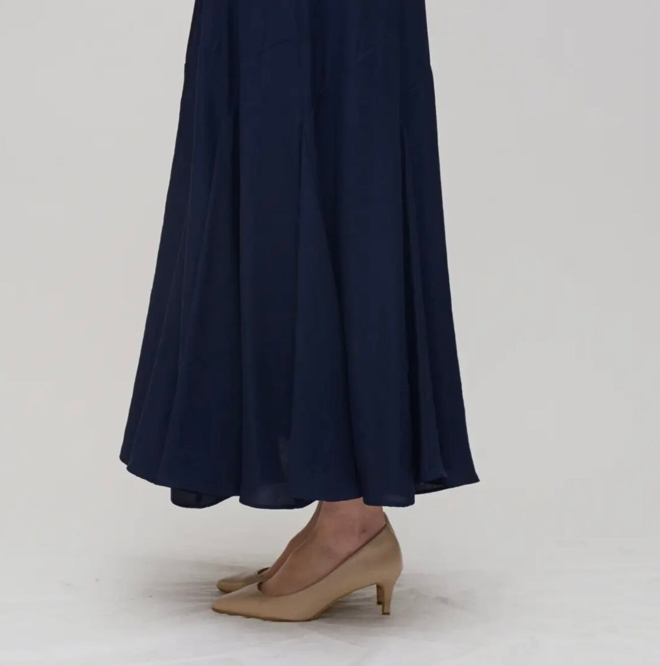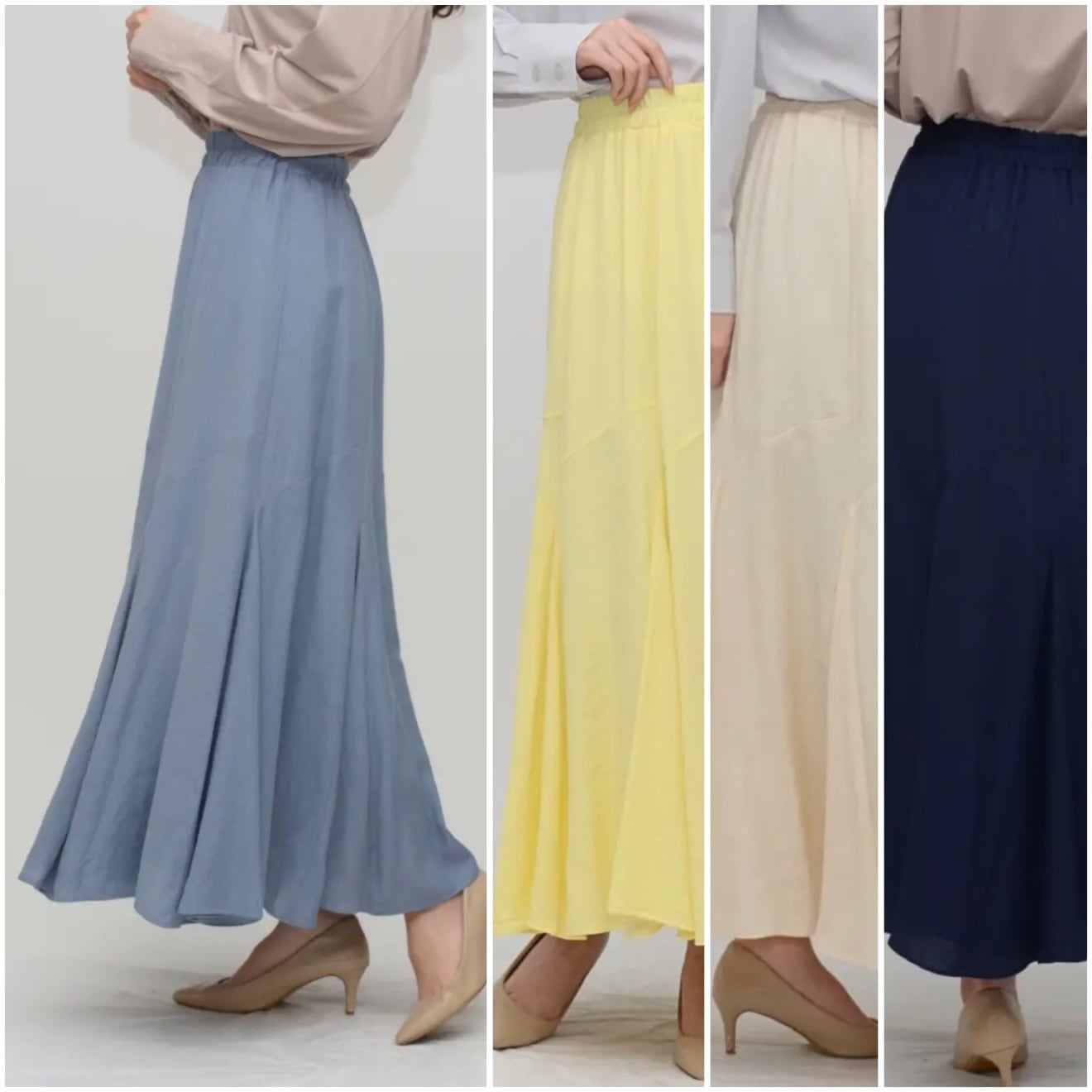 ● 着るだけで誰もが美しくなれると支持された毎年定番の売れ筋シルエット✨これからの季節にふさわしい「NEWカラー&新素材」が登場。素材には、清涼感あふれる「リネンライク」な質感をセレクト。ポリエステルと綿をブレンドすることで、天然素材のような軽やかさを持ちながら、シワになりにくく扱いやすい機能性を実現しました。最大のこだわりは、緻密に計算された「イレギュラー切替え」デザイン。腰からヒップ周りはスッキリとタイトに抑え、切替え部分から裾に向かってボリュームが生まれる設計に。歩くたびにイレギュラーなカッティングが複雑な表情を作り出し、360度どこから見てもドラマティックなフレアラインを叶えました。