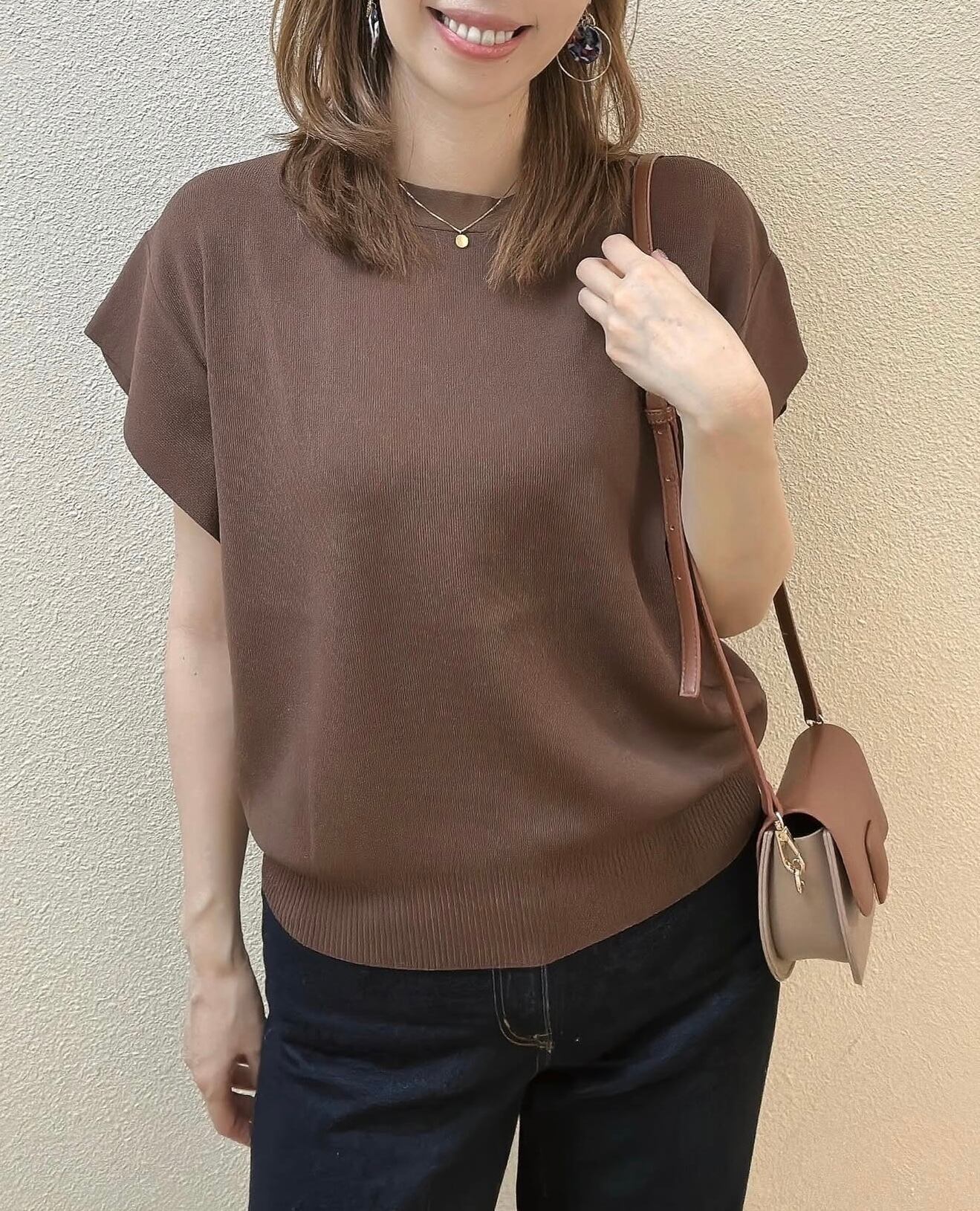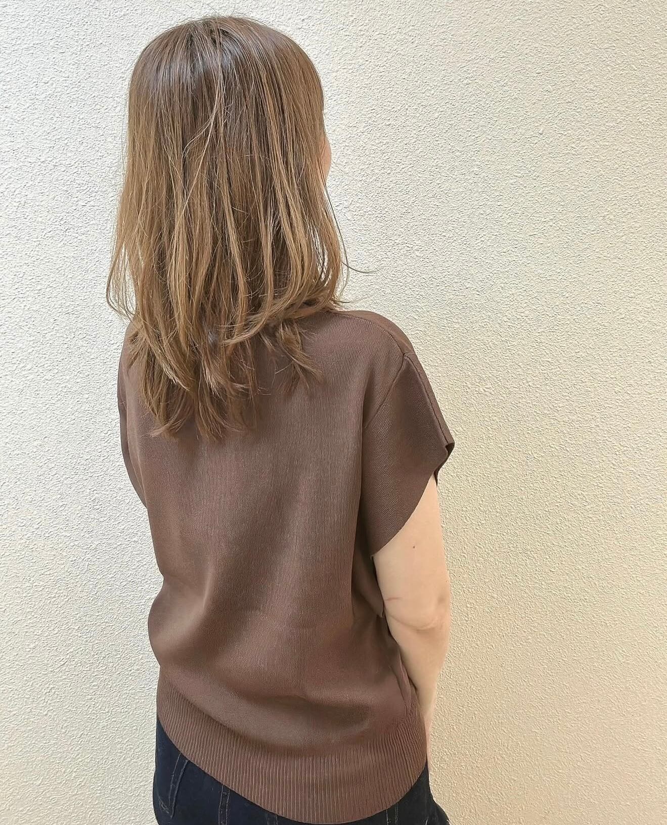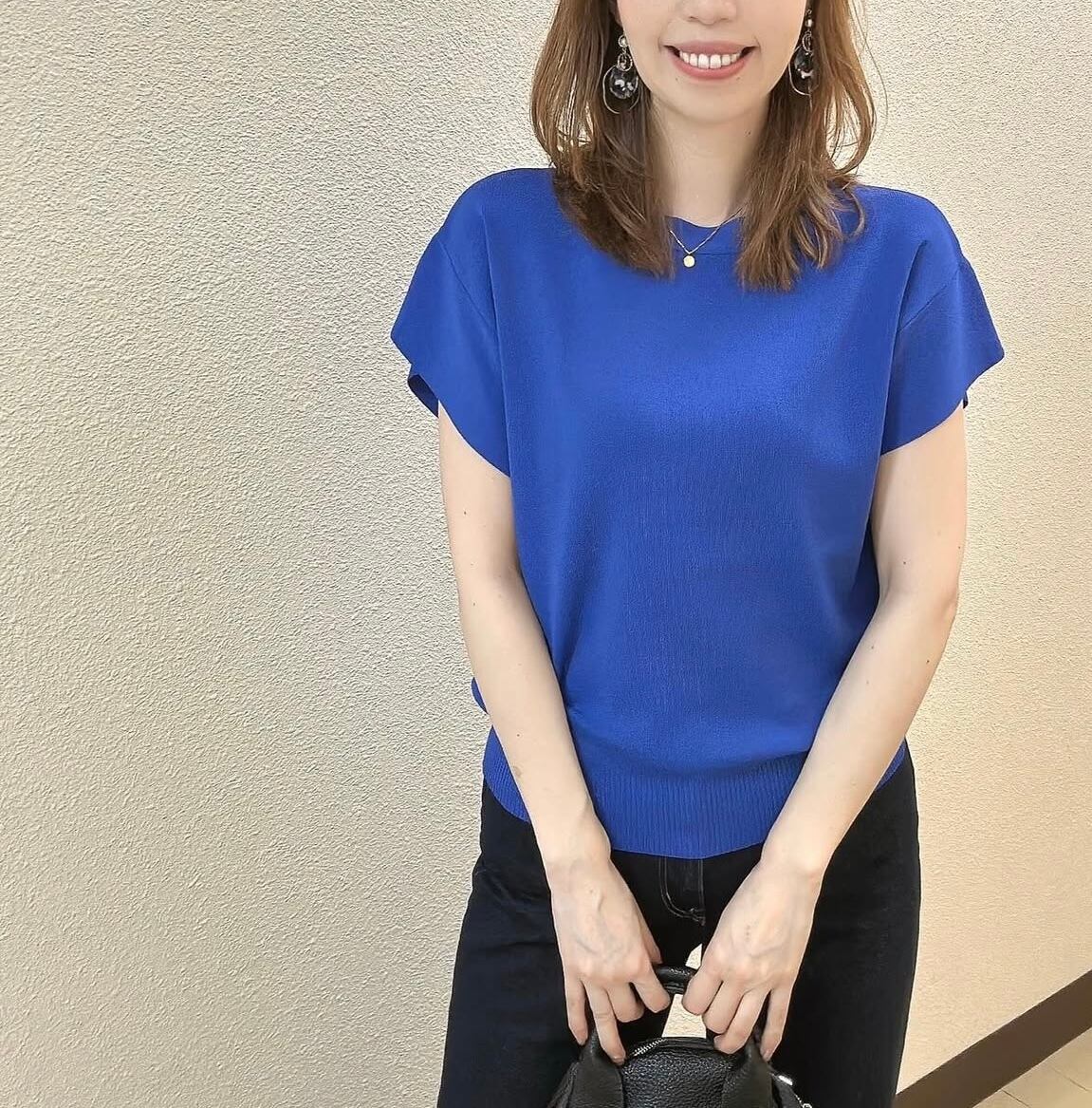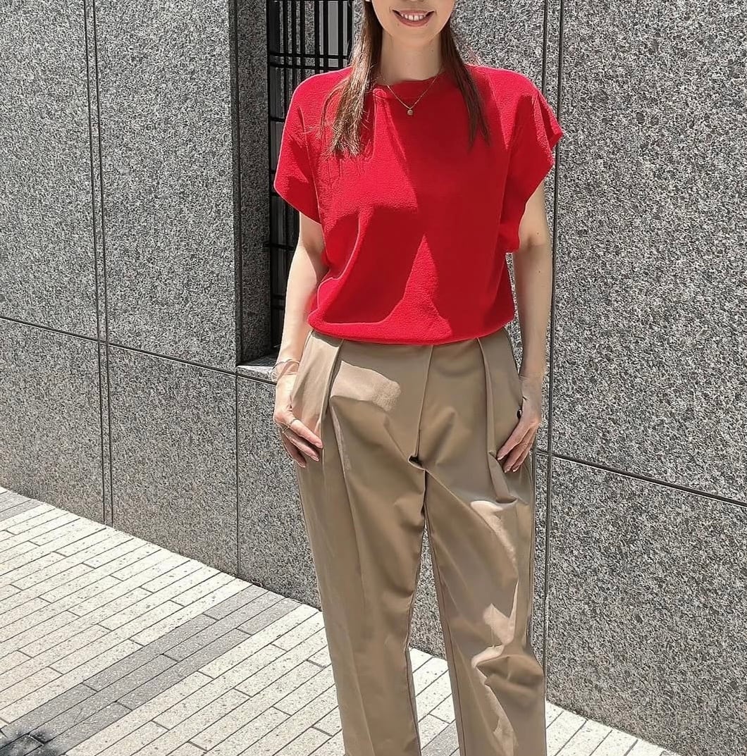 薄手なのにしっかりした生地感、接触冷感のような着るだけで涼しい生地、適度な身幅があって肉感を拾わずスタイルアップ、おしゃれさも快適さも持ち合わせたニットでリピート率の高いニットです✨