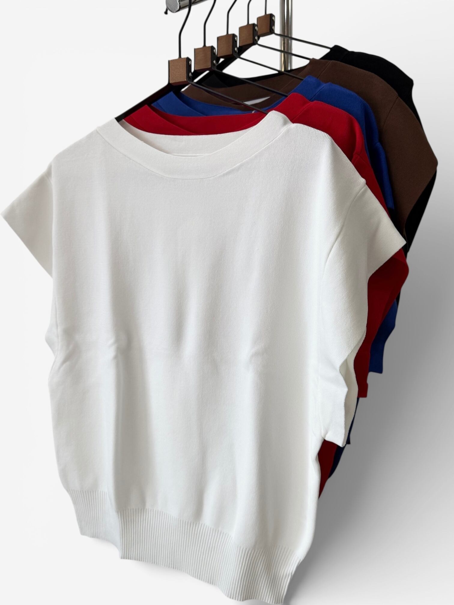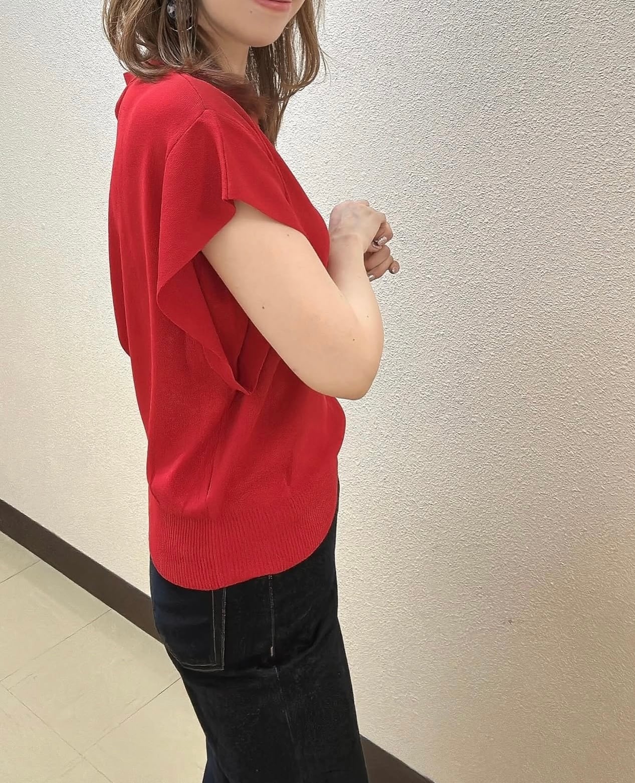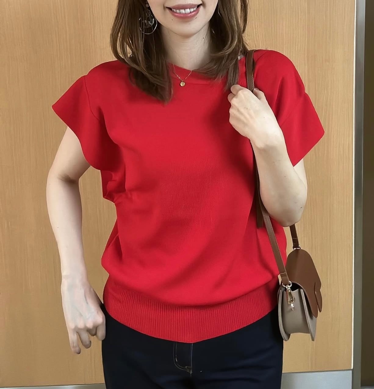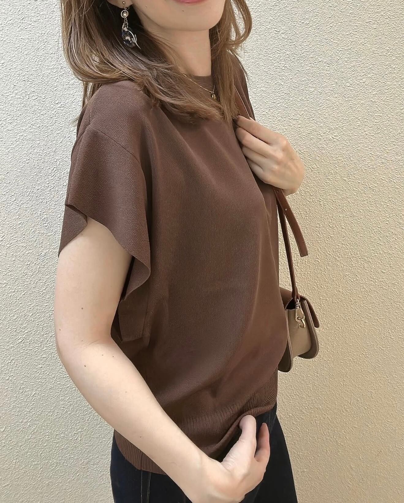 薄手なのにしっかりした生地感、接触冷感のような着るだけで涼しい生地、適度な身幅があって肉感を拾わずスタイルアップ、おしゃれさも快適さも持ち合わせたニットでリピート率の高いニットです✨