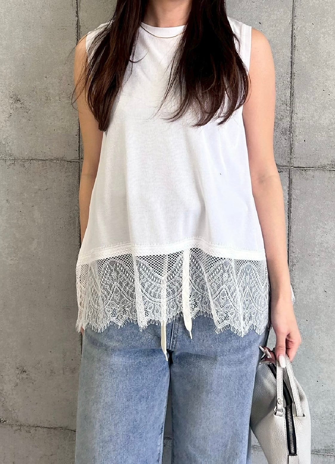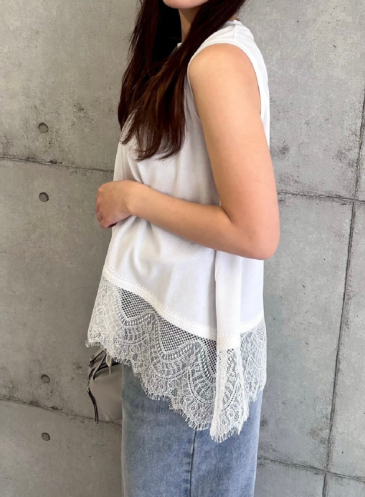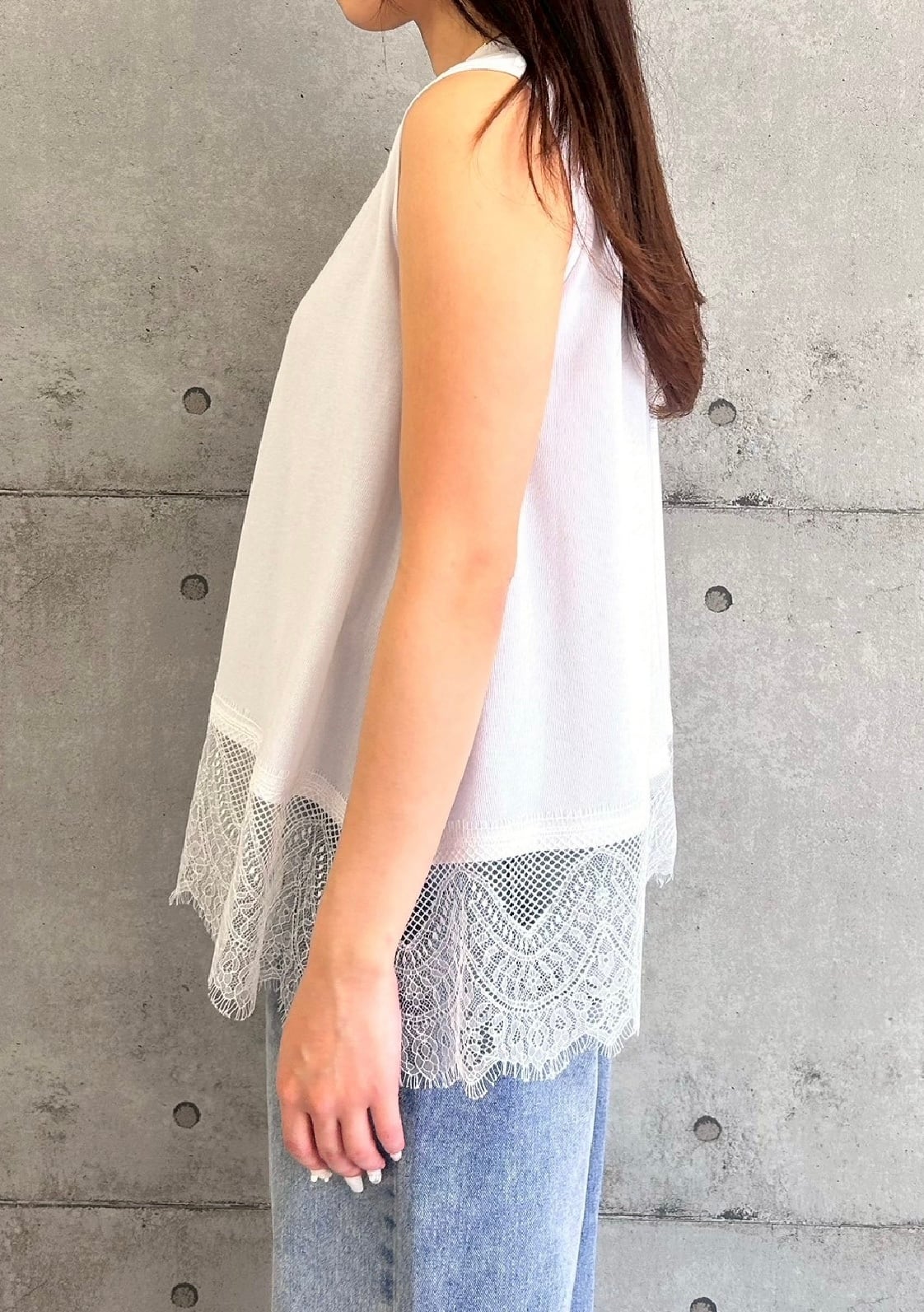 ● 今年トレンドのレーストップス。春夏のスタイリングに取り入れるだけで、華やかさとエレガンスを演出してくれる裾レーストップス。素肌に触れても心地よい柔らかなカットソー素材を使用し、動きやすくストレッチ性も抜群で快適な着心地に仕上げました。裾にあしらった繊細なレースが、シンプルなデザインの中に上品なアクセントをプラスします。一枚でさらっと着るだけでも様になるのはもちろん、ニットやTシャツやブラウスのインナーとして重ね着すれば、裾から覗くレースがコーディネートを上げ。デイリーからきれいめスタイルまで幅広く活躍する、着回し力抜群のおすすめアイテムです。