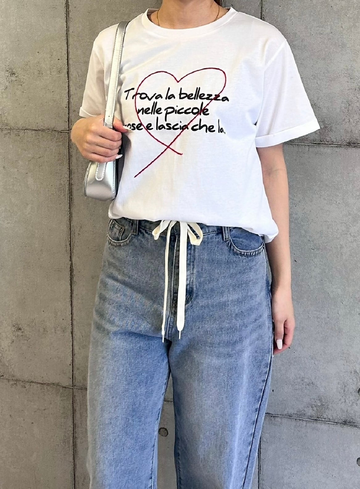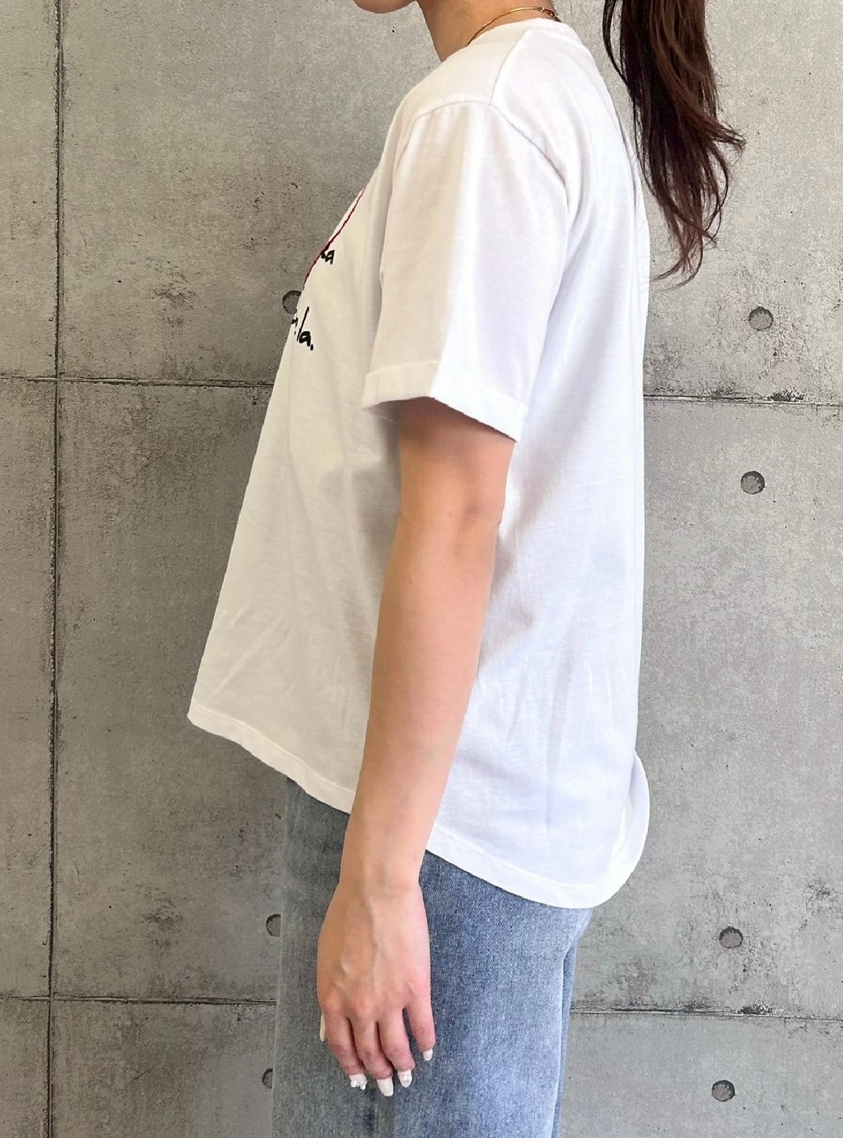 ハート刺繍×手書き風ロゴプリントTシャツ