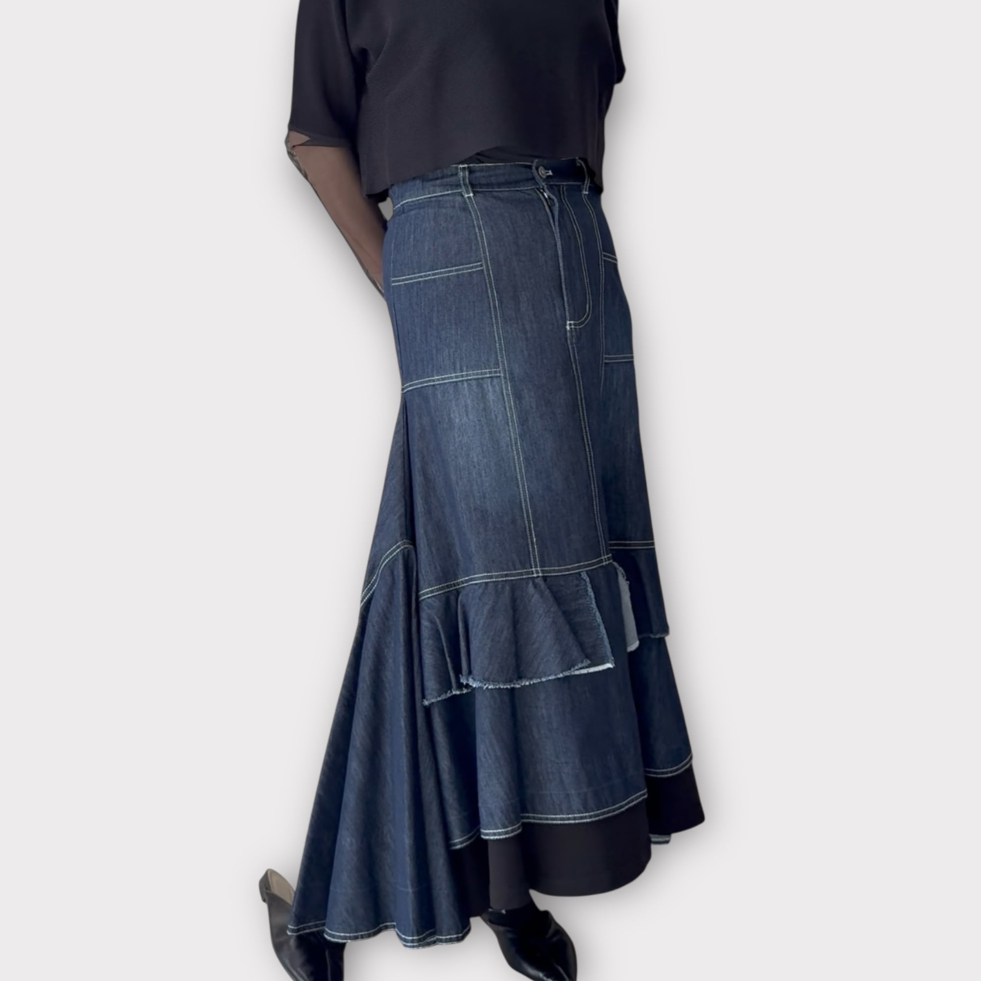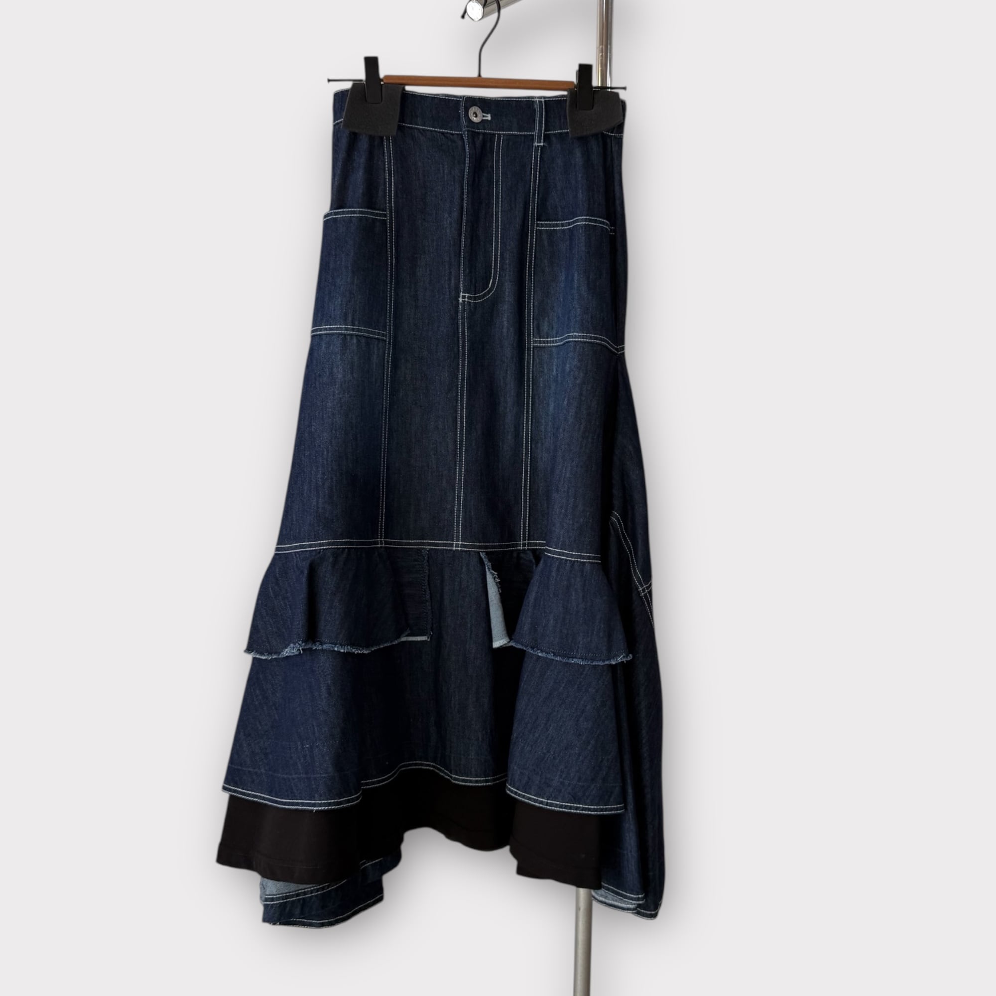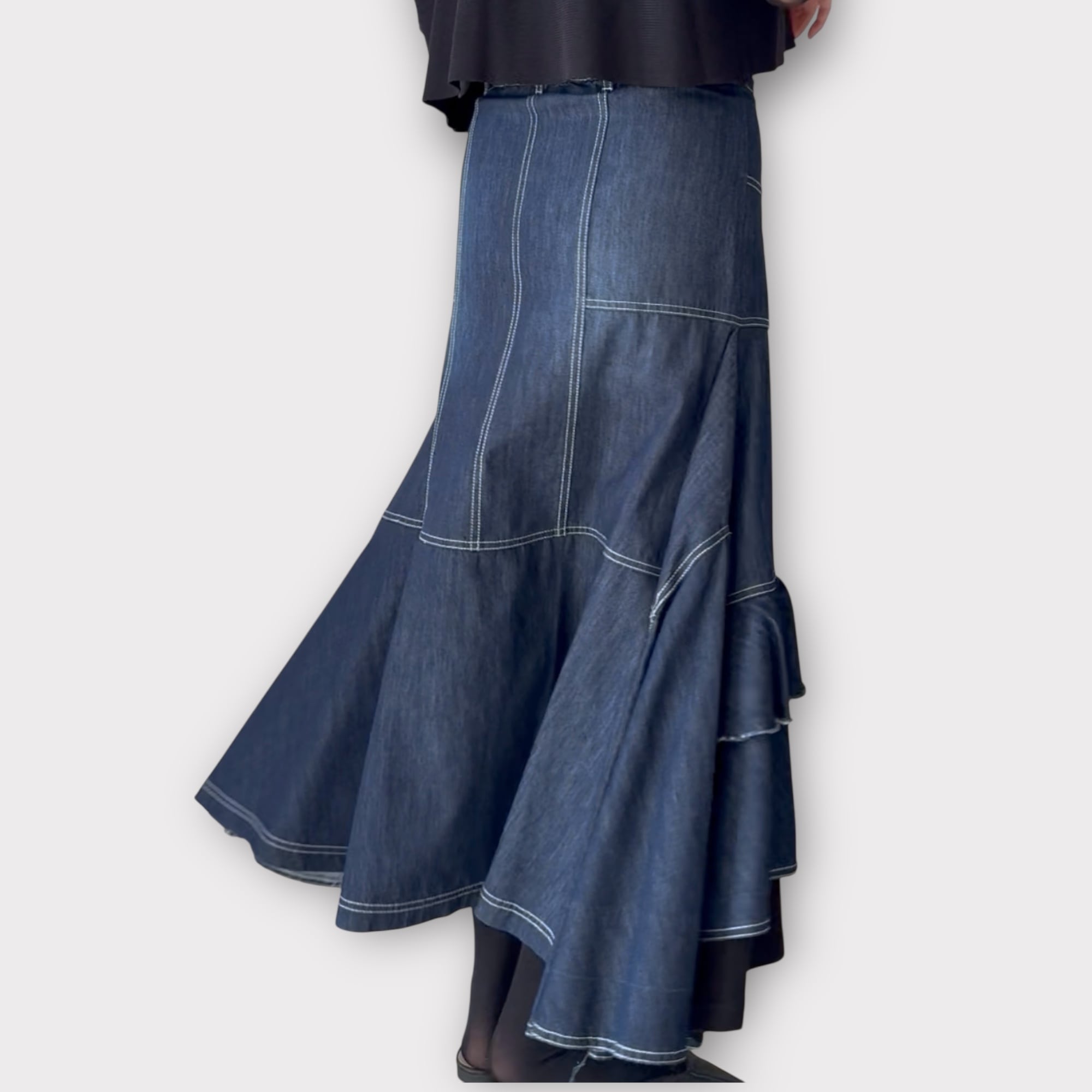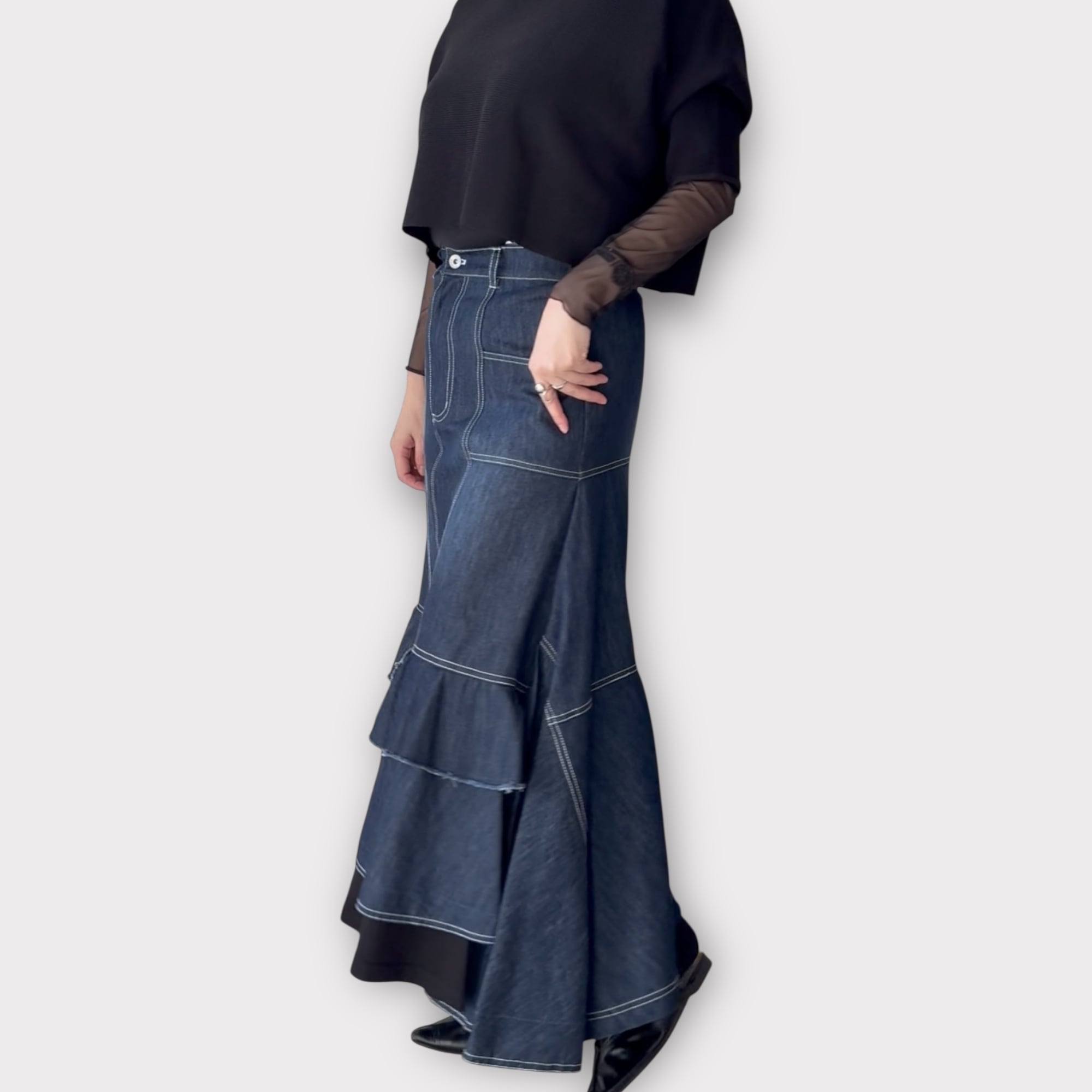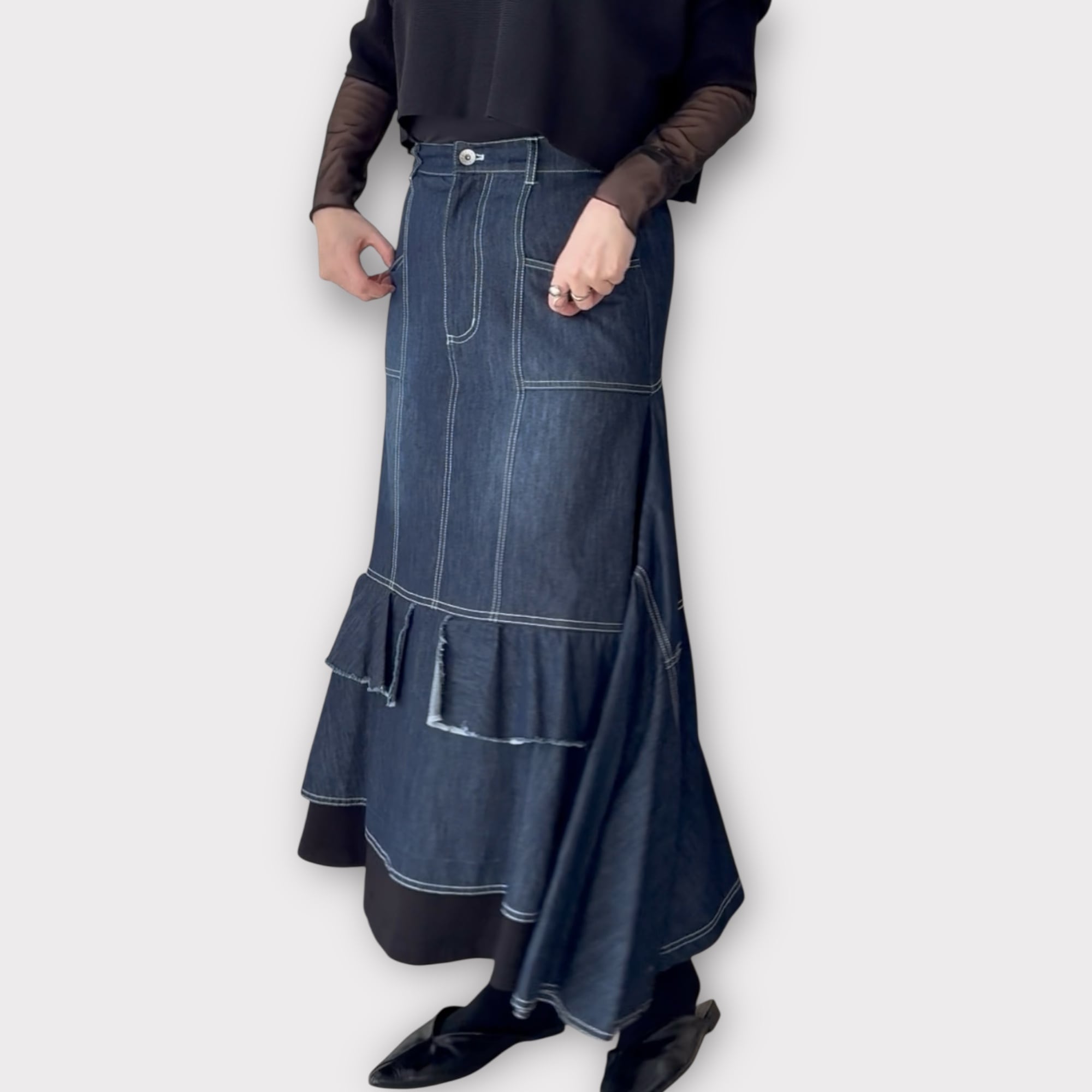 ステッチ切り替えデザインデニムスカート